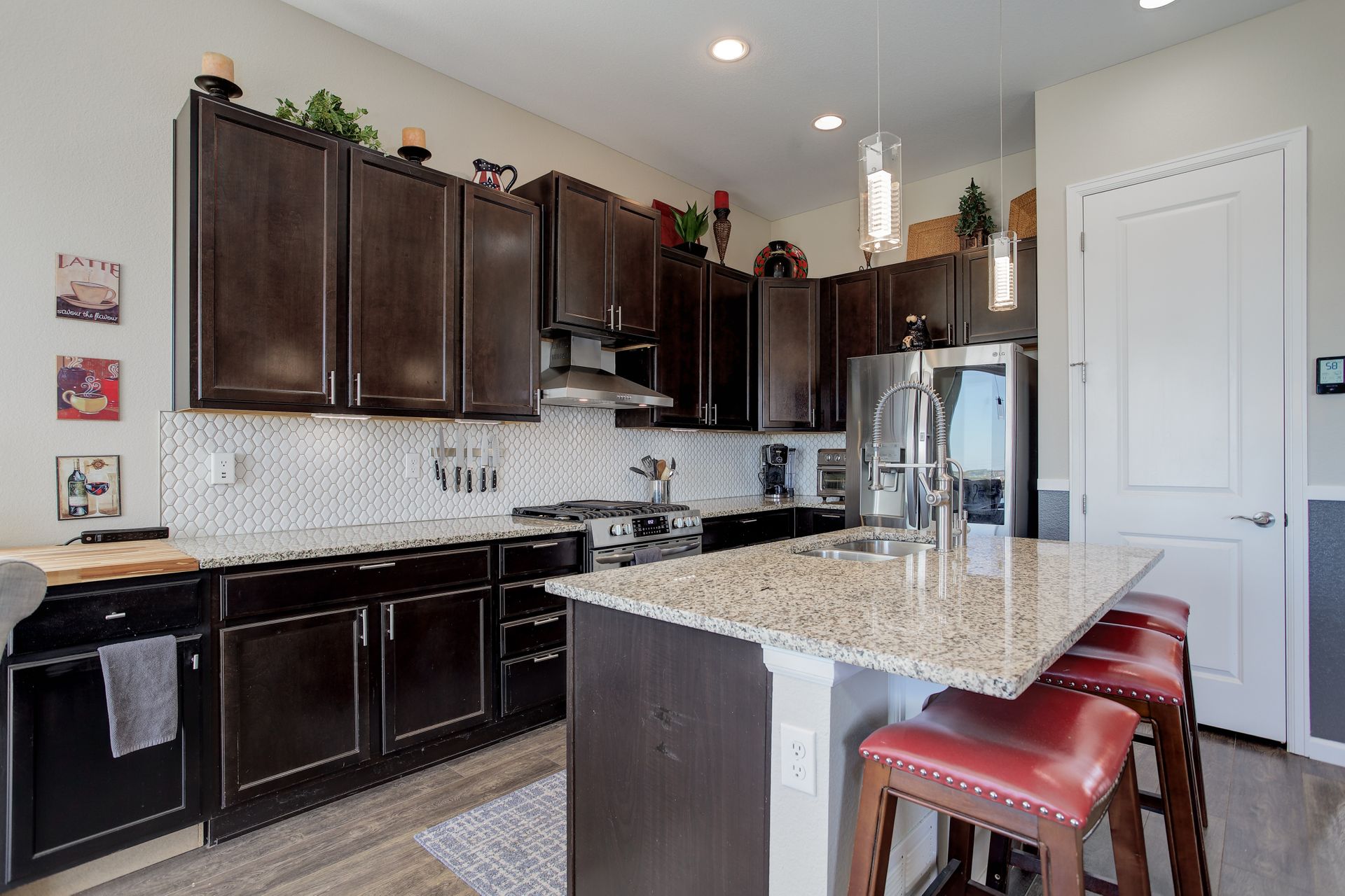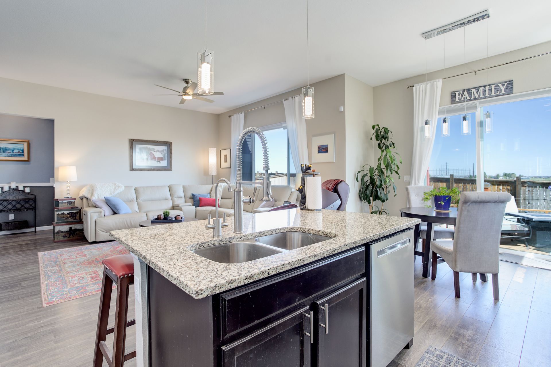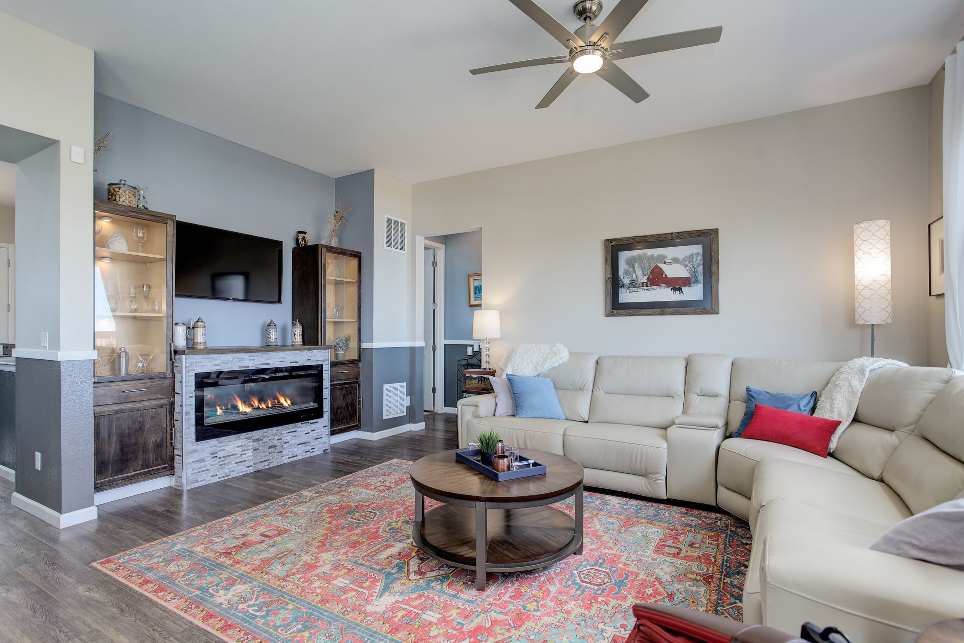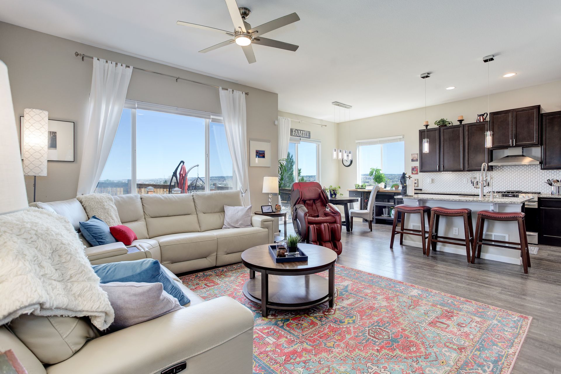 Exit outside to a private backyard sanctuary, featuring a deck and patio space ideal for grilling, relaxing, or hosting under Colorado’s big blue skies.