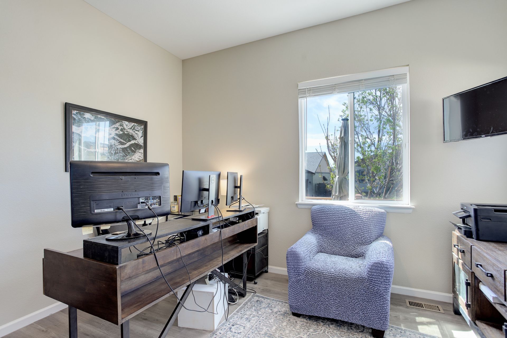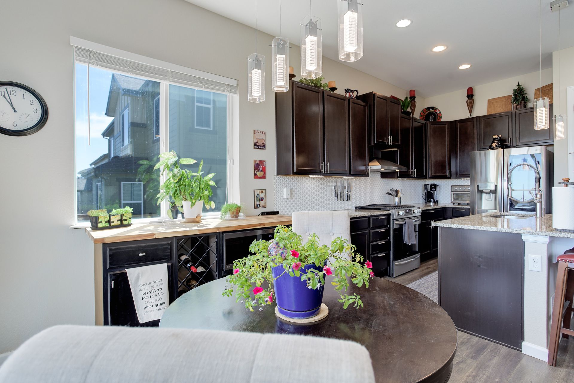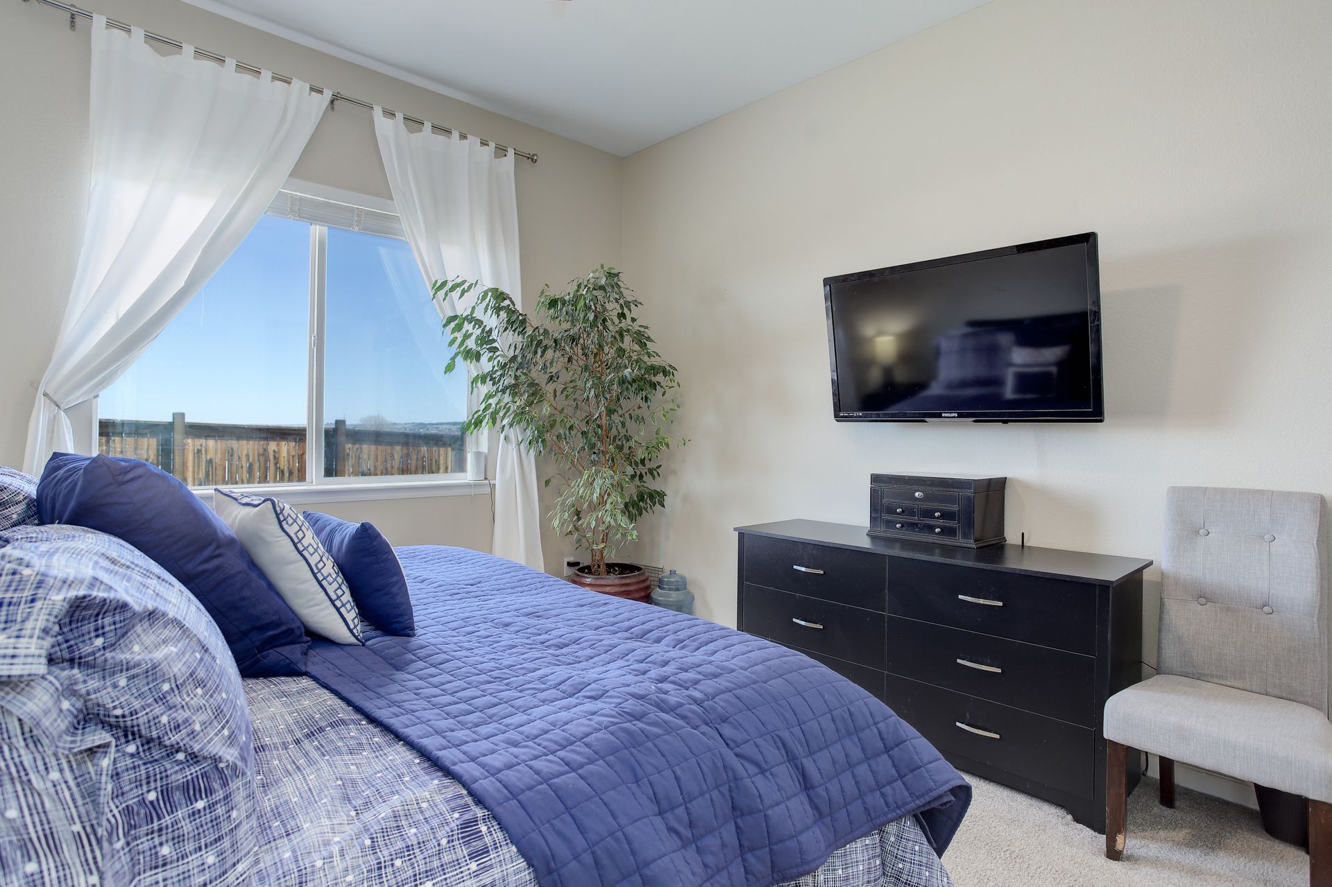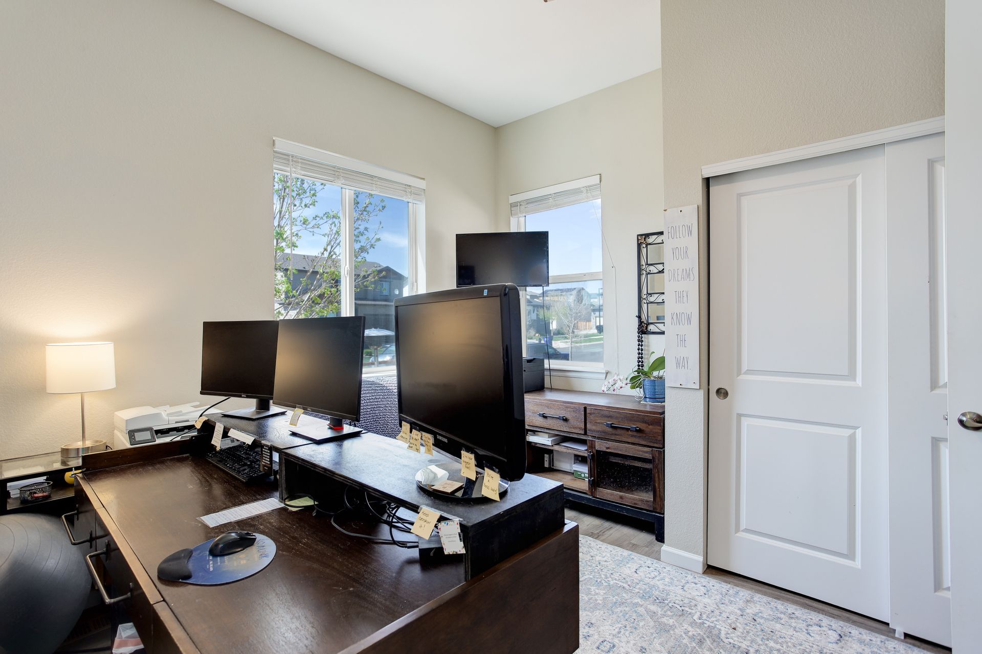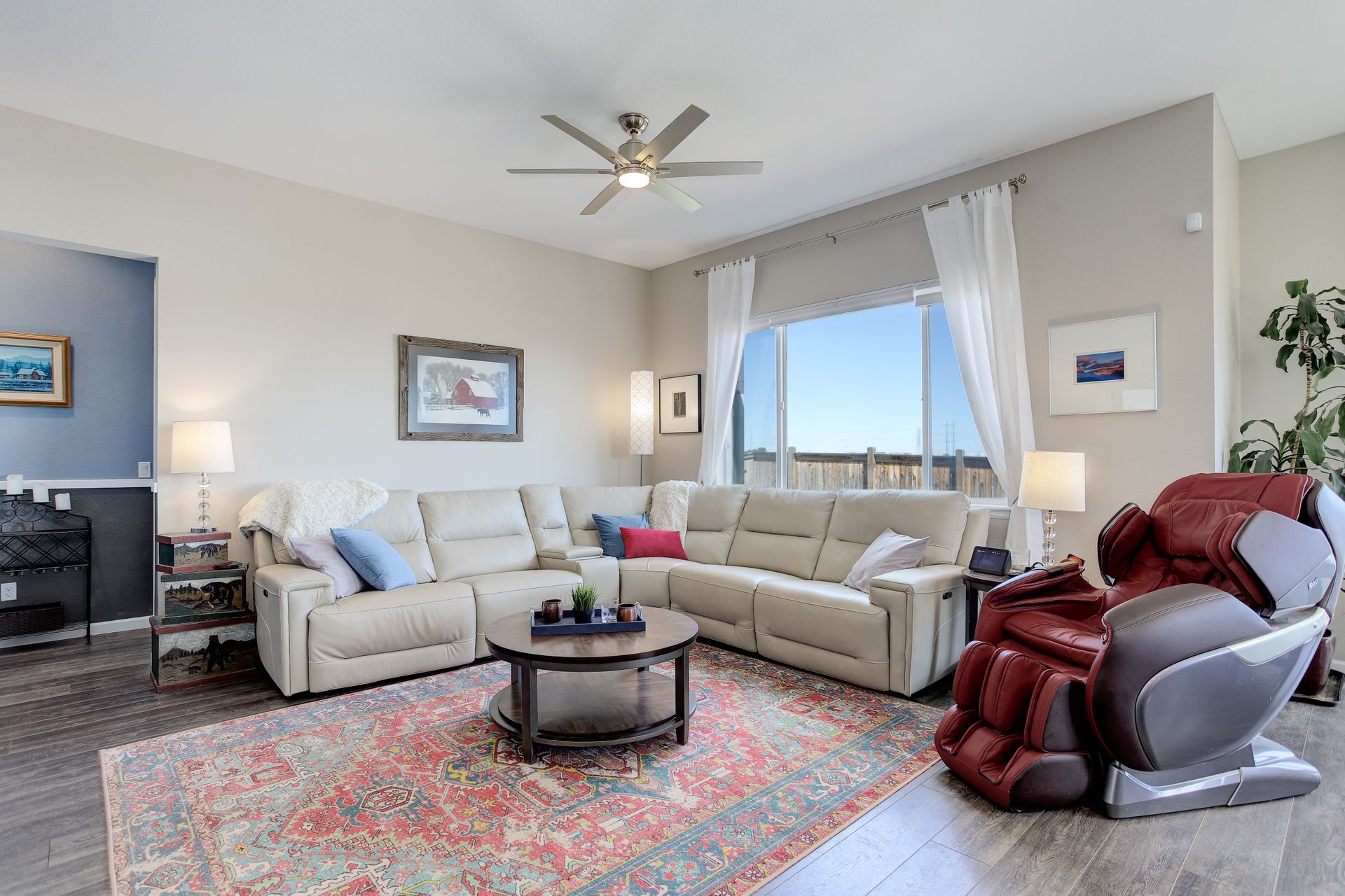 Exit outside to a private backyard sanctuary, featuring a deck and patio space ideal for grilling, relaxing, or hosting under Colorado’s big blue skies.