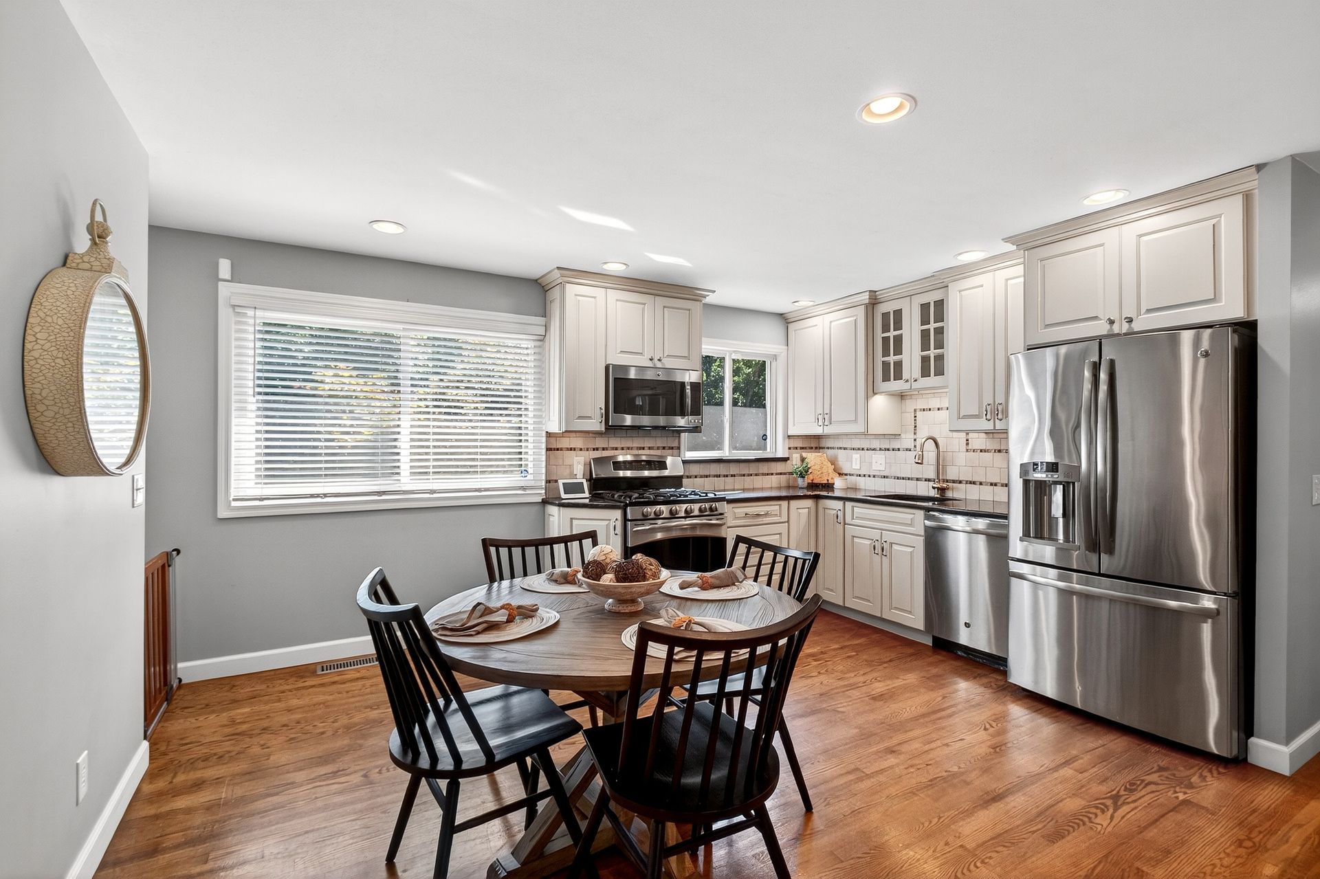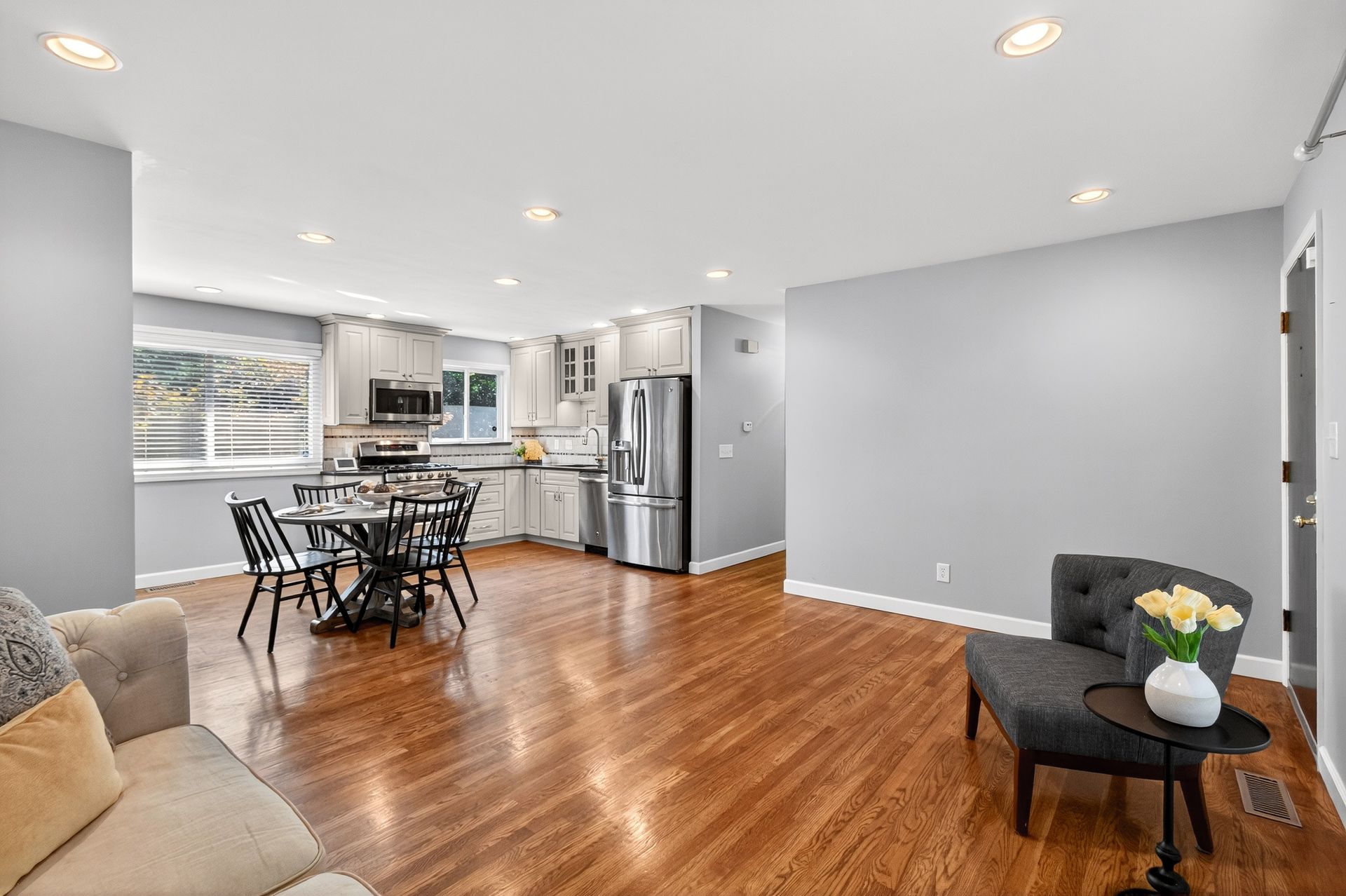 This charming, move-in ready 3-bedroom, 2-bath home checks every box! From the moment you step inside, you'll love the warm, inviting living room with gleaming hardwood floors that flow throughout the main level. The remodeled eat-in kitchen shines with stainless steel appliances, modern finishes, and generous space for casual dining or gatherings. Three main-level bedrooms and a full bath round out the upstairs with comfort and functionality. Downstairs, the finished lower level offers a spacious rec room—perfect for movie nights, playtime, or a cozy home office—along with an additional full bath for extra convenience. Recent updates like new windows and a hot water heater add peace of mind, while the backyard invites you to relax or entertain in a private outdoor setting backing to a wooded common ground and creek. Located in the sought-after Rockwood School District with quick access to Highway 141, within a subdivision that offers a neighborhood park and walking distance to the high school. This gem combines comfort, location, and lifestyle in one perfect package!