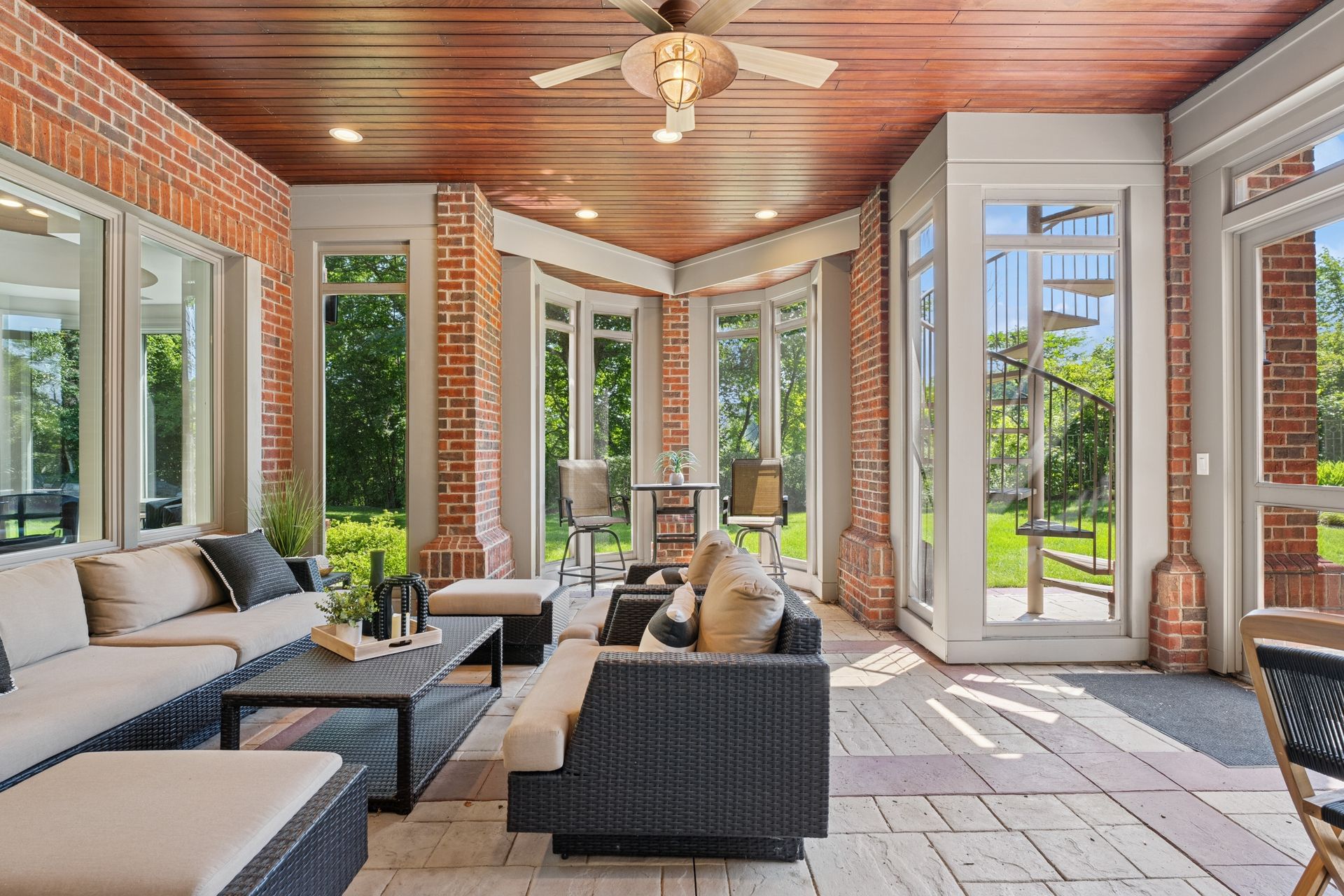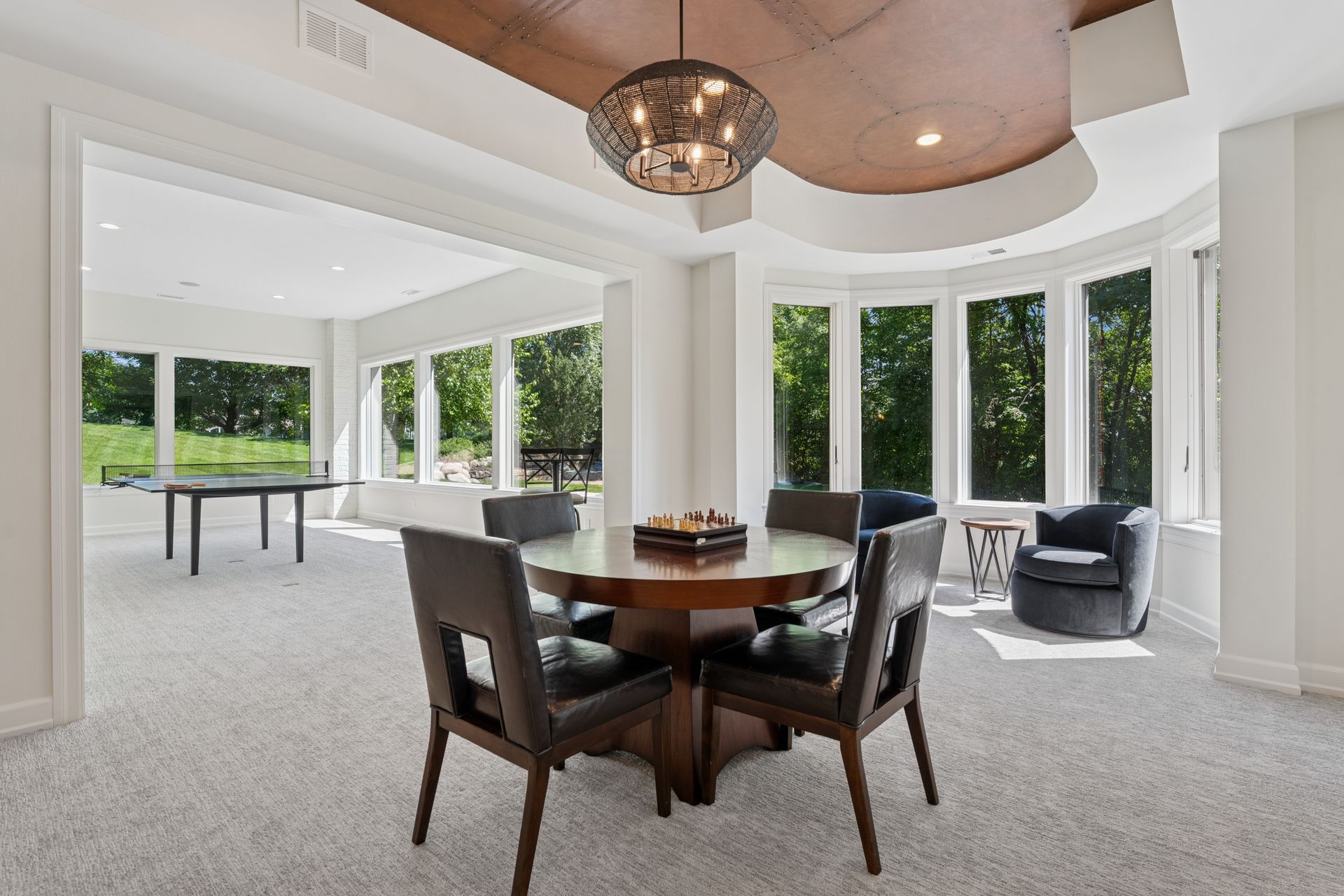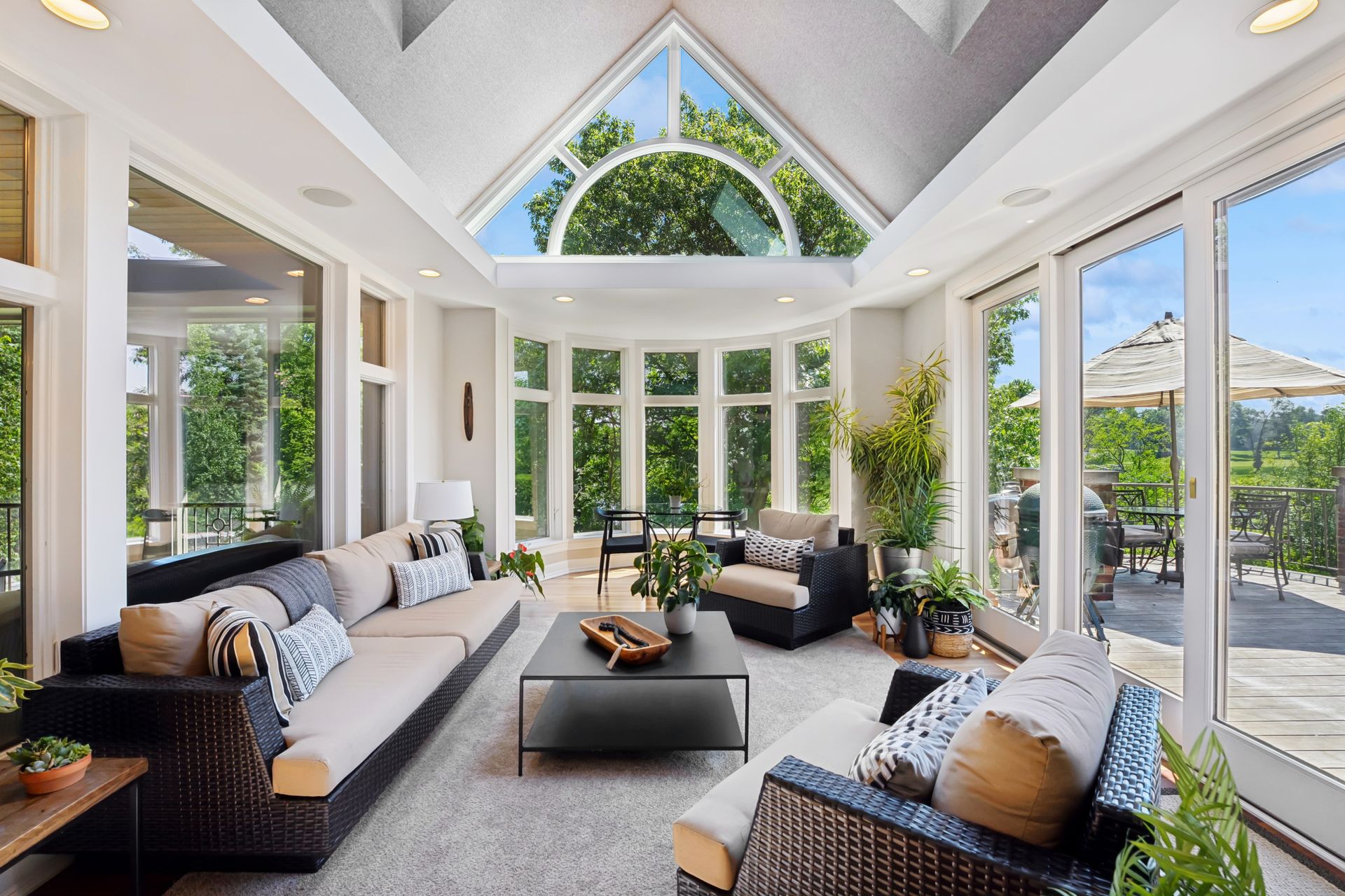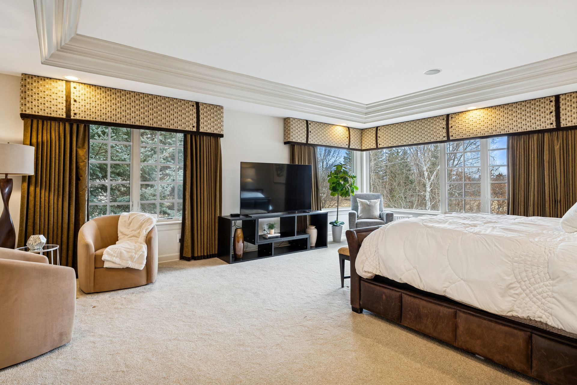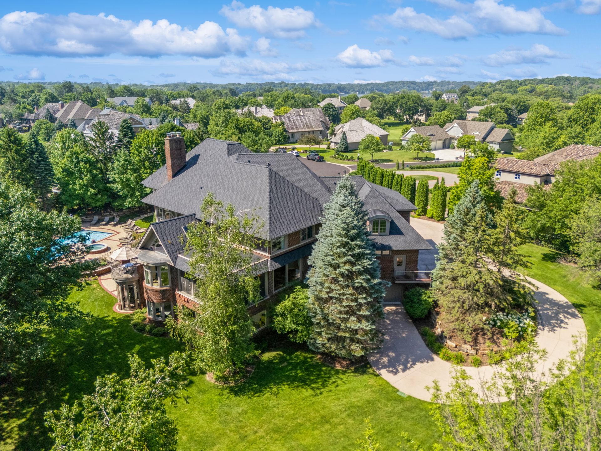 Welcome to this exceptional masterpiece by award-winning Charles Cudd, located in the prestigious Bearpath Golf & Country Club, one of Minnesota’s most exclusive gated communities. This estate offers a rare combination of architectural grandeur, luxury, and privacy, sitting on a sprawling 1.13-acre lot with breathtaking views of the serene pond and championship golf course. A grand circular driveway leads to the residence, where timeless design meets craftsmanship. Inside, soaring floor-to-ceiling windows and coffered ceilings fill the home with natural light. The gourmet kitchen features top-of-the-line appliances, an oversized island, and walk-in pantry. The adjacent sunroom plus 3-season porch offer peaceful spots to decompress and enjoy the gorgeous views. The upper level is home to an exceptional owner’s suite—your private sanctuary, complete with heated floors, a spa-inspired ensuite with separate tub and walk-in shower, private laundry, and a boutique-style dressing room. Four additional en-suite bedrooms. A private staircase leads to a bonus suite above the garage, featuring a living room, bedroom, and bath—ideal for an executive office, guest retreat, or private quarters. The new lower level includes a wet bar, home theater, family and rec area, wine and cigar lounge, bedroom, bath, and gym. The fabulous 3-season room extends the entertainment outdoors, opening to the patios, pool, and spa. For the car enthusiast, two heated garages complete the home.