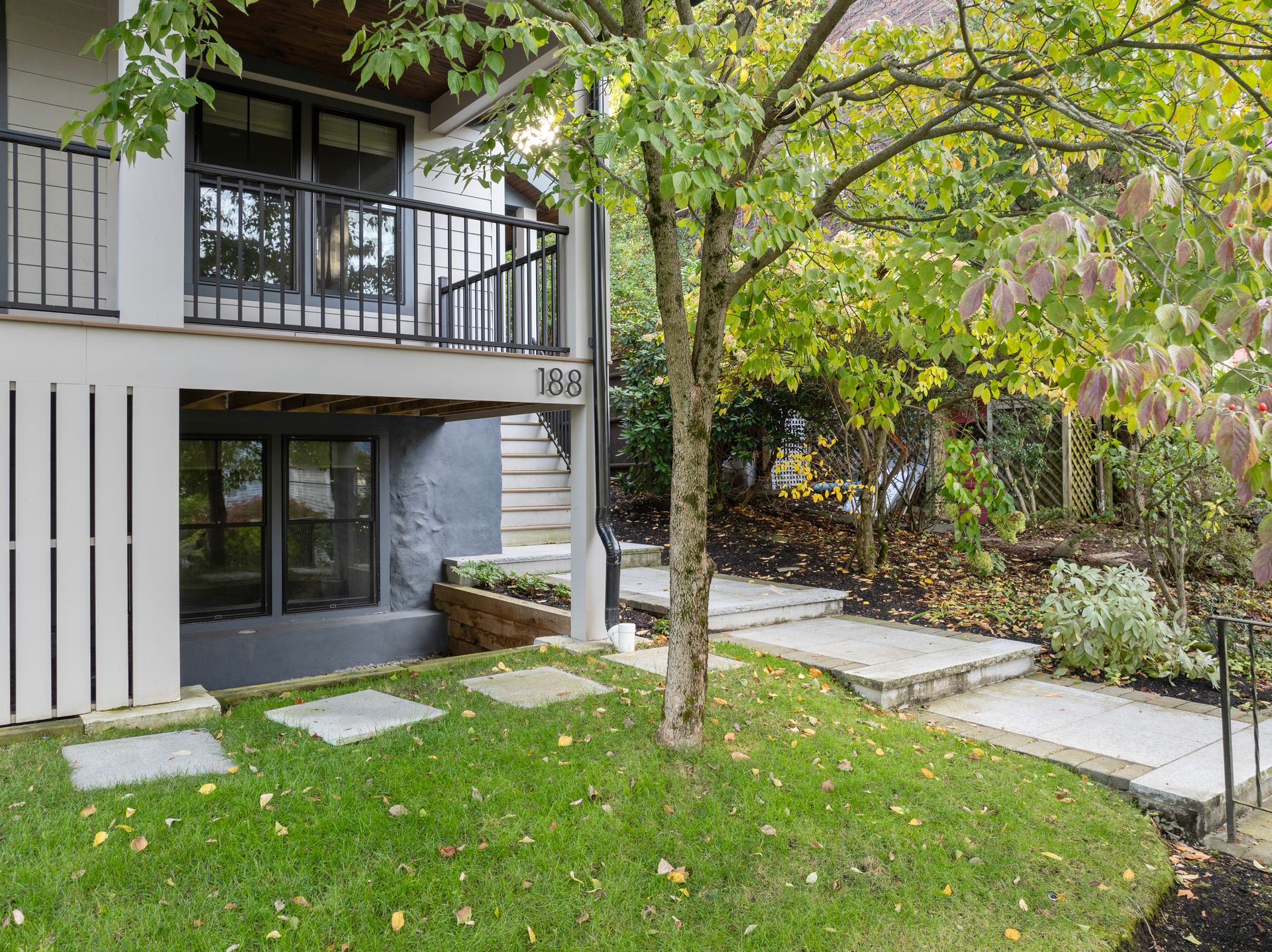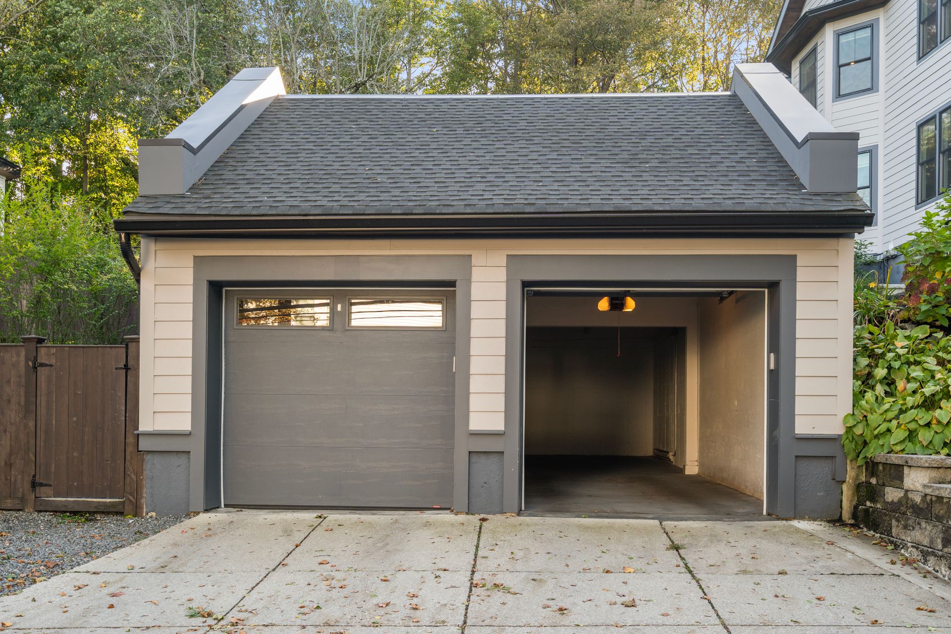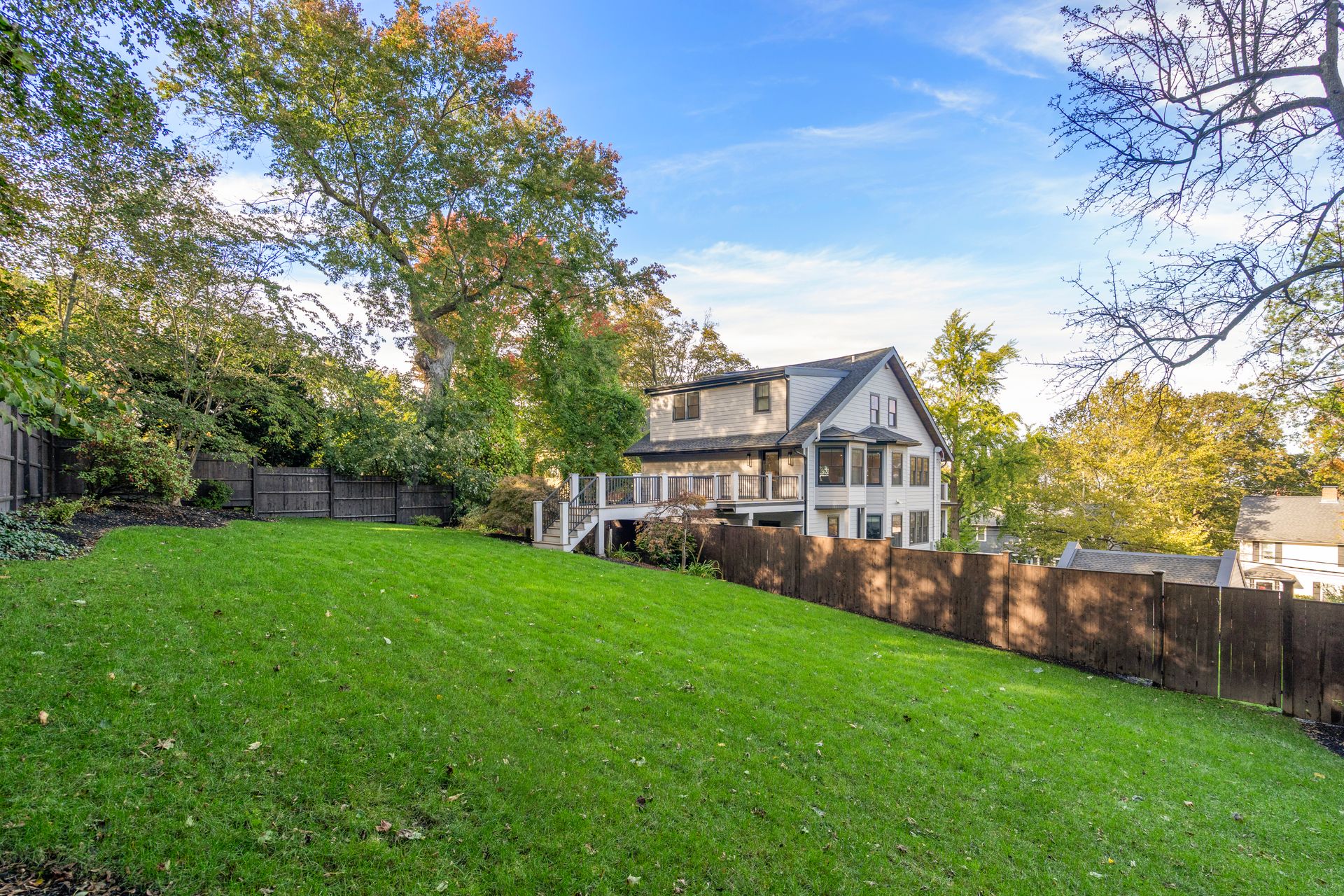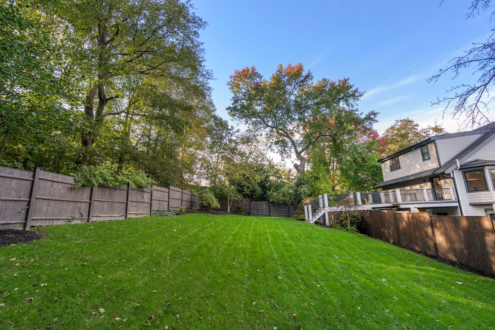 Off the kitchen to an oversized rear deck, ideal for entertaining. Situated on a double-sized lot, each unit enjoys an unusually large, private fenced yard.