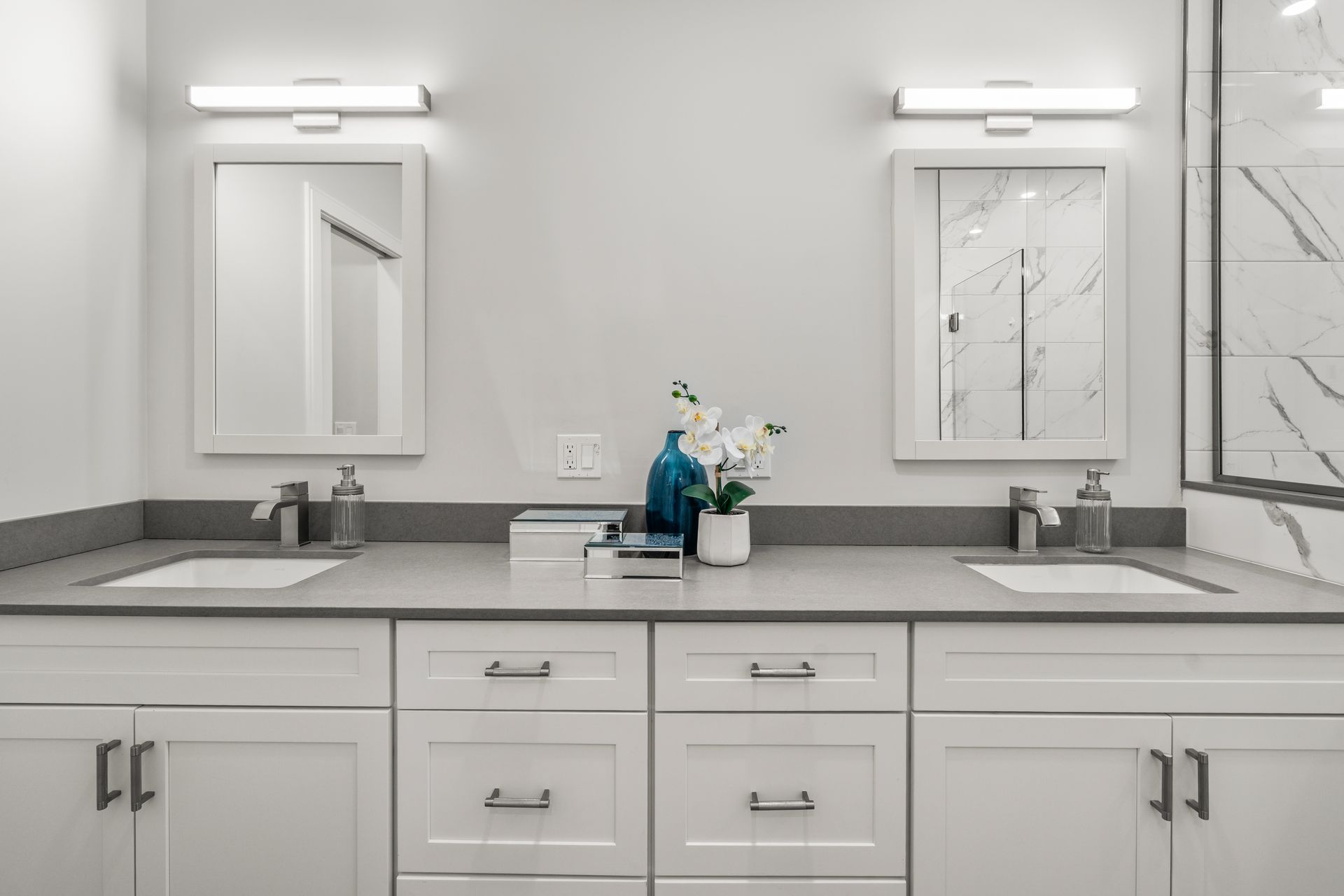 The primary bedroom suite on this level includes a walk-in closet and a luxurious en suite bathroom with a double vanity and heated flooring. Upstairs, you'll find three additional bedrooms, two full bathrooms, a versatile bonus room or office, and laundry.