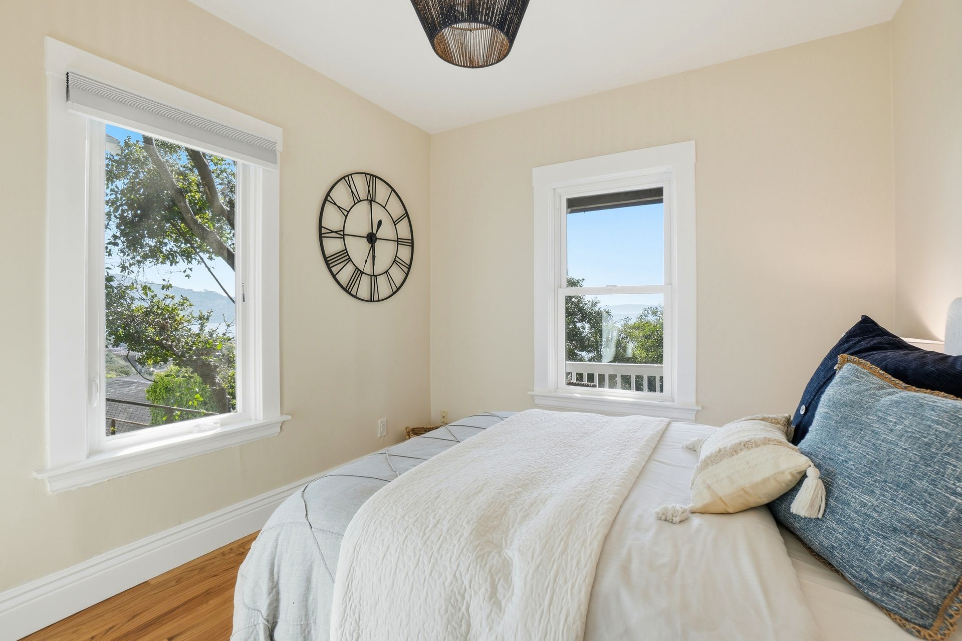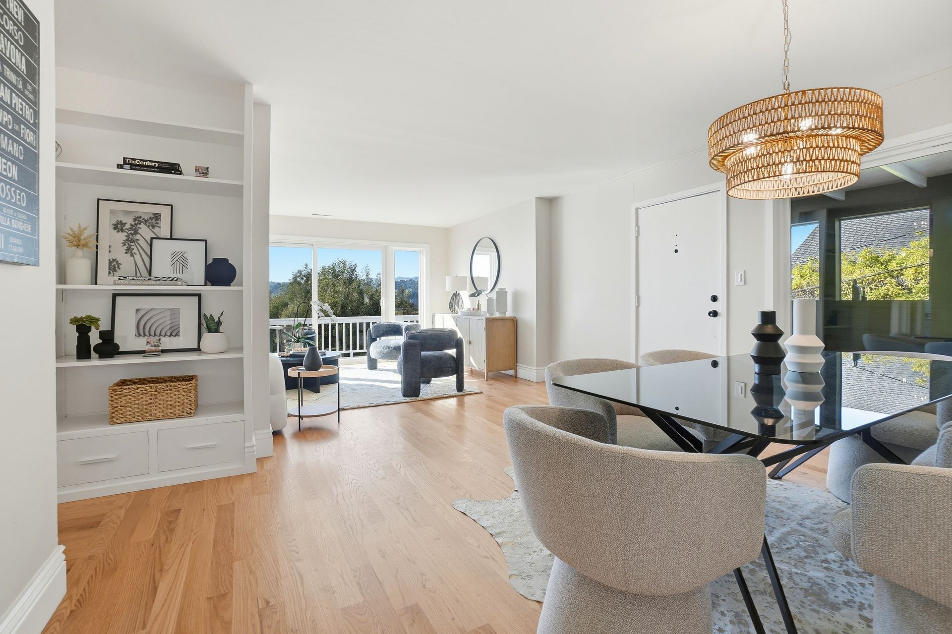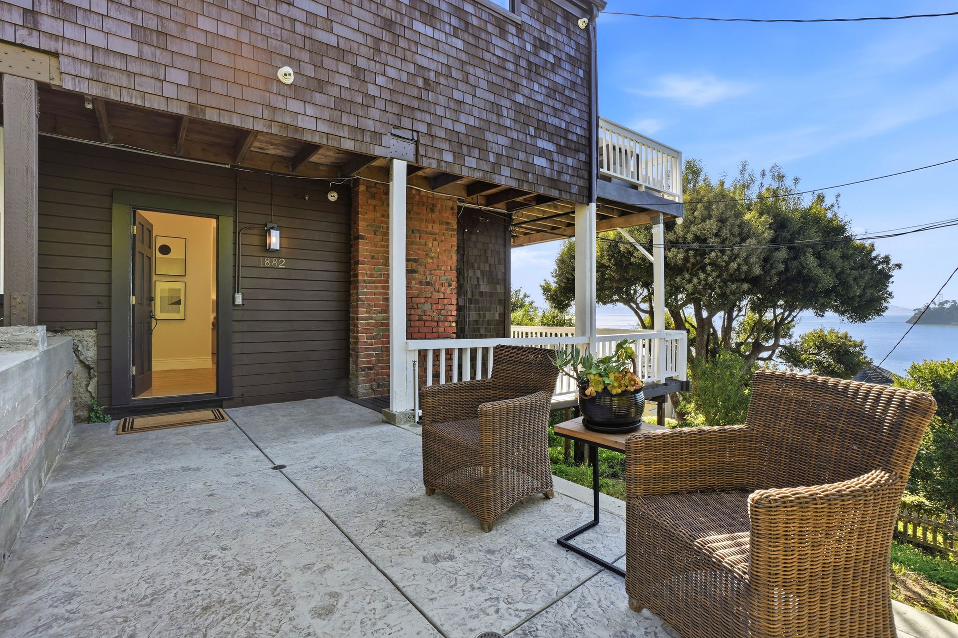 The upper home includes three bedrooms and two bathrooms, while the lower residence offers two bedrooms and one bathroom, creating a flexible layout that supports a variety of living, investment, or creative ownership opportunities. Two view decks, a yard, and three-car parking add ease and functionality, all in a location that places Tiburon’s most cherished amenities close at hand.