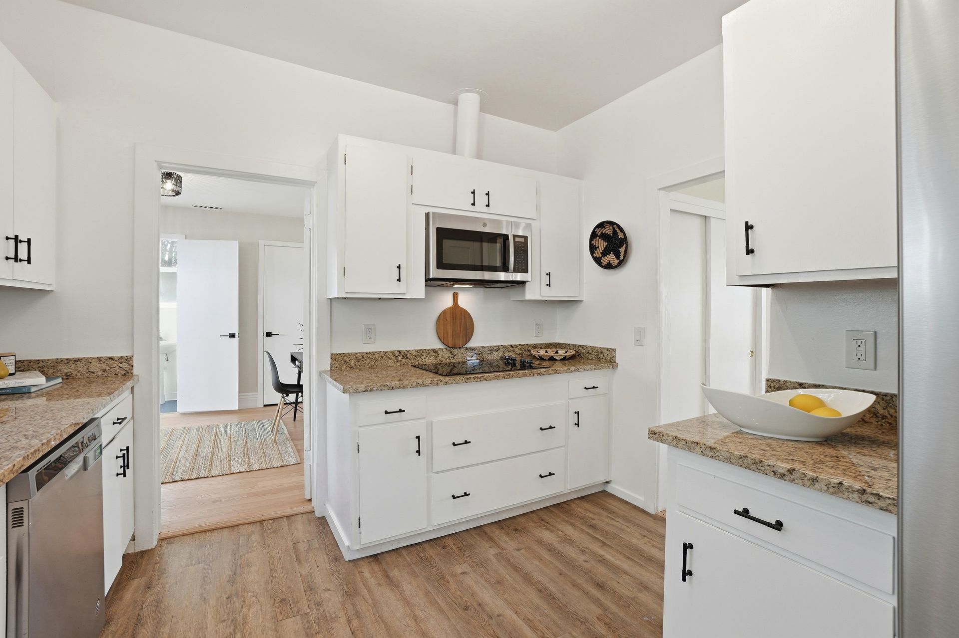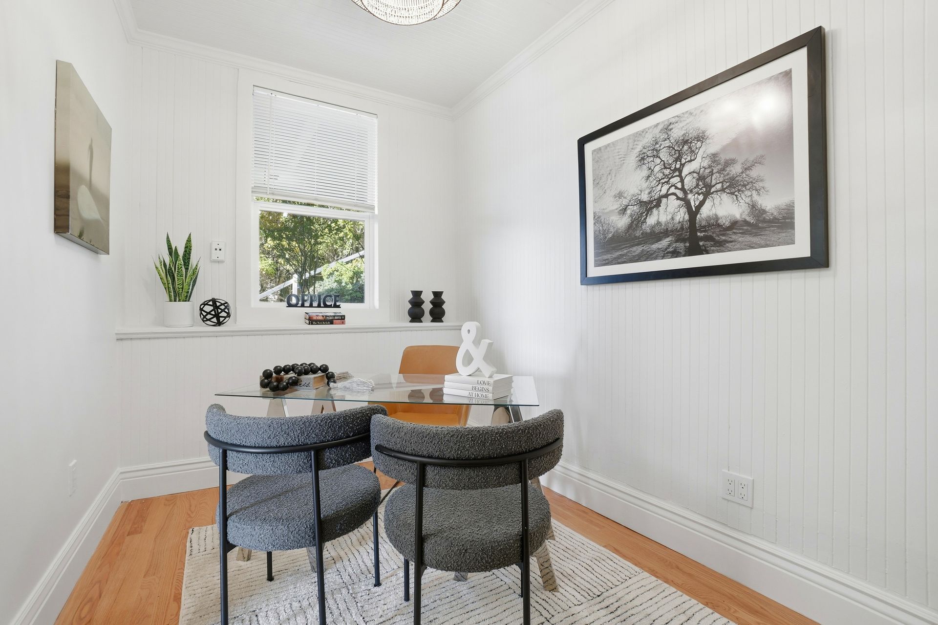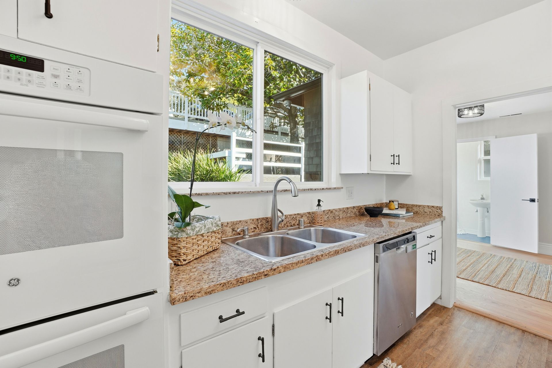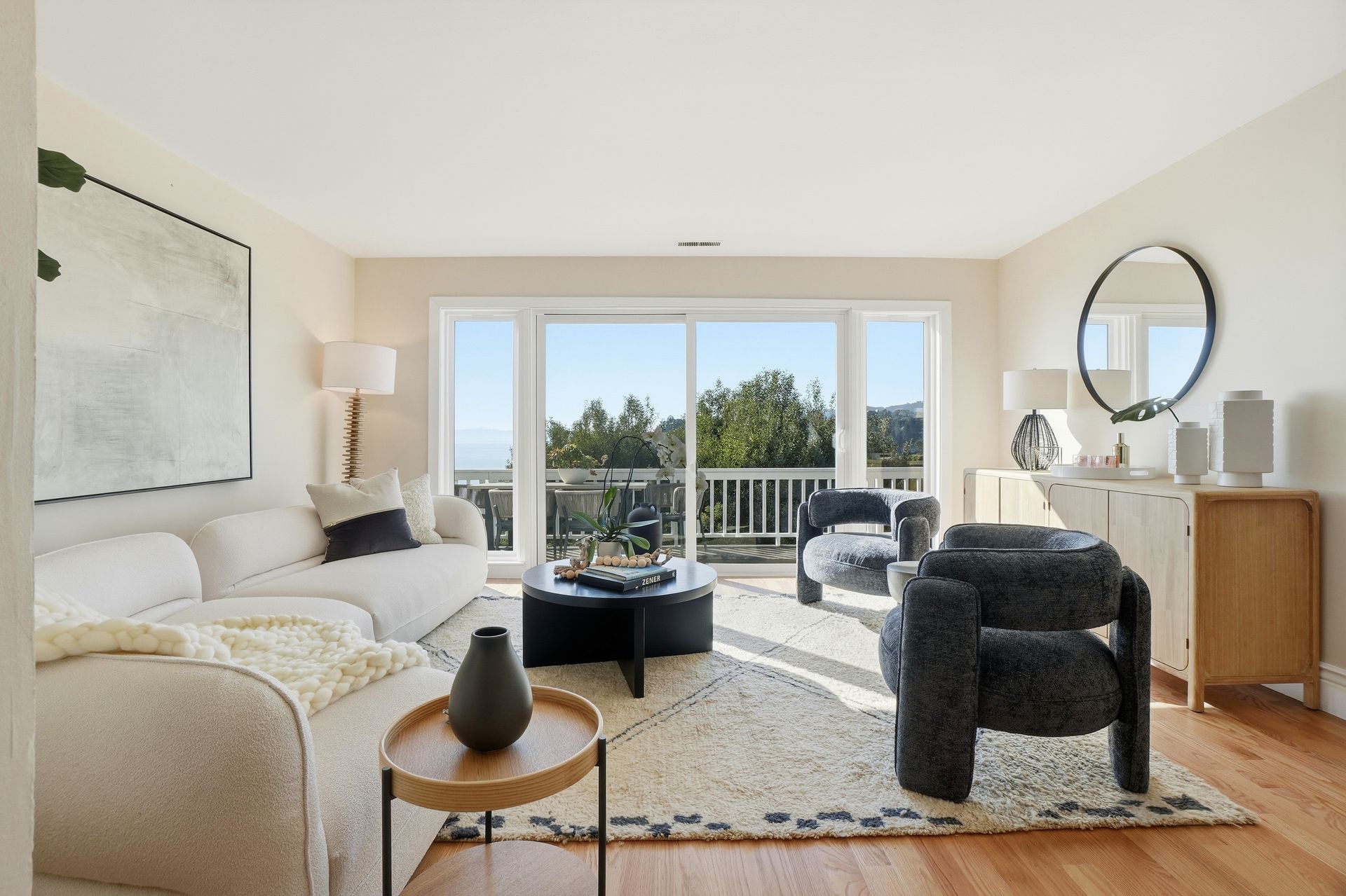The upper home includes three bedrooms and two bathrooms, while the lower residence offers two bedrooms and one bathroom, creating a flexible layout that supports a variety of living, investment, or creative ownership opportunities. Two view decks, a yard, and three-car parking add ease and functionality, all in a location that places Tiburon’s most cherished amenities close at hand.