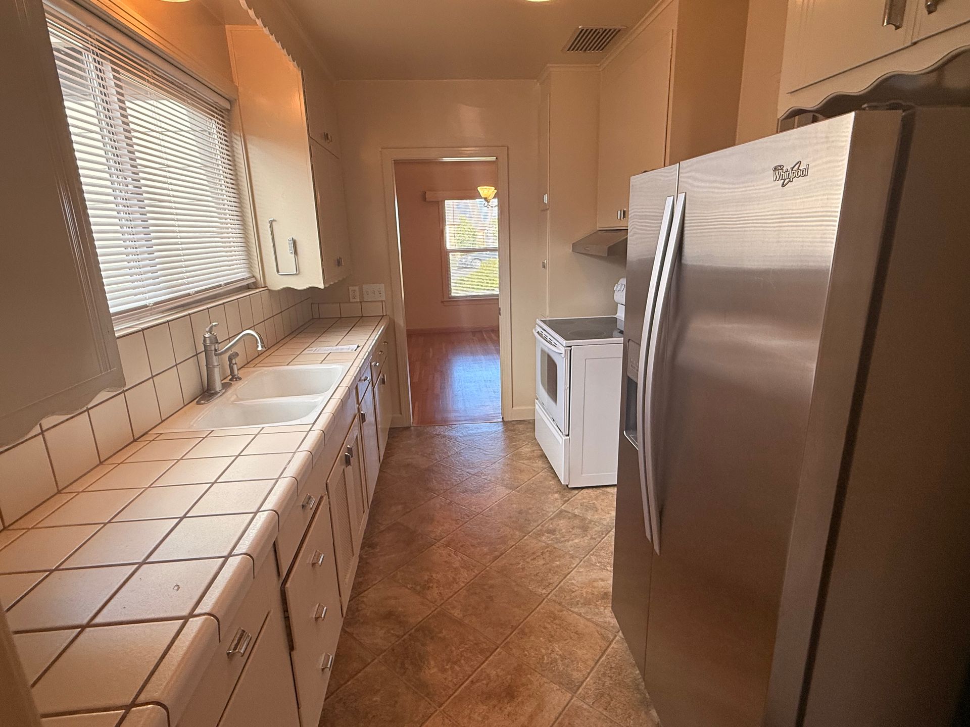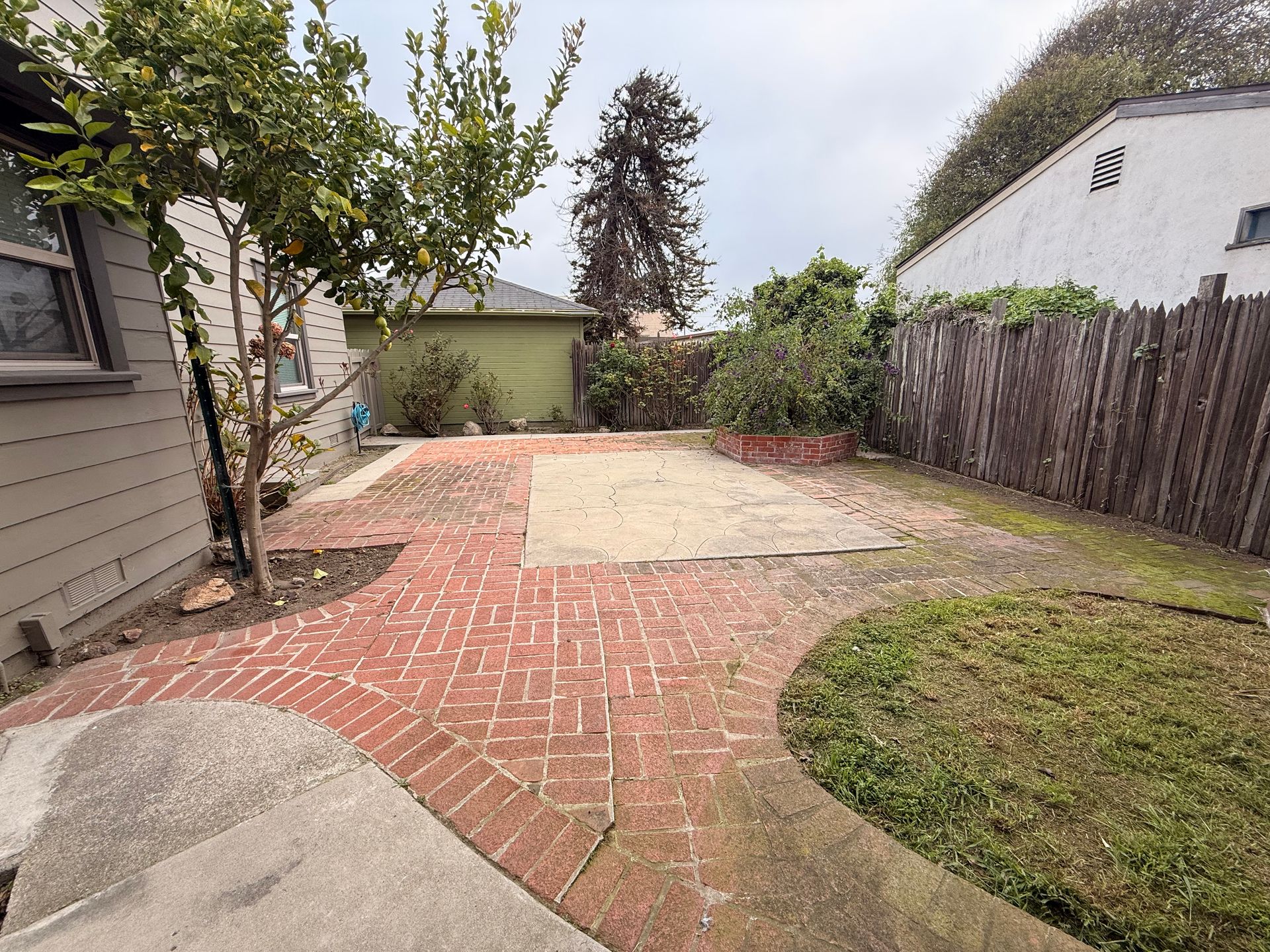 Charming home with classic character details, updated bathrooms, and inviting outdoor living spaces. Interior features include plaster walls, solid core interior doors, mirrored closet doors, and a cedar-lined closet in the primary bedroom. The primary bedroom opens to a private courtyard, creating a quiet outdoor retreat with access to the garage, laundry area, and back garden patio. Updated hall bathroom features Jacuzzi to tub and tiled shower over tub. A mudroom just off the kitchen provides convenient access to the courtyard garage backyard garden patio. The garden patio offers a relaxed in setting with rosebushes, hydrangeas, lemon tree, and flowing potato vine. The rear bedroom enjoys morning sun and overlooks the garden. Charming original features include recessed shelf in dining room, closet tie accessory rack, a traditional in-ground garbage bin, and the original milk delivery cabinet in the courtyard. A convenient location, near shopping, services, and freeway.