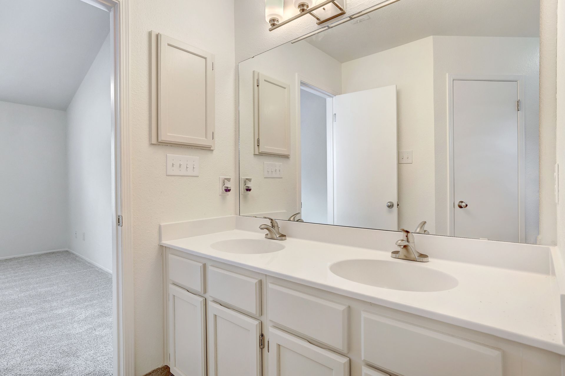 The primary suite includes an en-suite bathroom and ample closet space, while two additional bedrooms offer flexibility for family, guests, or a home office. The second full bath is equally updated and thoughtfully designed.