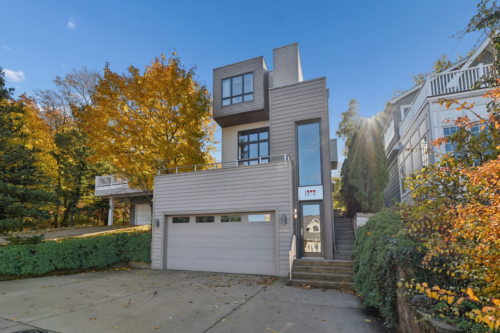 1909 Lake Shore Drive, Long Beach - Stunning 4-Level Mid-Century Home with Lake Michigan Views This exceptional 4-level home offers a perfect blend of mid-century design and modern luxury. Located just steps from the beach, it features breathtaking views of Lake Michigan The ground level includes a 2-car garage with direct access, while the main living level boasts a sunny living room leading out to a 20-foot deck, a large family room with fireplace, and a chef's kitchen with custom Berch cabinets and an eat-in area. Upstairs, you'll find two master bedrooms, and two additional bedrooms. The top level is a fantastic loft bedroom with floor to ceiling windows and a private deck. The home is fully updated and includes a convenient elevator serving all levels. Don't miss this unique opportunity to own a piece of architectural excellence in Long Beach!