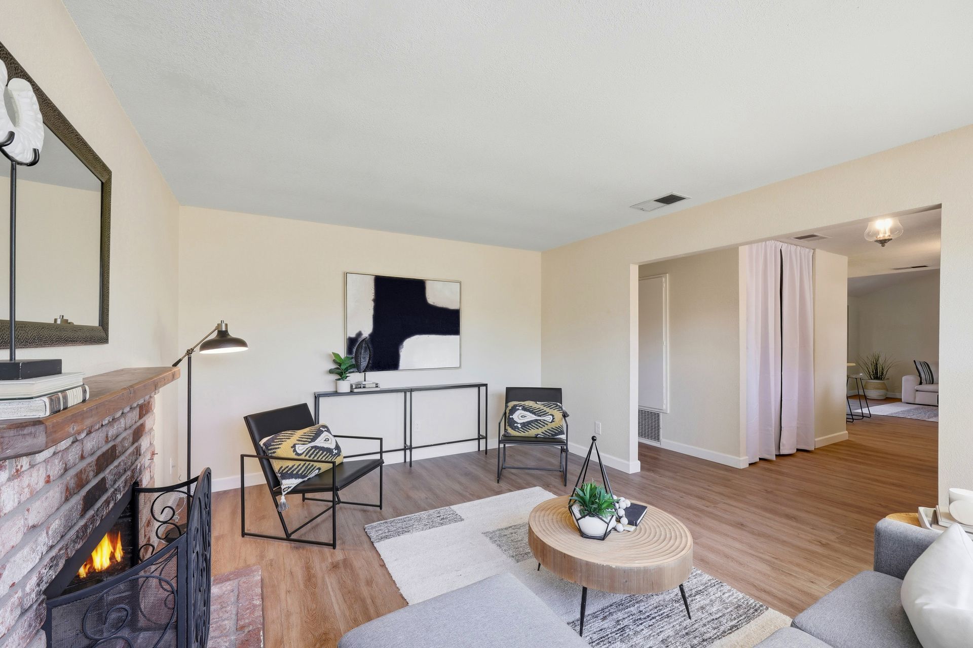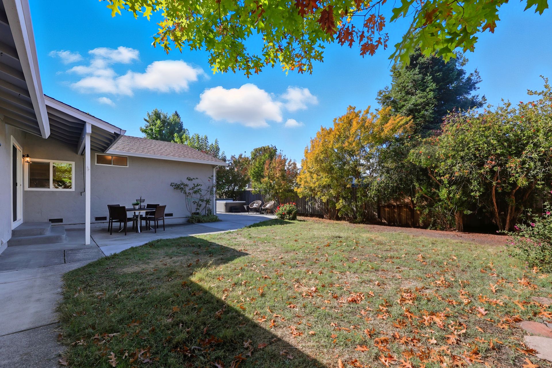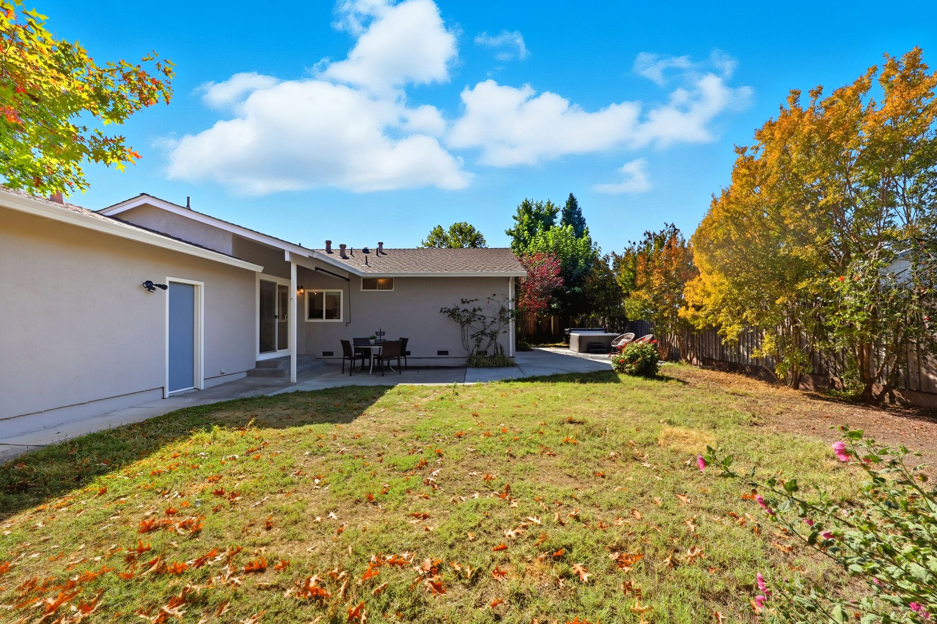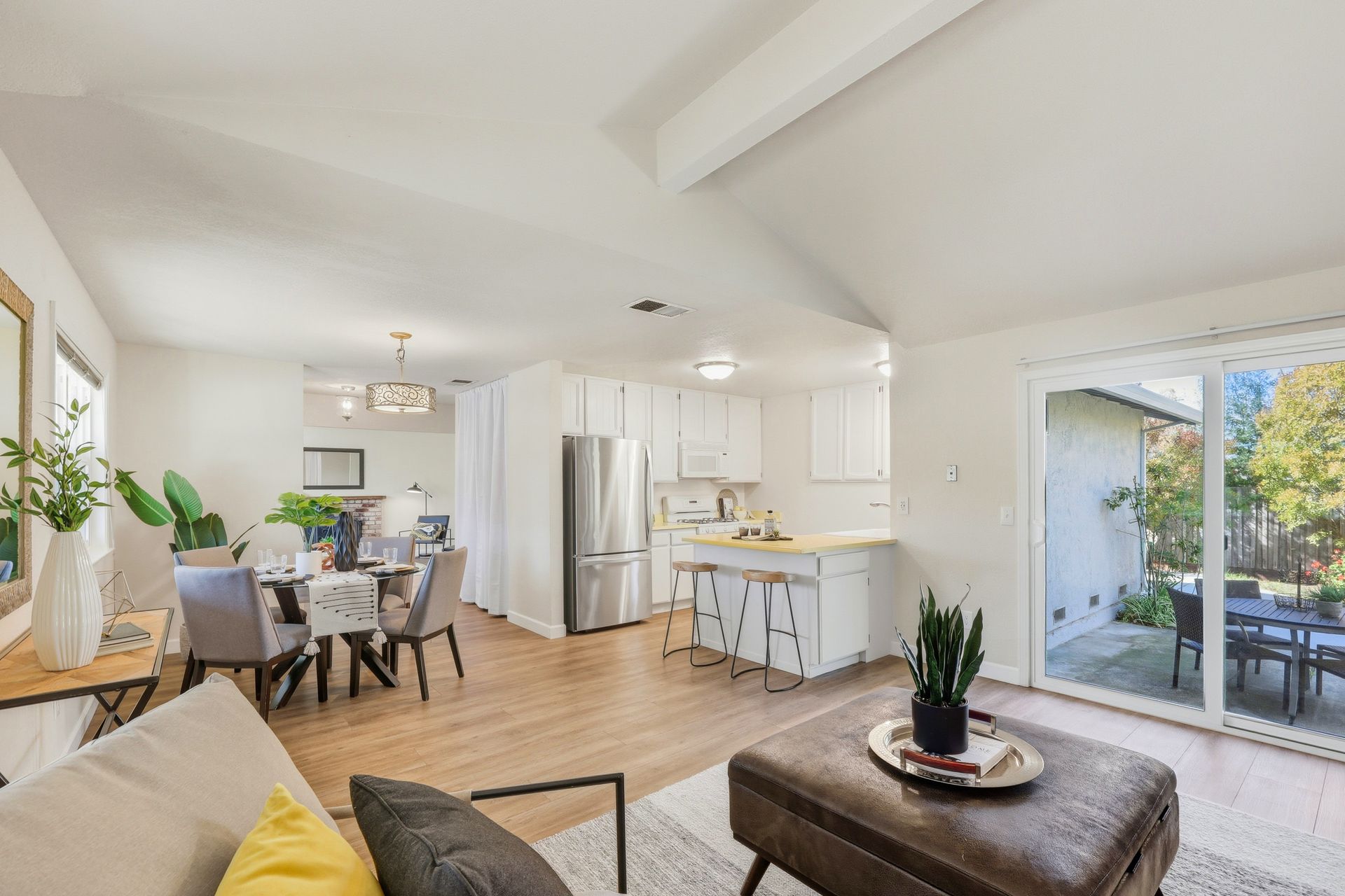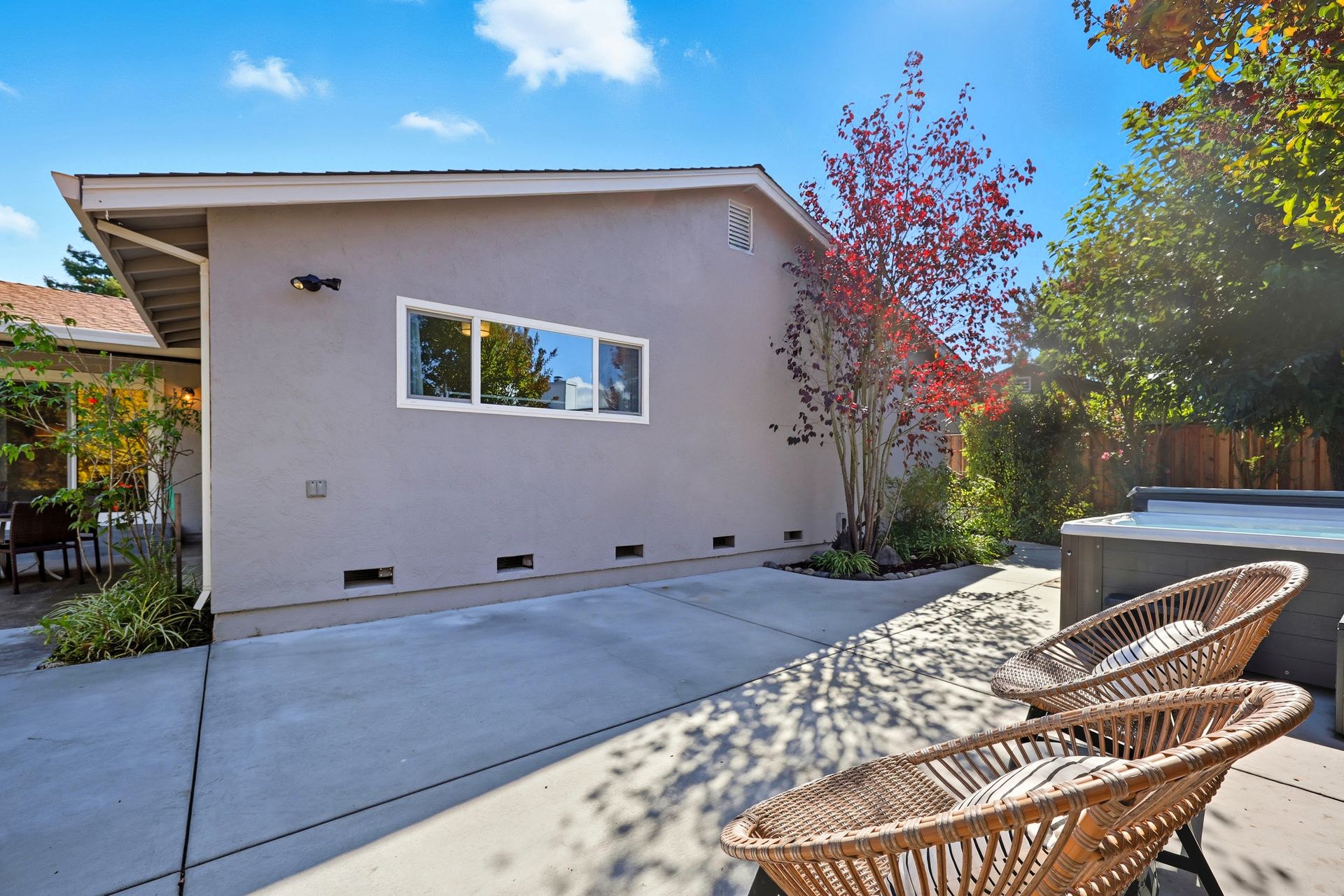 Welcome home to this inviting single-story residence offering 1,408± square feet of comfortable livable space with three bedrooms and two full baths. The light-filled living room features a wood-burning fireplace, ideal for cozy evenings, while the kitchen opens to a casual family room that flows effortlessly to the backyard. A large sliding door leads to a spacious and private backyard nicely hardscaped to provide areas for dining, gardening, and relaxing in the hot tub. Recent upgrades enhance both style and comfort, including wide-plank high-quality COREtec flooring, Milgard dual-pane windows, fresh exterior paint, and a newer furnace and air conditioning system. Both bathrooms have been tastefully refreshed with newer vanities and paint. Additional features include a two-car garage and newer concrete driveway, offering convenience and curb appeal.