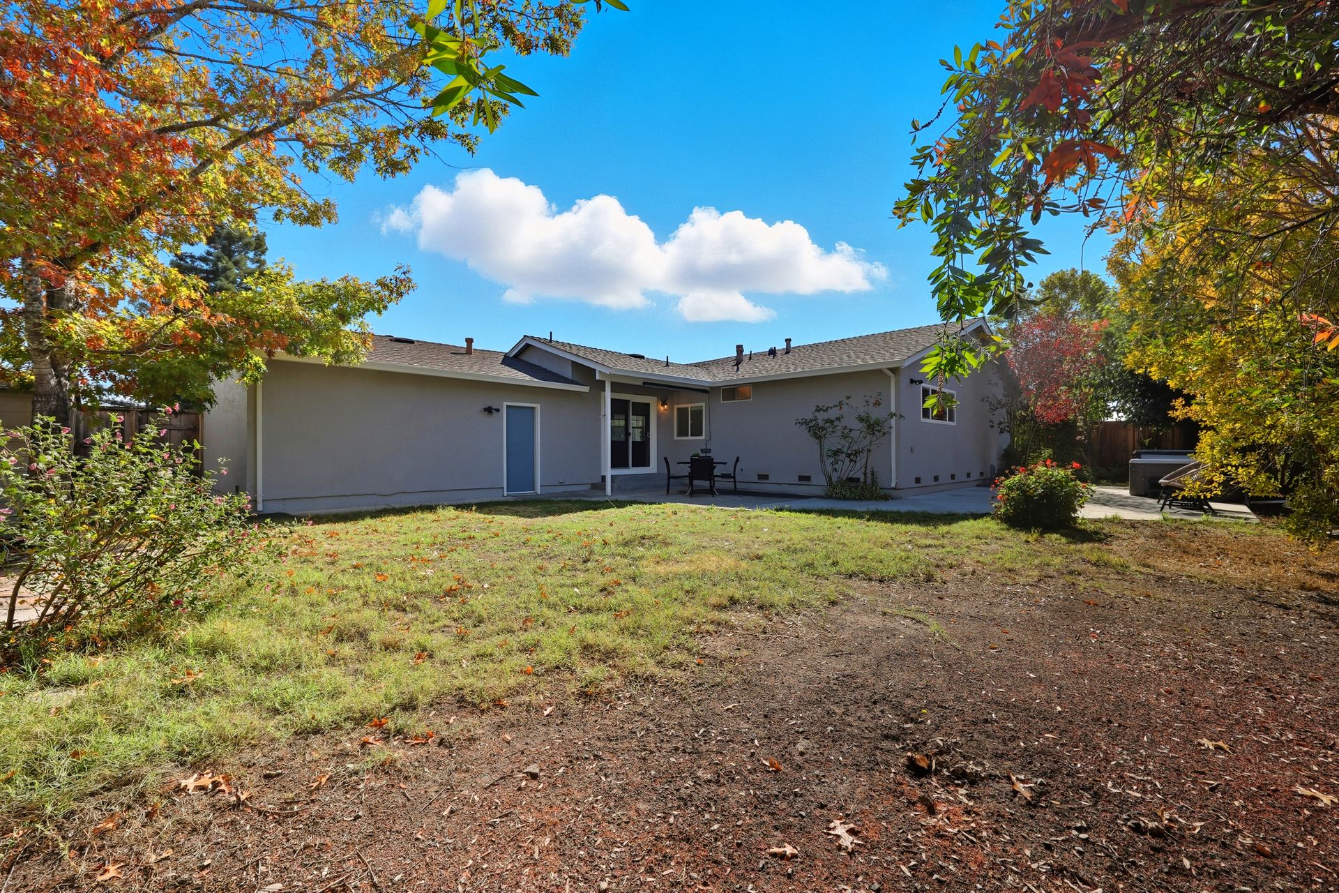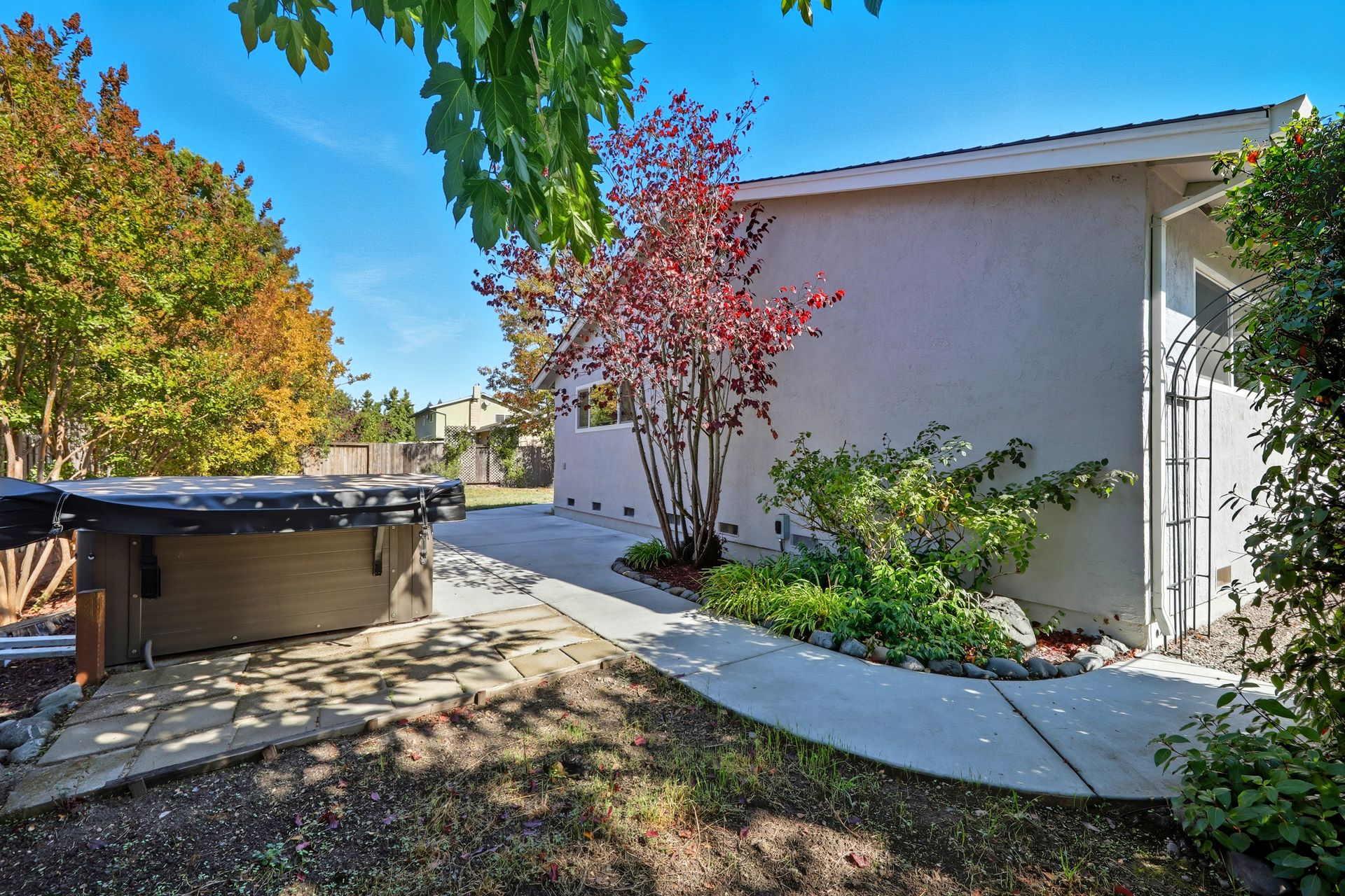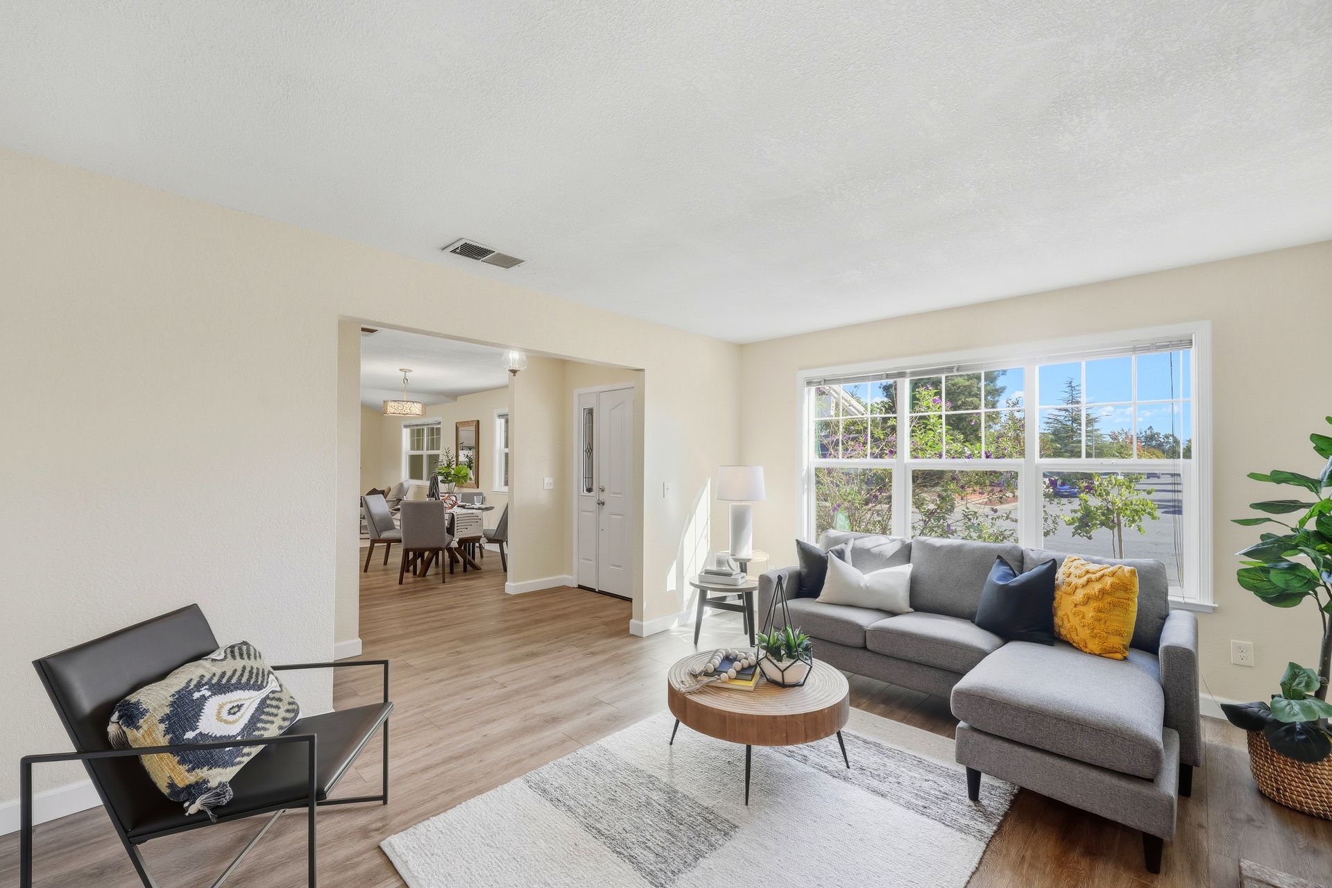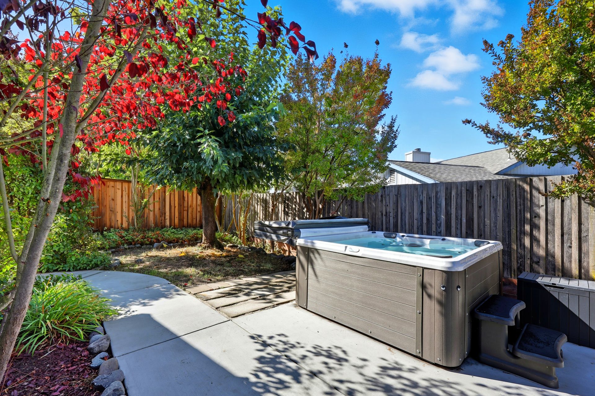 Welcome home to this inviting single-story residence offering 1,408± square feet of comfortable livable space with three bedrooms and two full baths. The light-filled living room features a wood-burning fireplace, ideal for cozy evenings, while the kitchen opens to a casual family room that flows effortlessly to the backyard. A large sliding door leads to a spacious and private backyard nicely hardscaped to provide areas for dining, gardening, and relaxing in the hot tub. Recent upgrades enhance both style and comfort, including wide-plank high-quality COREtec flooring, Milgard dual-pane windows, fresh exterior paint, and a newer furnace and air conditioning system. Both bathrooms have been tastefully refreshed with newer vanities and paint. Additional features include a two-car garage and newer concrete driveway, offering convenience and curb appeal.