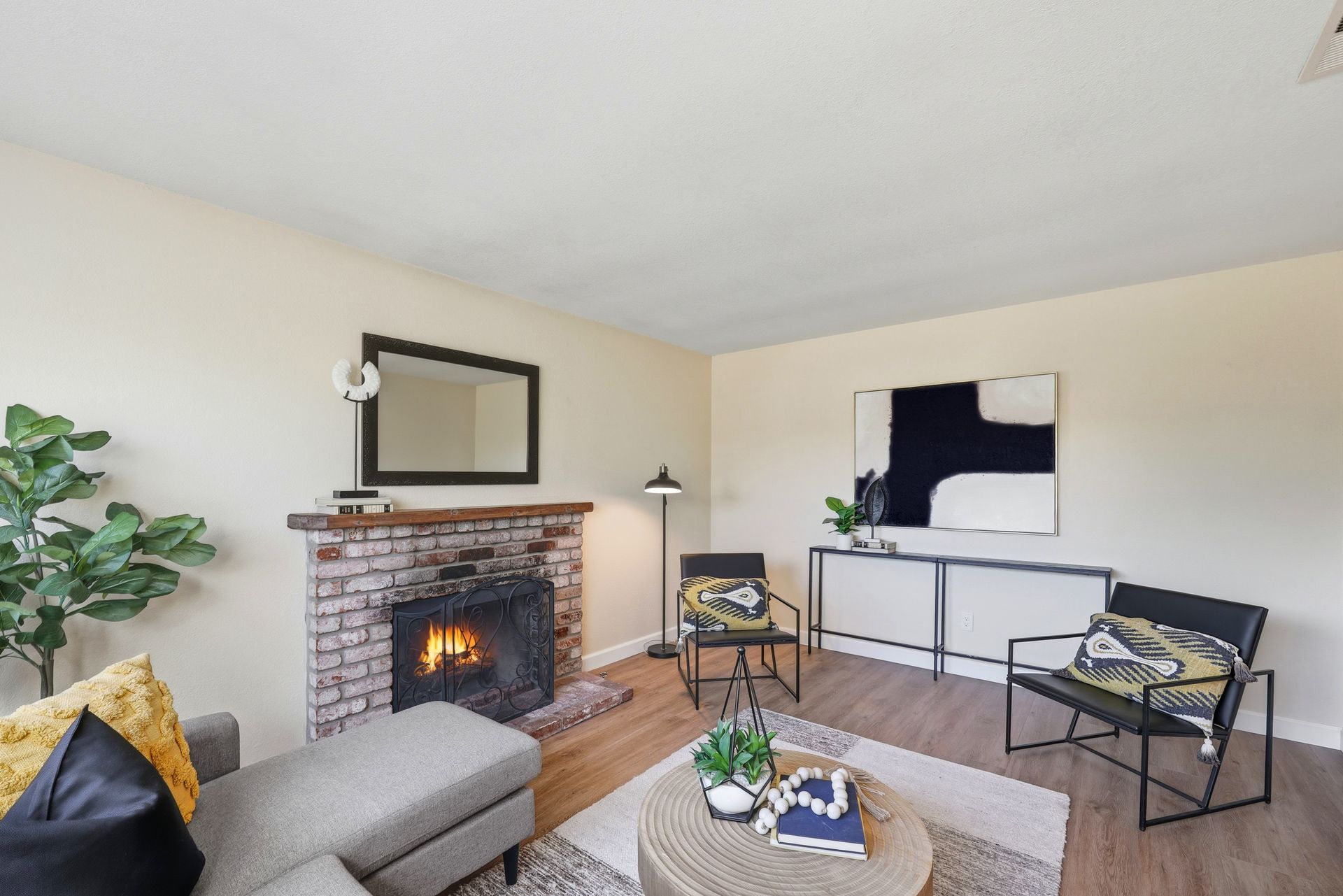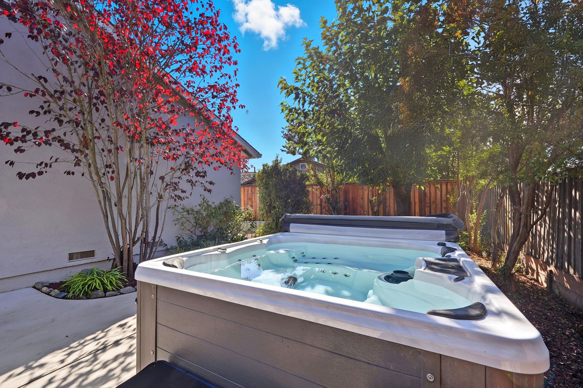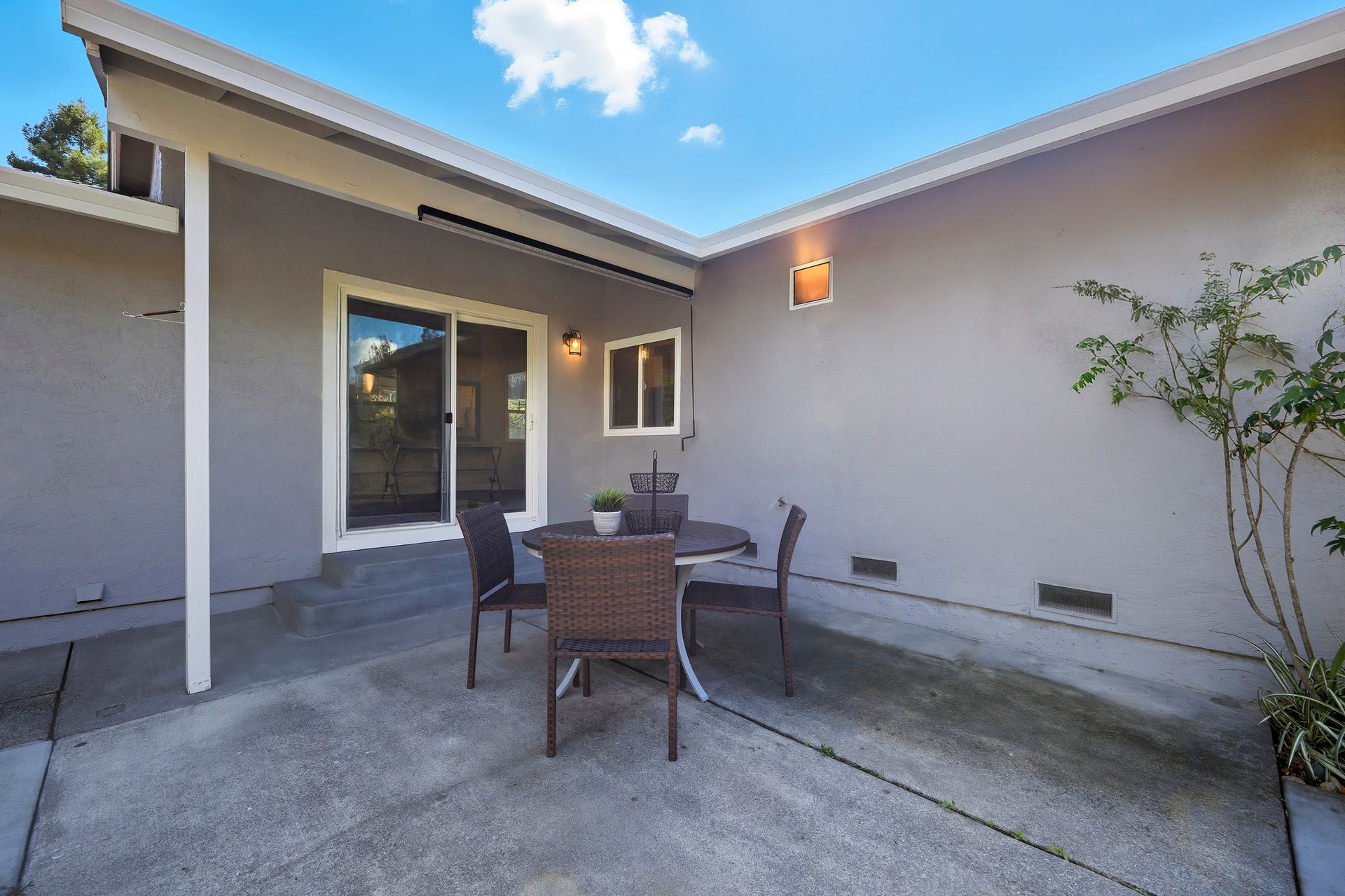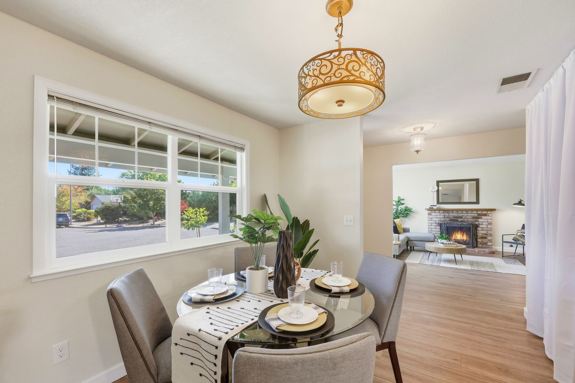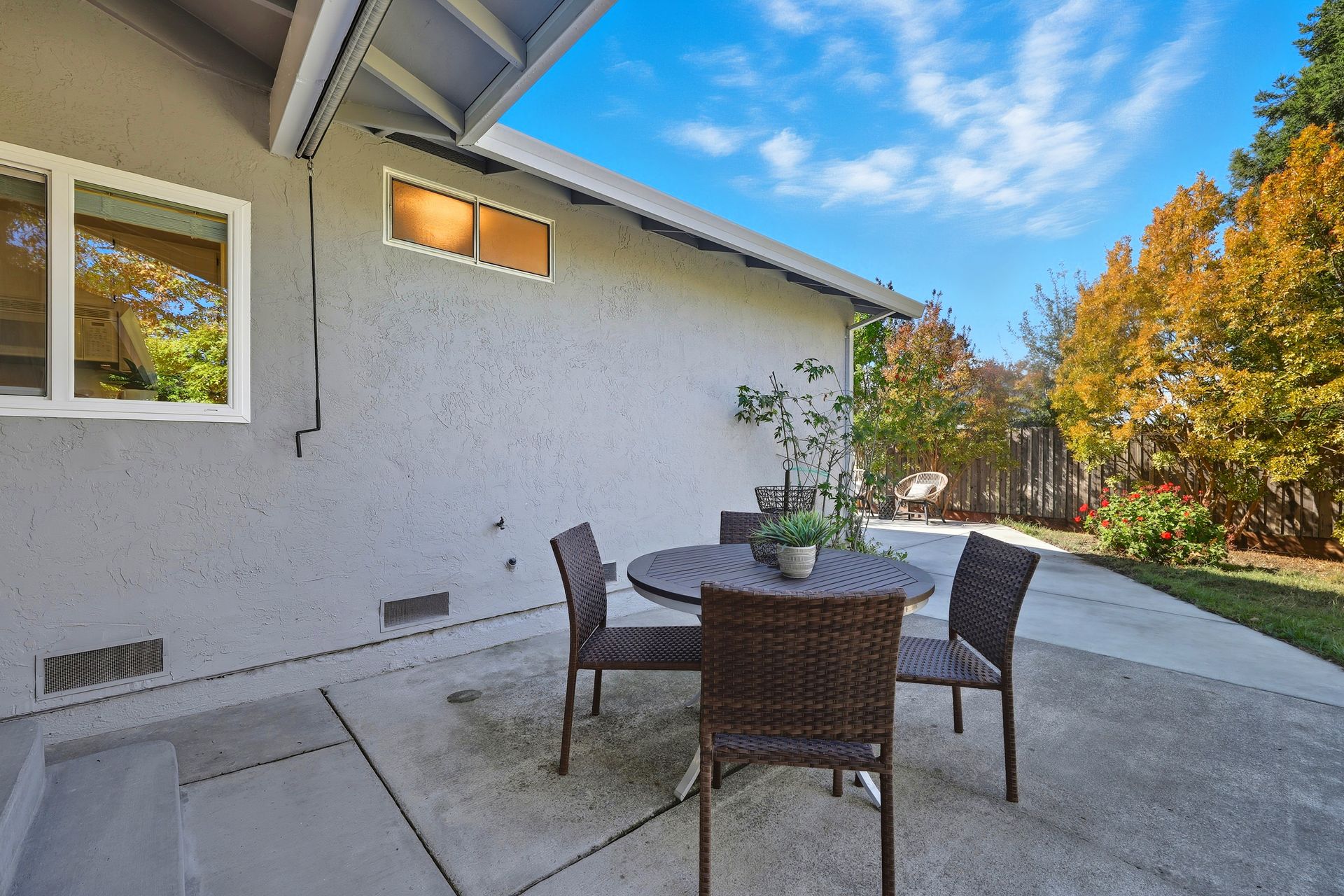 Welcome home to this inviting single-story residence offering 1,408± square feet of comfortable livable space with three bedrooms and two full baths. The light-filled living room features a wood-burning fireplace, ideal for cozy evenings, while the kitchen opens to a casual family room that flows effortlessly to the backyard. A large sliding door leads to a spacious and private backyard nicely hardscaped to provide areas for dining, gardening, and relaxing in the hot tub. Recent upgrades enhance both style and comfort, including wide-plank high-quality COREtec flooring, Milgard dual-pane windows, fresh exterior paint, and a newer furnace and air conditioning system. Both bathrooms have been tastefully refreshed with newer vanities and paint. Additional features include a two-car garage and newer concrete driveway, offering convenience and curb appeal.
