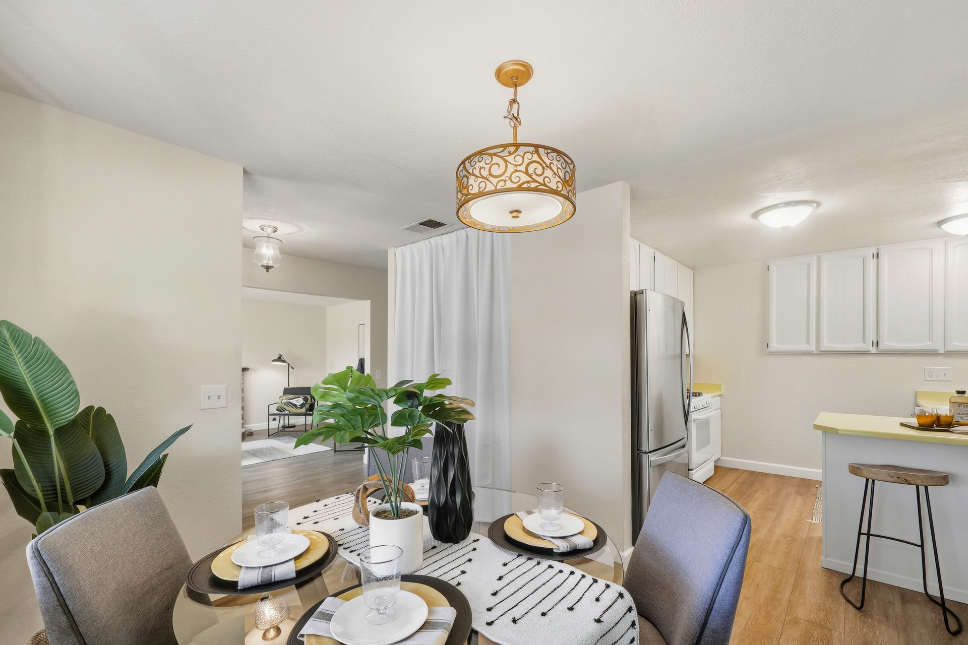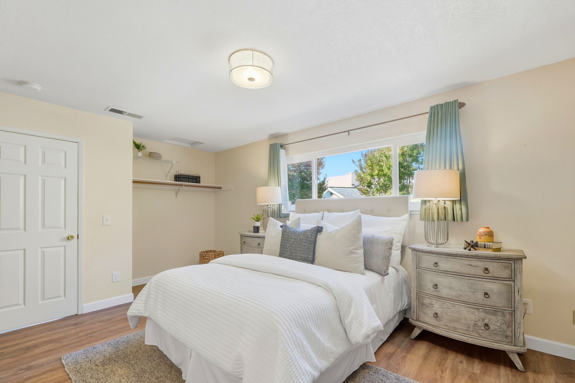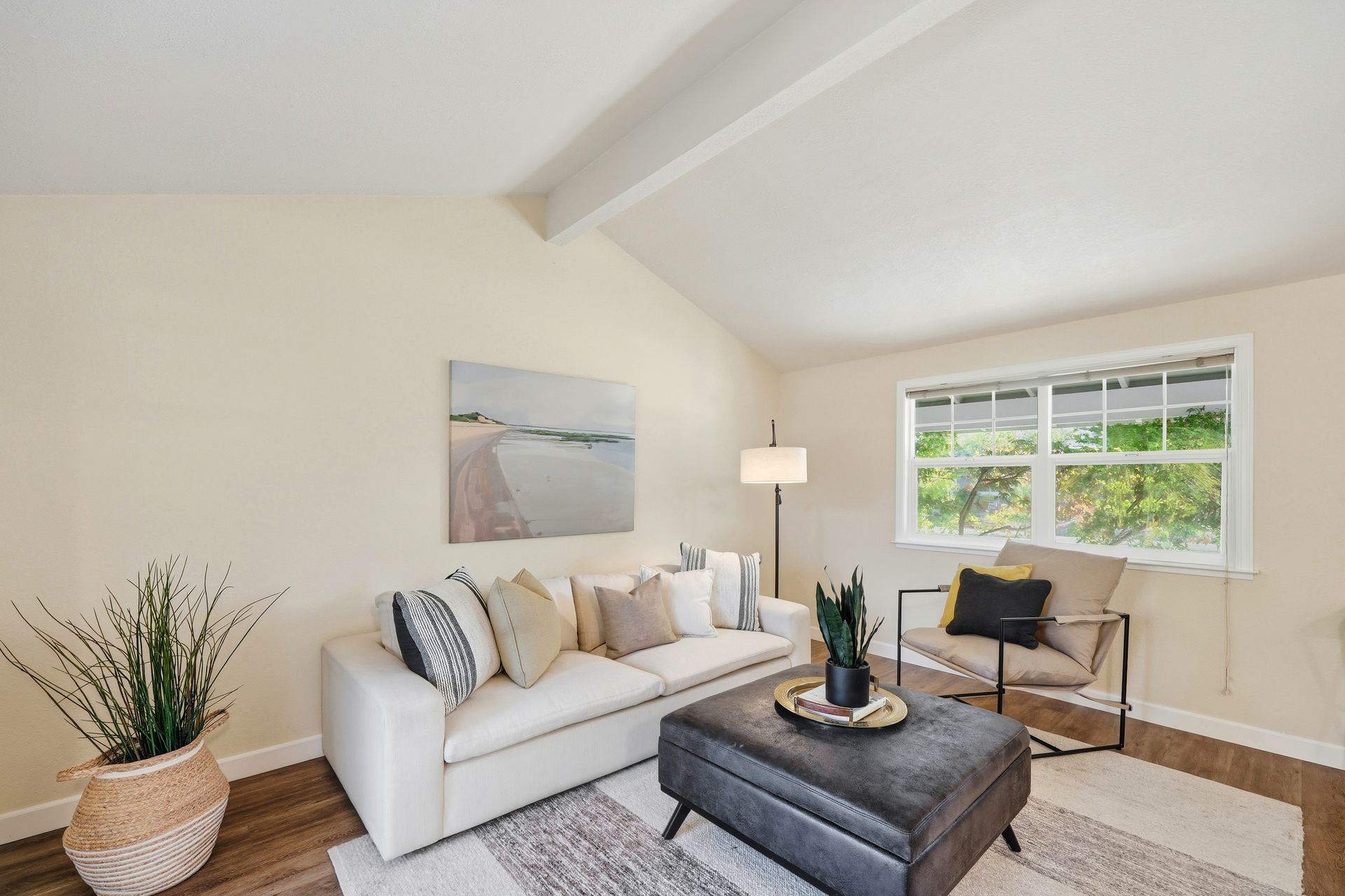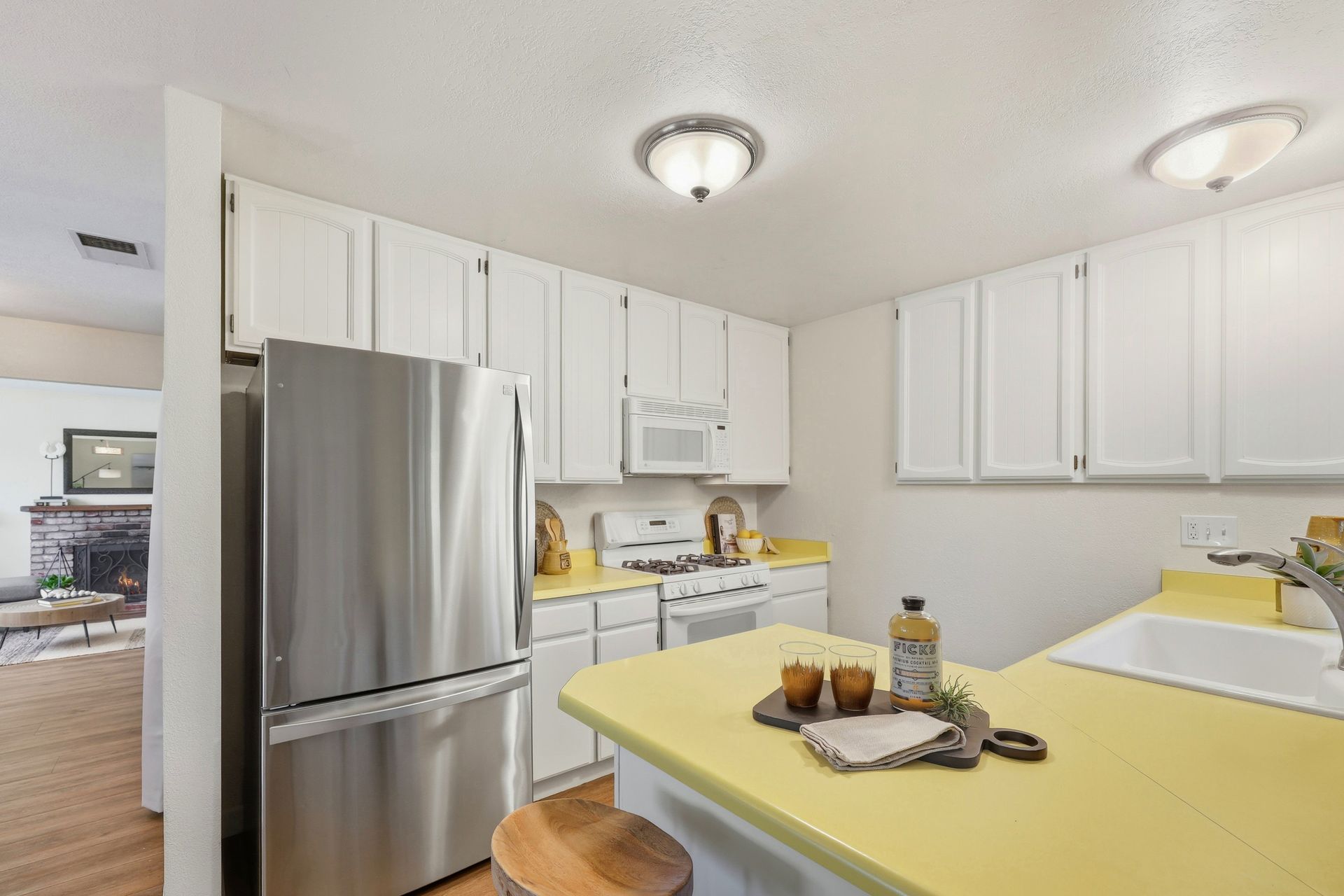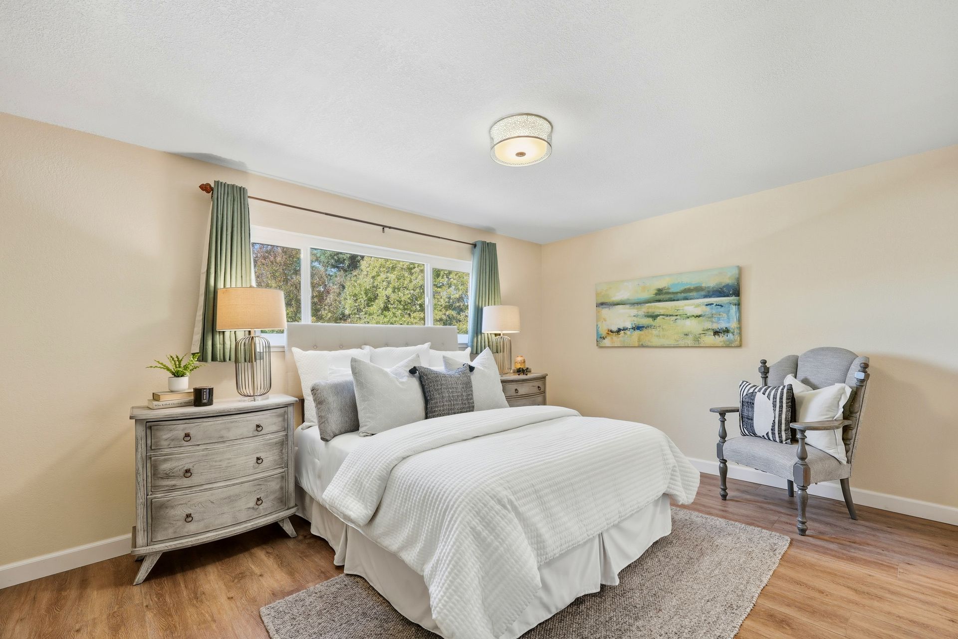 Welcome home to this inviting single-story residence offering 1,408± square feet of comfortable livable space with three bedrooms and two full baths. The light-filled living room features a wood-burning fireplace, ideal for cozy evenings, while the kitchen opens to a casual family room that flows effortlessly to the backyard. A large sliding door leads to a spacious and private backyard nicely hardscaped to provide areas for dining, gardening, and relaxing in the hot tub. Recent upgrades enhance both style and comfort, including wide-plank high-quality COREtec flooring, Milgard dual-pane windows, fresh exterior paint, and a newer furnace and air conditioning system. Both bathrooms have been tastefully refreshed with newer vanities and paint. Additional features include a two-car garage and newer concrete driveway, offering convenience and curb appeal.
