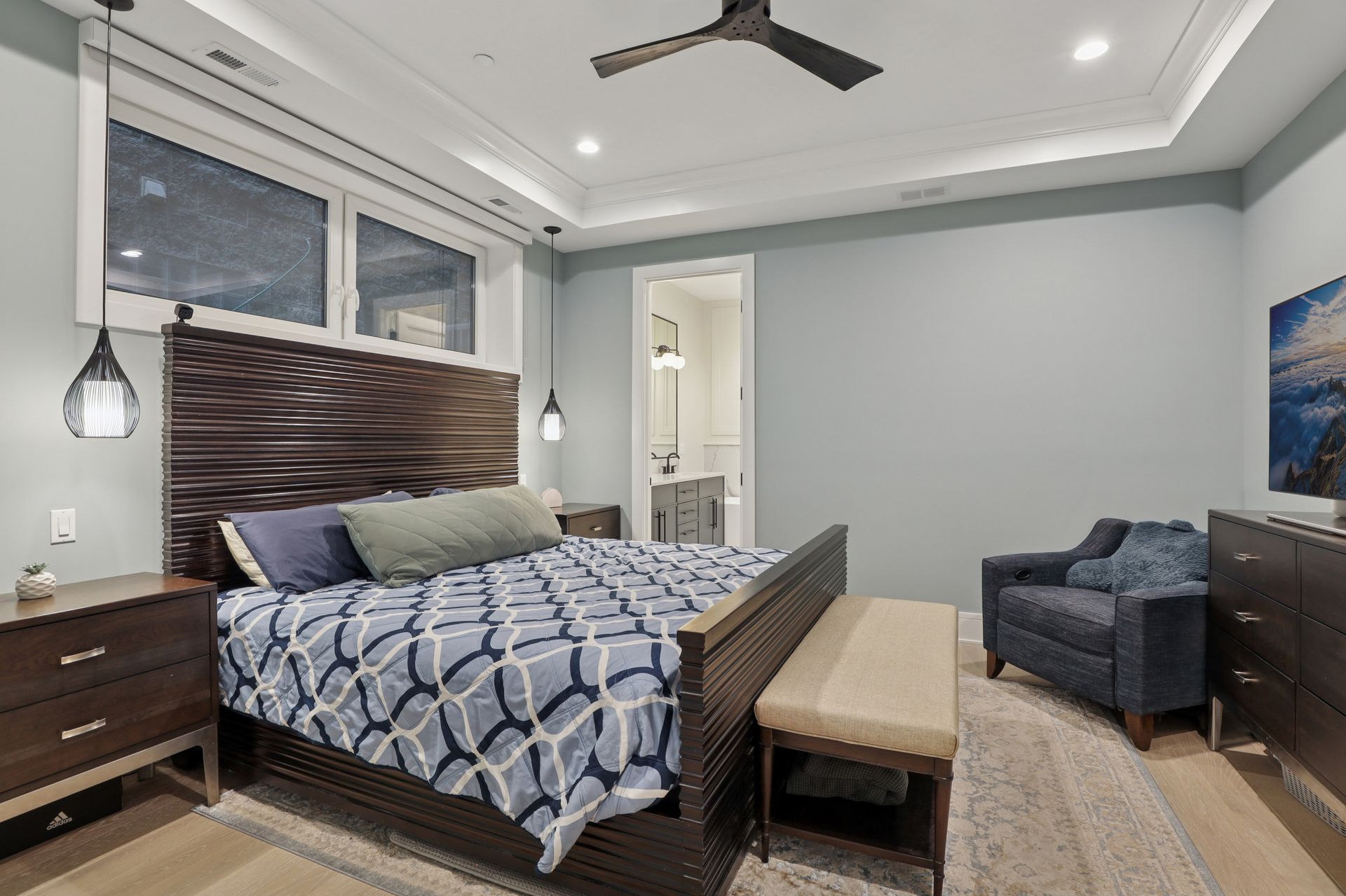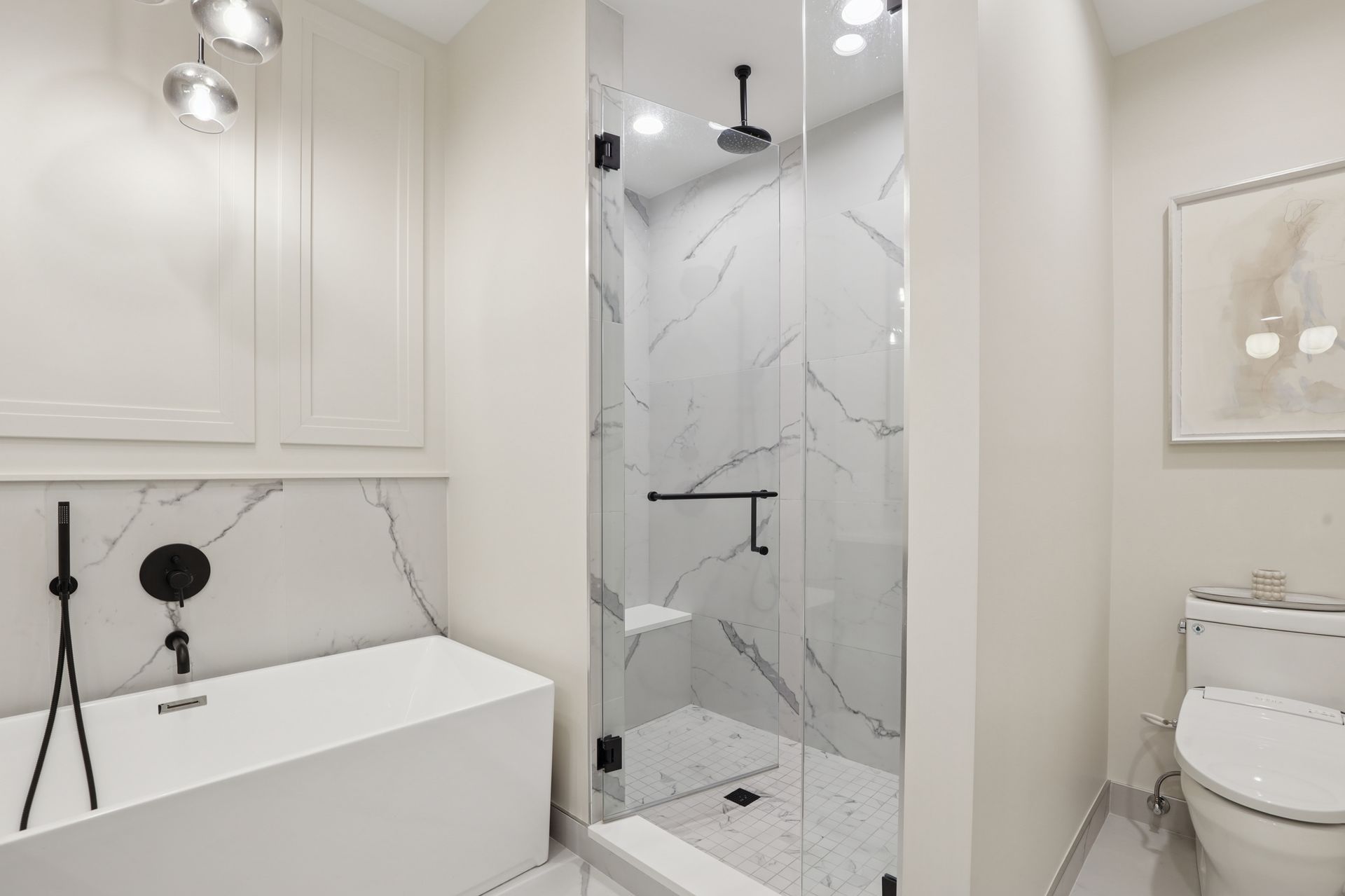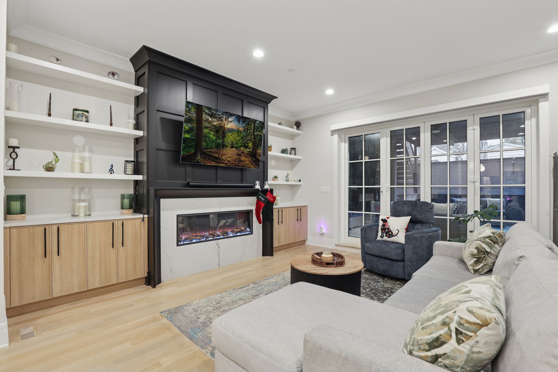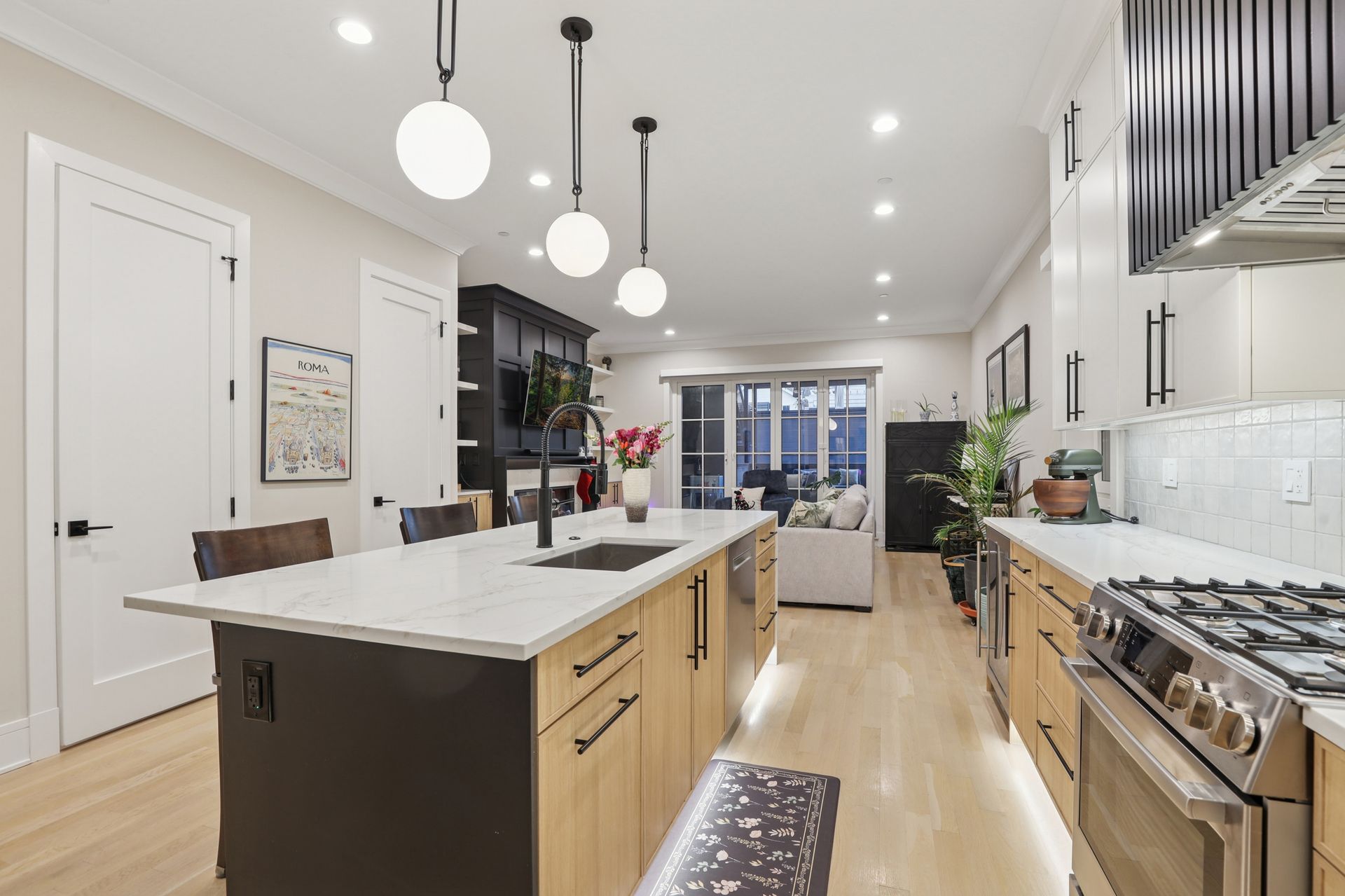 Gorgeous Roscoe Village Duplex Down with Four Bedrooms! Professionally designed with top-of-the-line finishes and exceptional attention to detail, with amazing craftsmanship. Enjoy the chef's kitchen with contemporary cabinets, quartz countertops, a large island, and stainless steel appliances, including a beverage center. Relax in the beautiful family room off the kitchen with custom built-in bookcases and a gorgeous fireplace. Family room leads to a private, covered terrace with a ceiling fan and 10-foot folding windows/doors. Perfect space for grilling and entertaining! Many luxury finishes, such as eight-foot doors, seven-inch wide-plank flooring, and custom-powered shades with a remote. Live your best life in the lower level with high ceilings and radiant heat, with four bedrooms and two baths. It boasts a spa-like primary suite with an enormous walk-in closet. The impressive primary bath has a double vanity, separate shower and free-standing soaking tub, with stunning designer tiles and light fixtures. This home has an amazing outdoor space that leads to a terrace from the family room, back deck and private garage roof deck. Garage parking is included in the price. Everything you are looking for is in the heart of Roscoe Village. Walk to the el, grocery stores, boutiques and amazing restaurants.