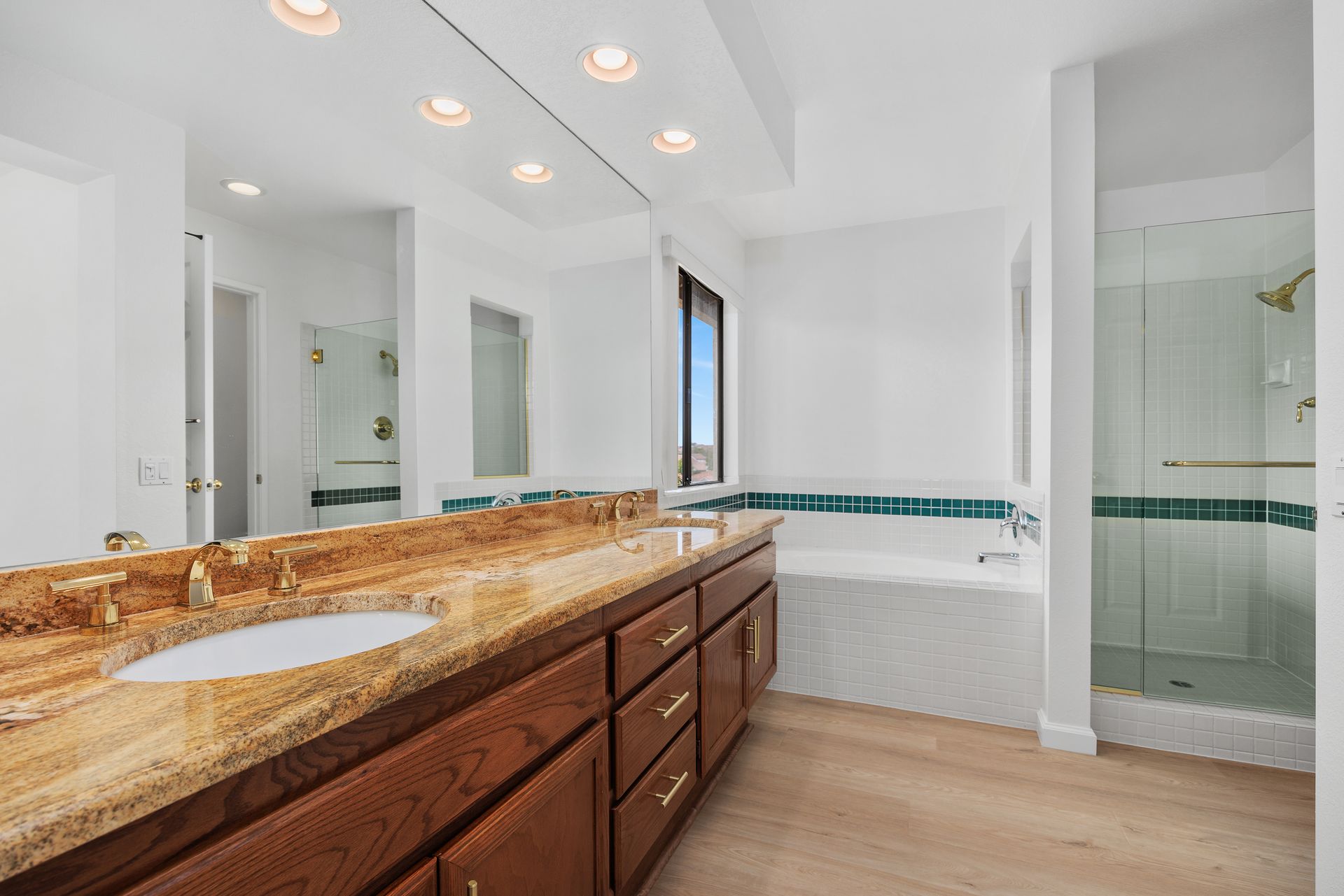 Upstairs, the primary suite showcases southwest-facing views, a walk-in closet, dual sinks, a soaking tub, and a separate shower. The secondary bedrooms are generously sized, many capturing the same beautiful expansive outlooks.