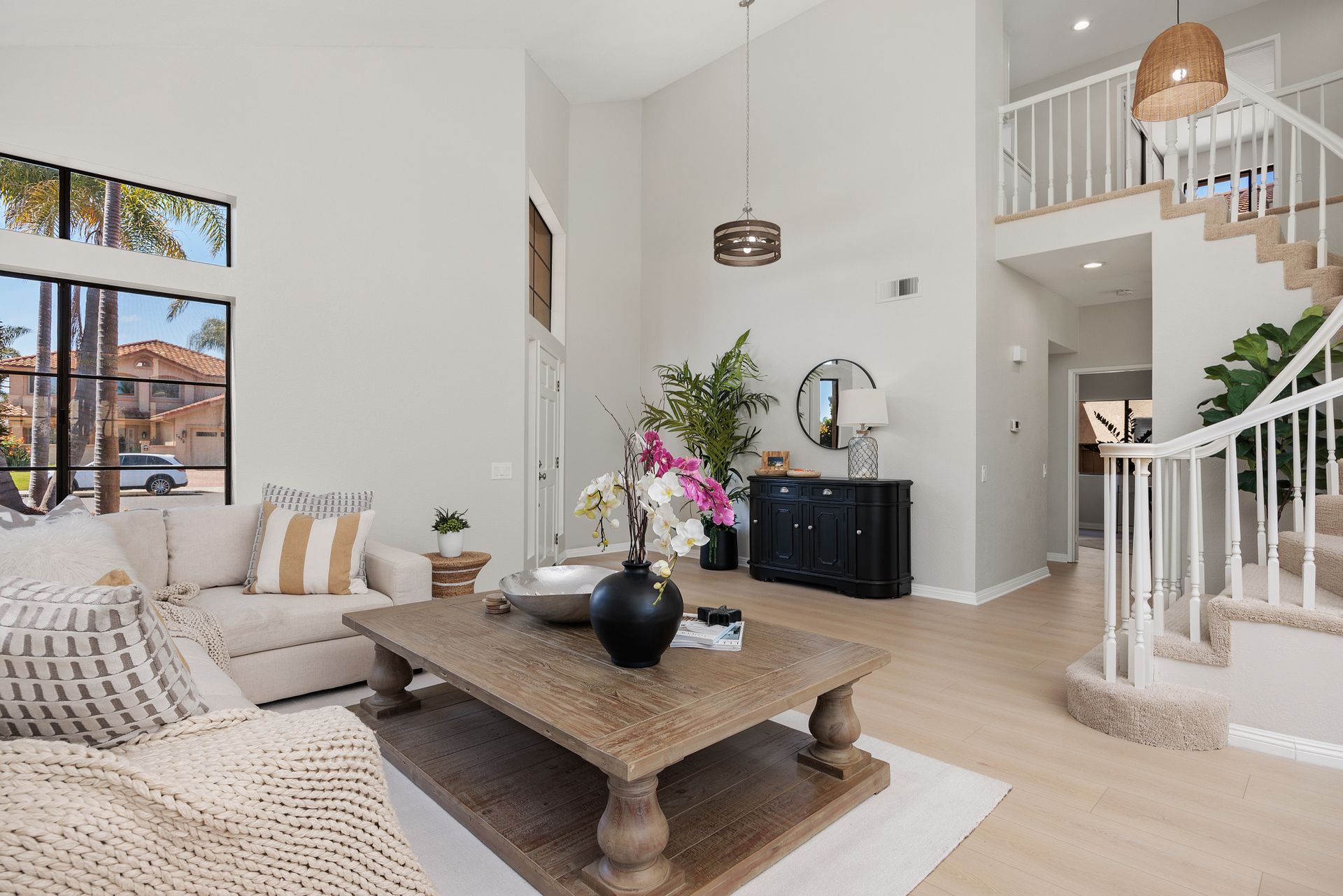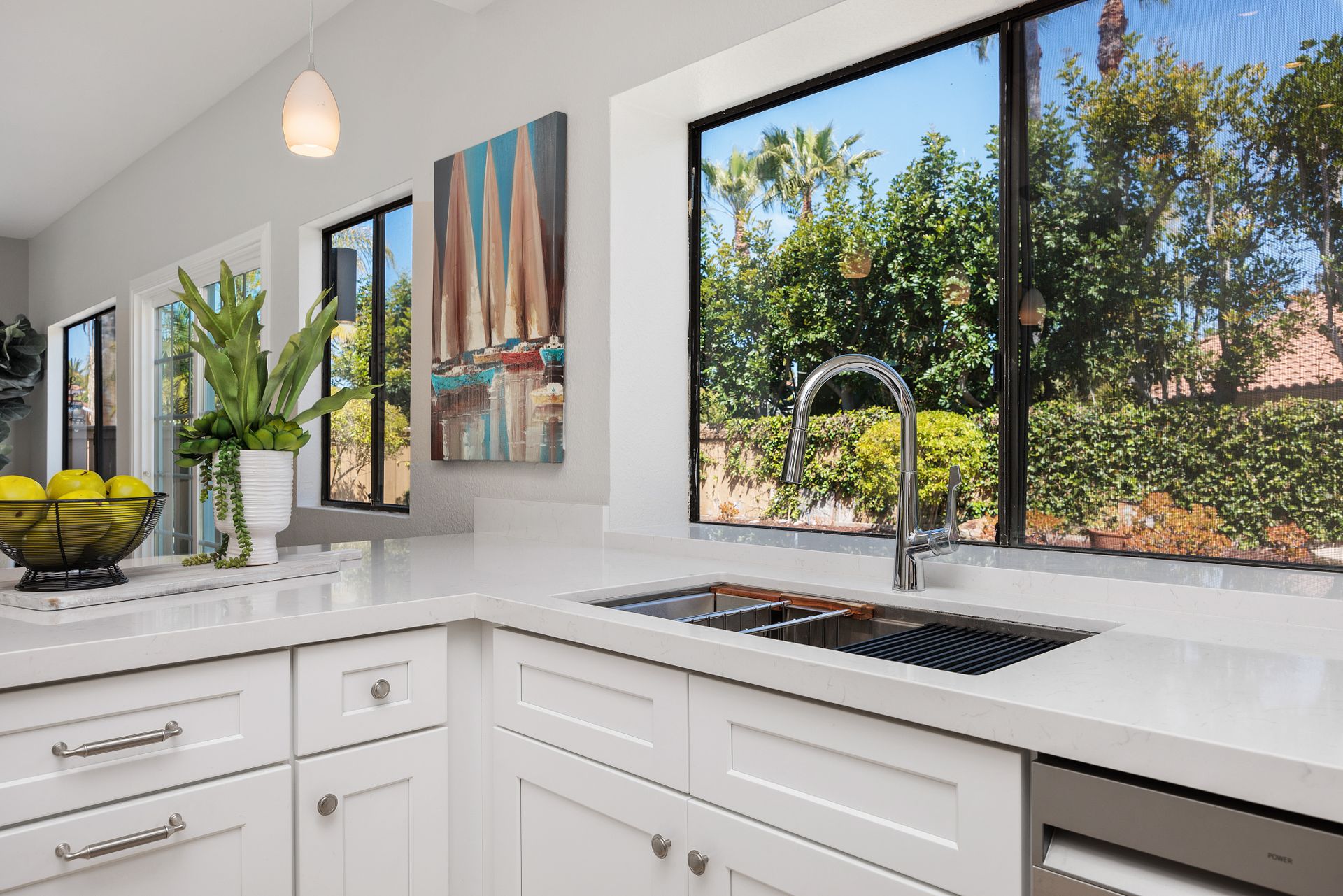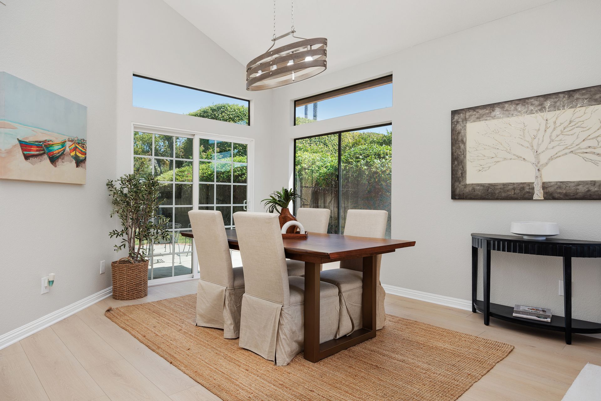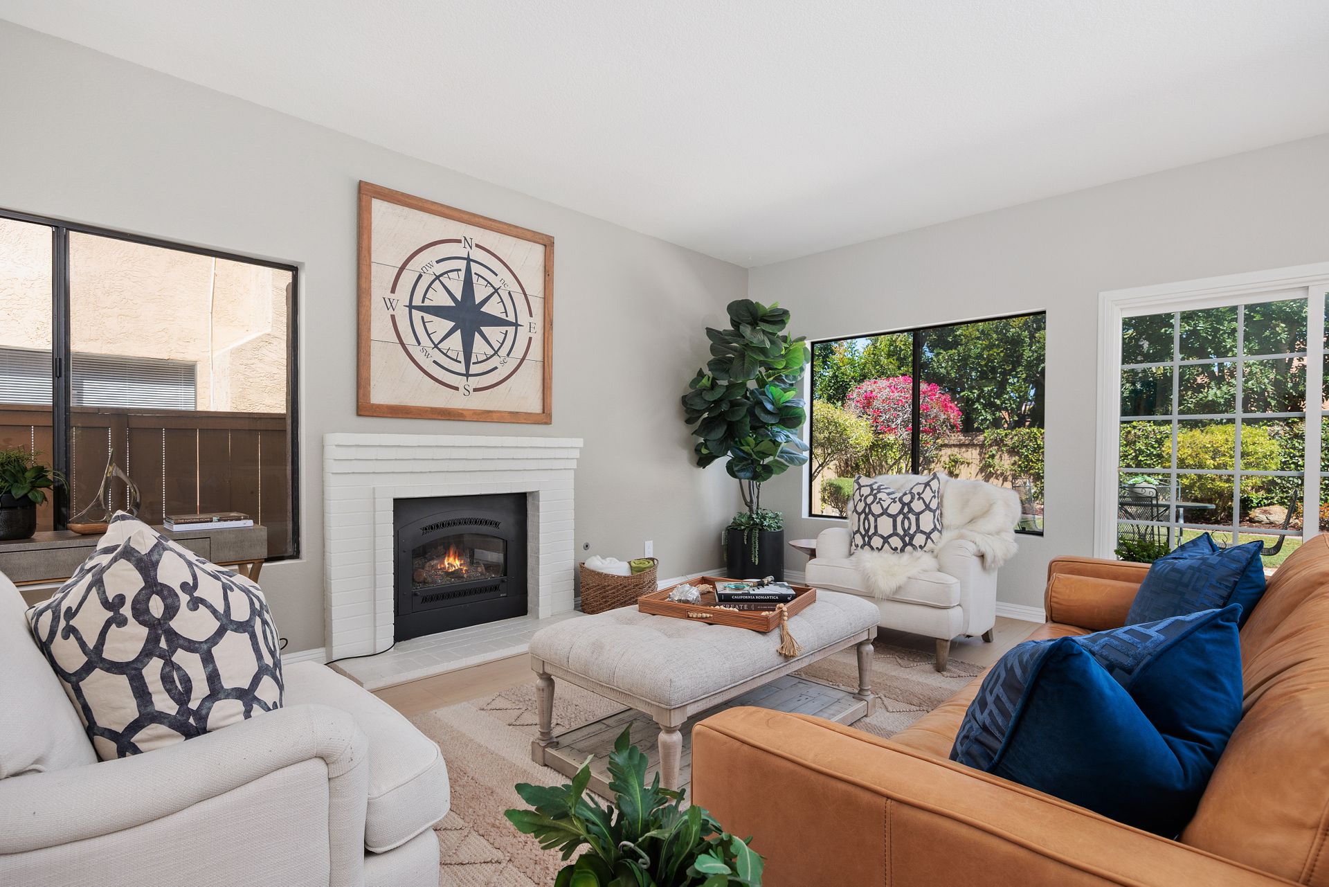 Stunning coastal-chic style shines in this newly updated Chateau del Norte home! The remodeled kitchen features newer sleek white slab counters, newer cabinetry with soft close feature, appliances and designer lighting. A breakfast bar with pendant lights opens seamlessly to the spacious family room, where a cozy fireplace creates an inviting focal point.