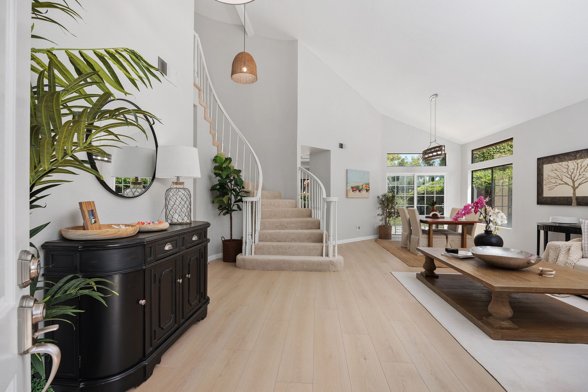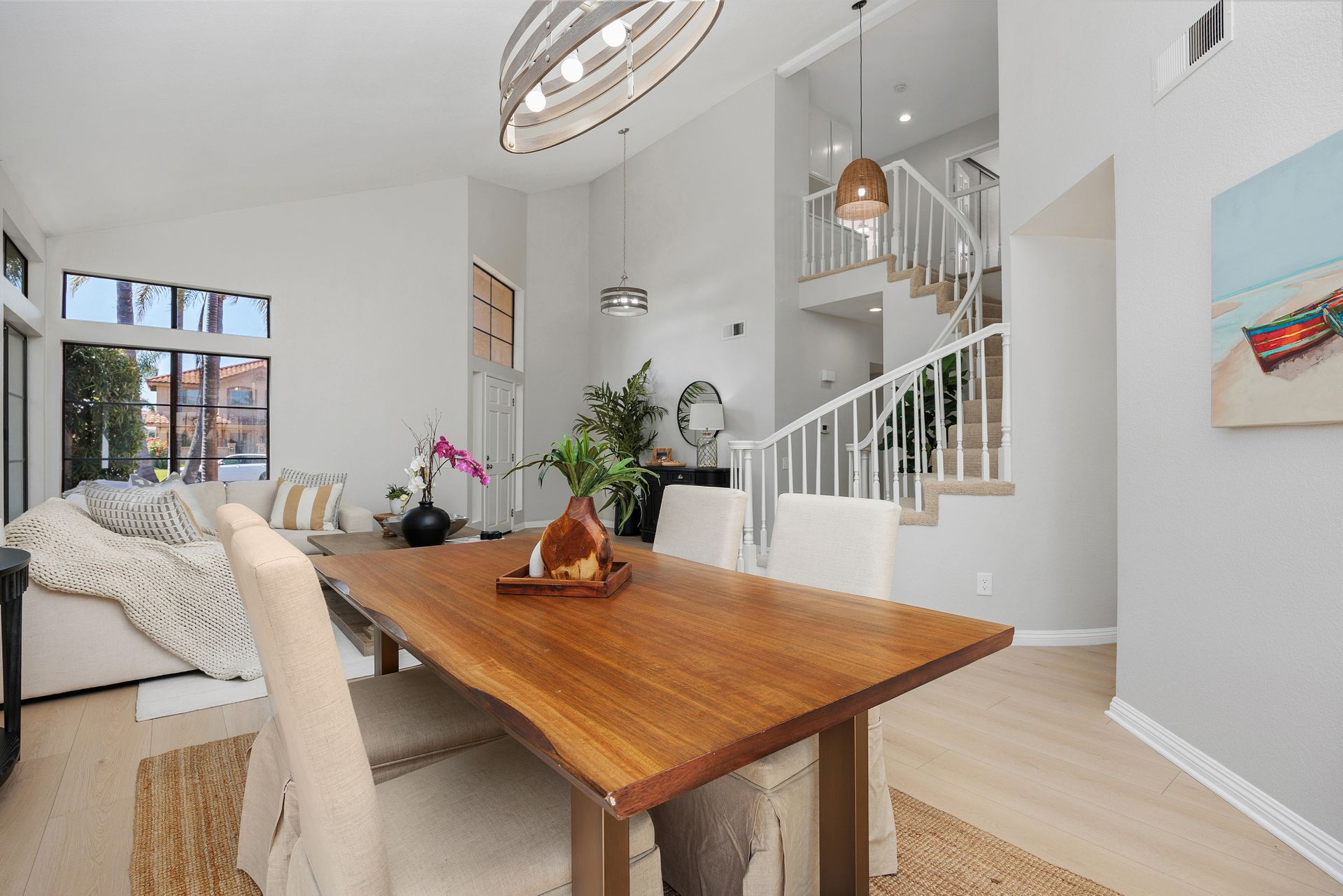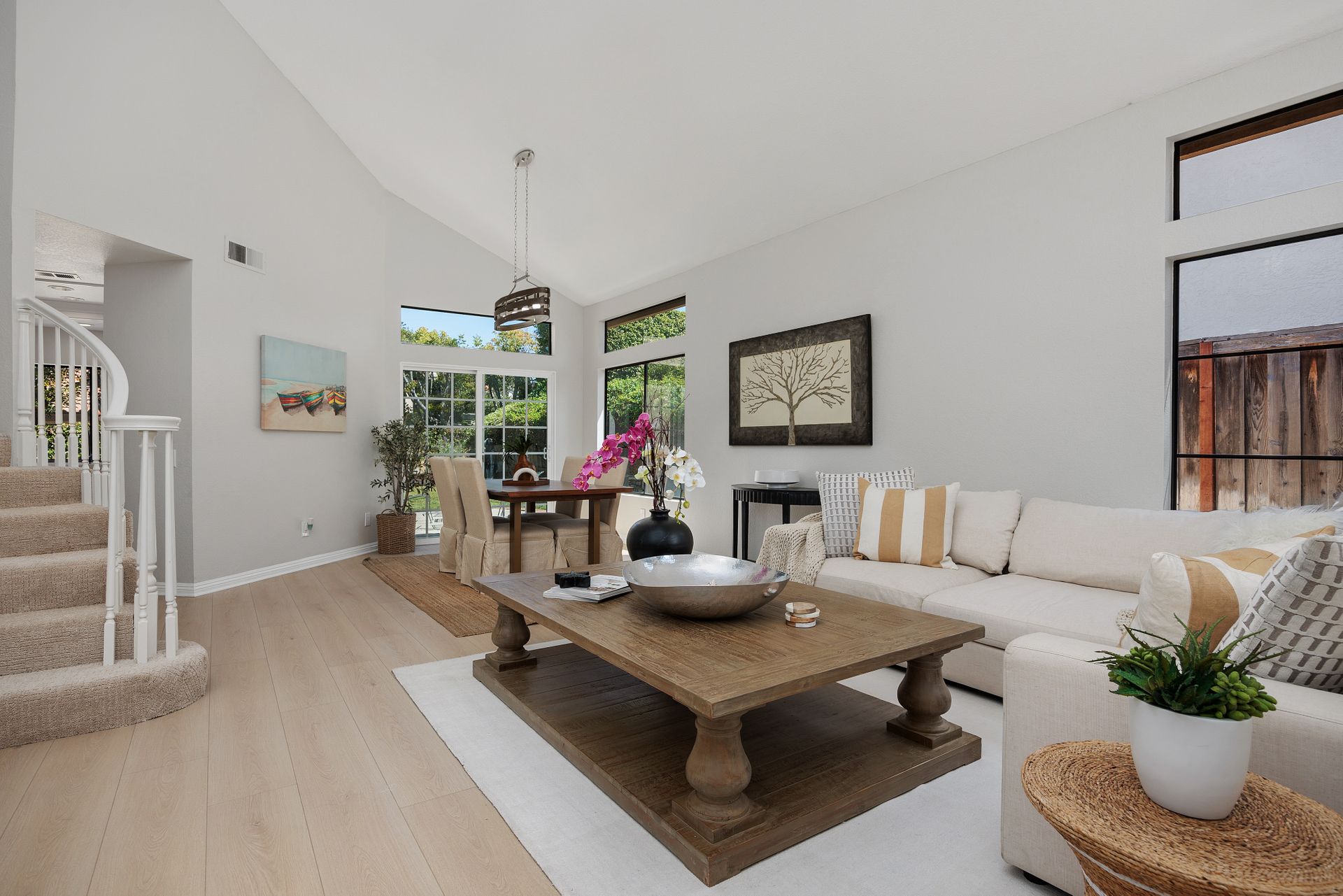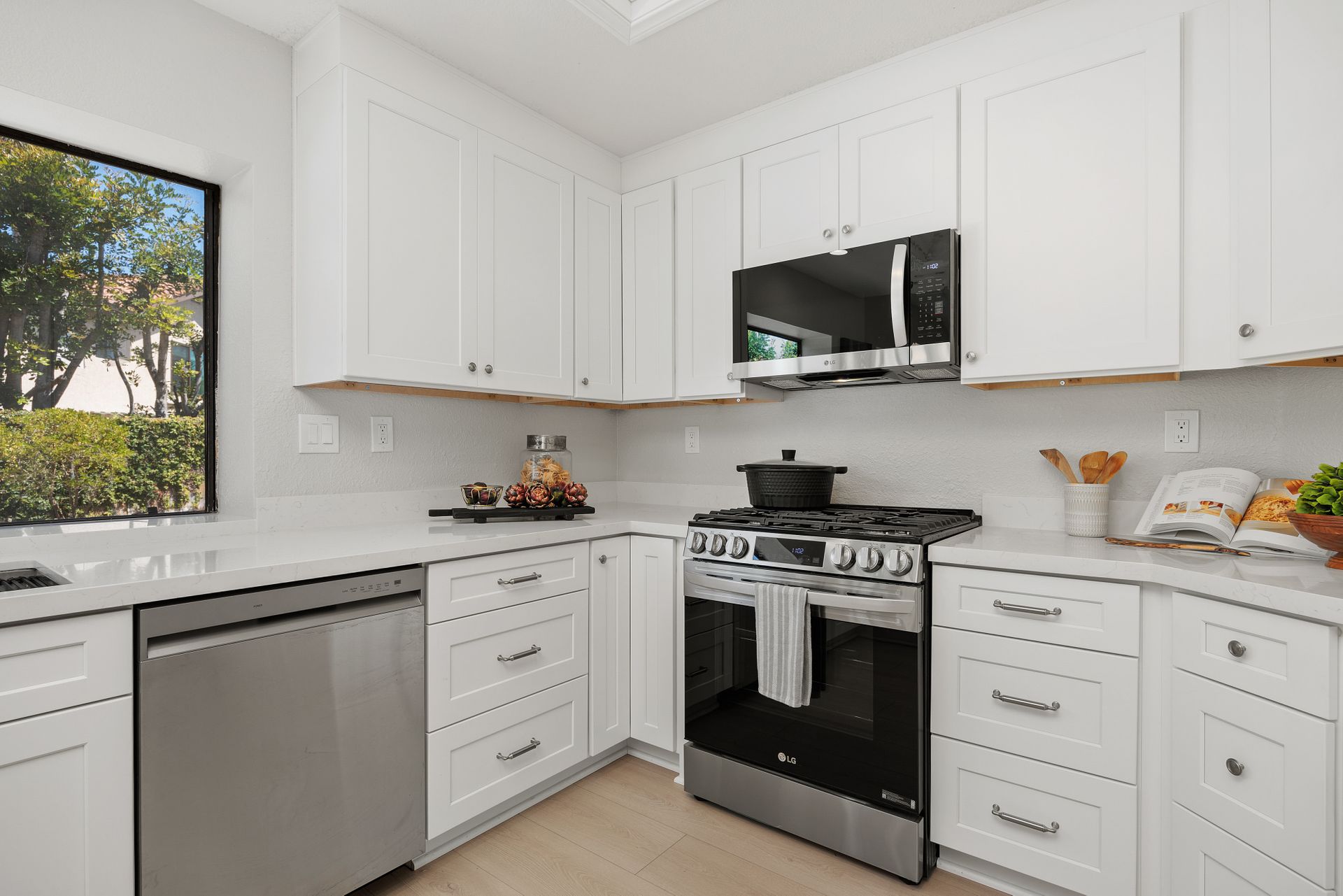 Stunning coastal-chic style shines in this newly updated Chateau del Norte home! The remodeled kitchen features newer sleek white slab counters, newer cabinetry with soft close feature, appliances and designer lighting. A breakfast bar with pendant lights opens seamlessly to the spacious family room, where a cozy fireplace creates an inviting focal point.