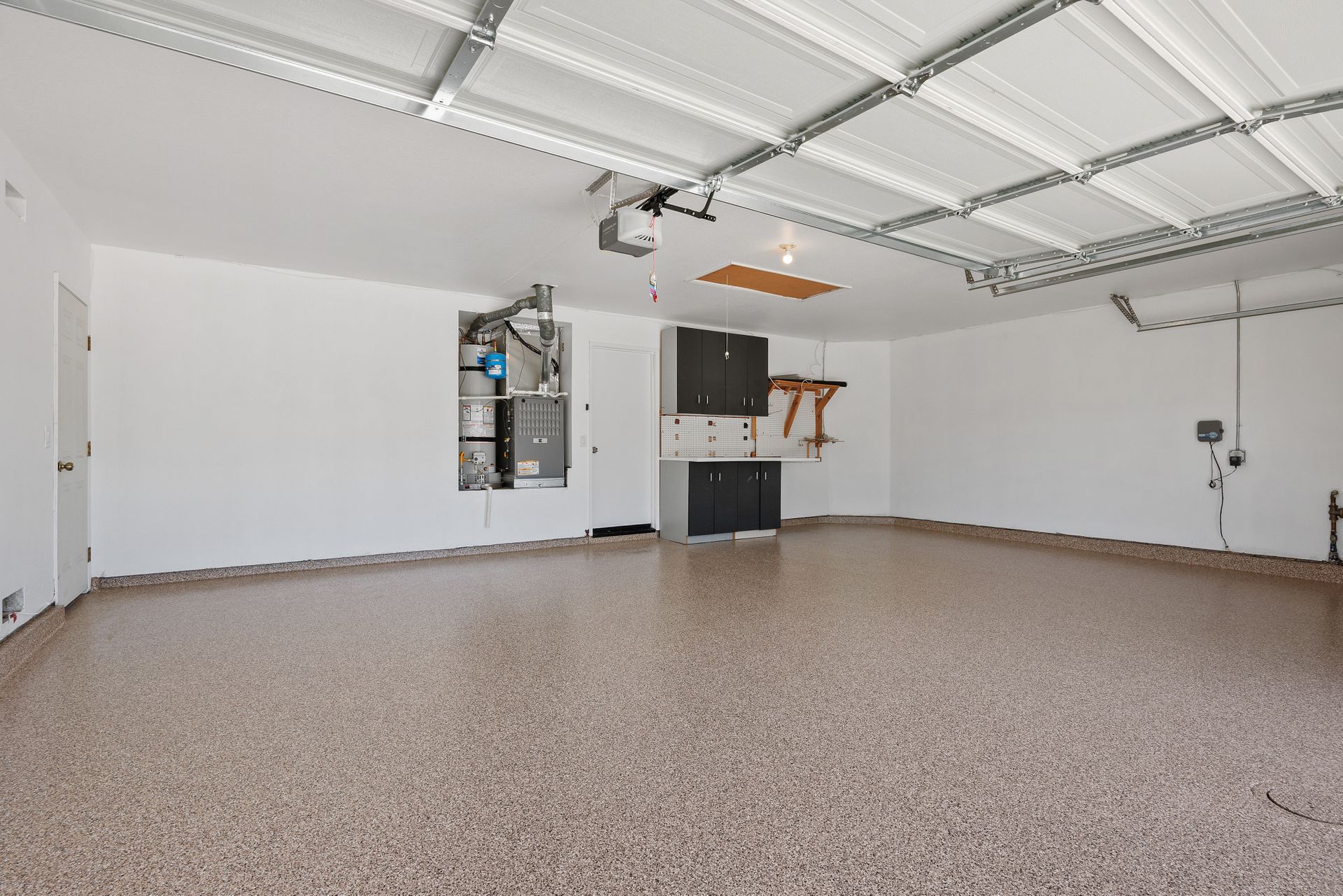 Additional upgrades include AC, a freshly painted interior in soft, modern neutrals, newer lighting throughout, newer garage doors and a finished three-car garage with epoxy floors and a workbench.