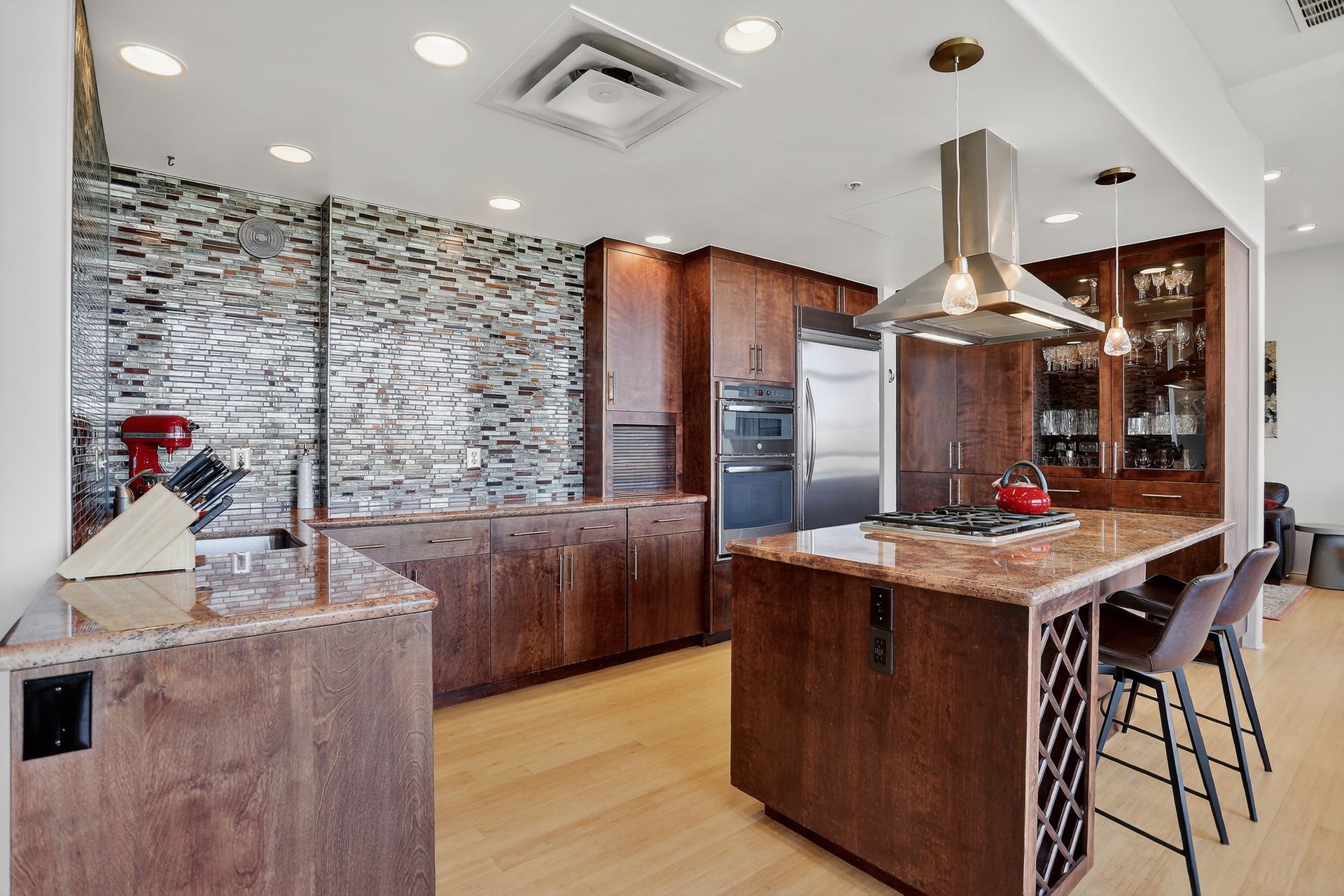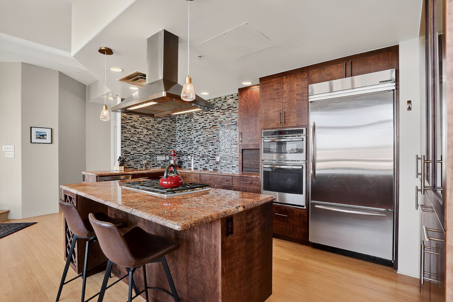 Inside, you'll find a gourmet kitchen outfitted with high-end stainless steel appliances, custom cabinetry, granite counters, and a generous eat-in island—perfect for casual mornings or entertaining guests. The open-concept layout flows seamlessly into the expansive living area, complete with a gas fireplace and private balcony for enjoying Colorado’s epic sunsets.