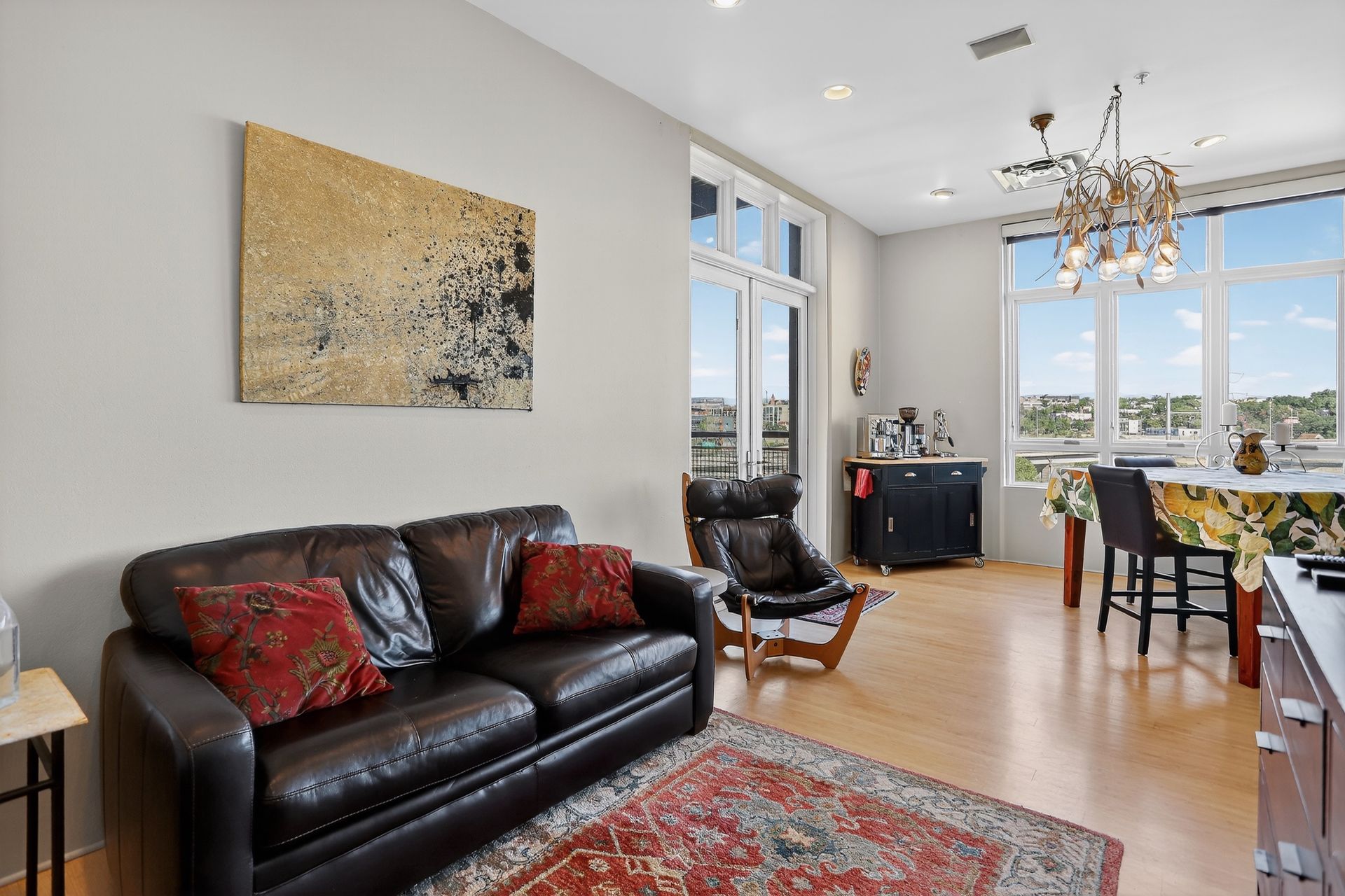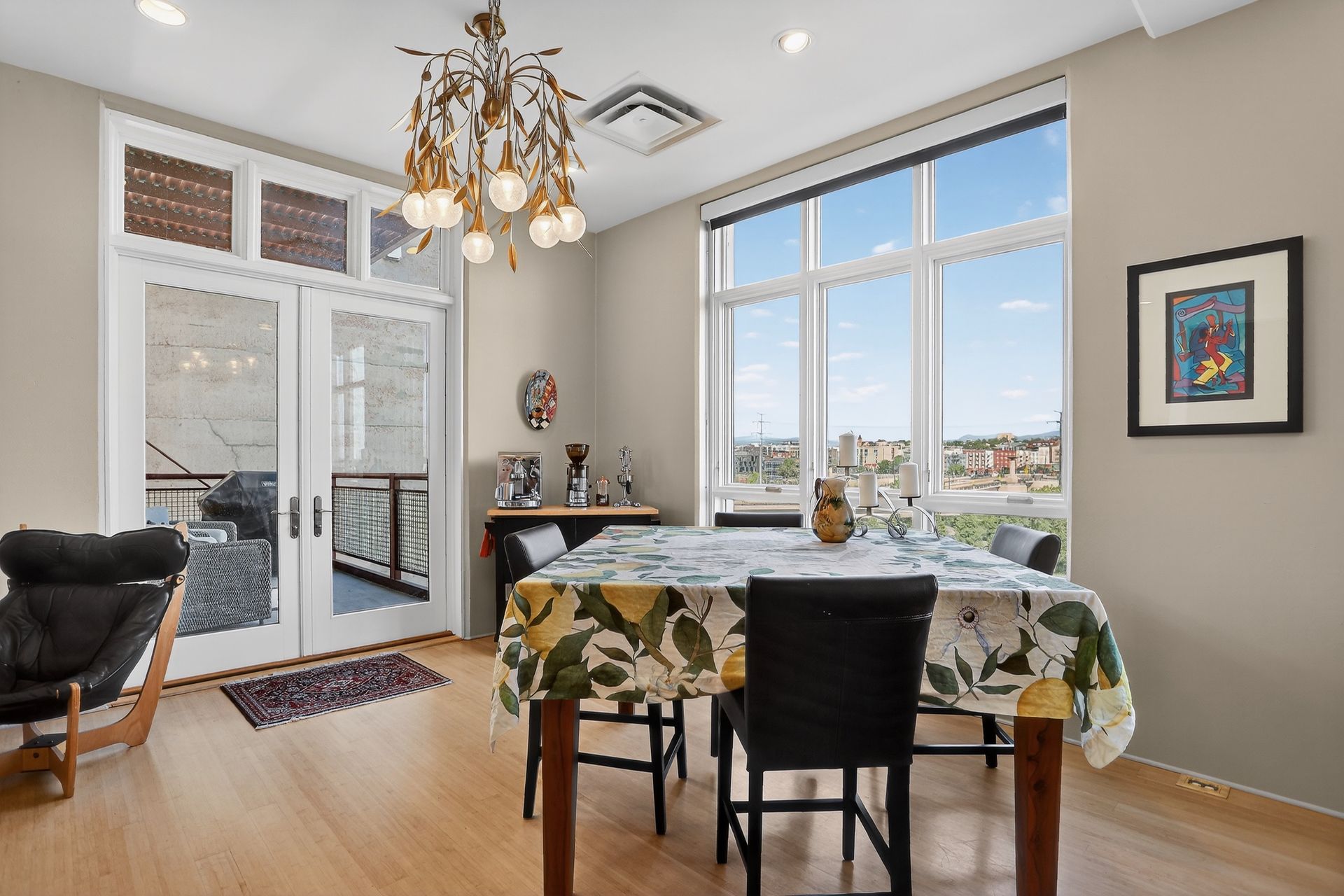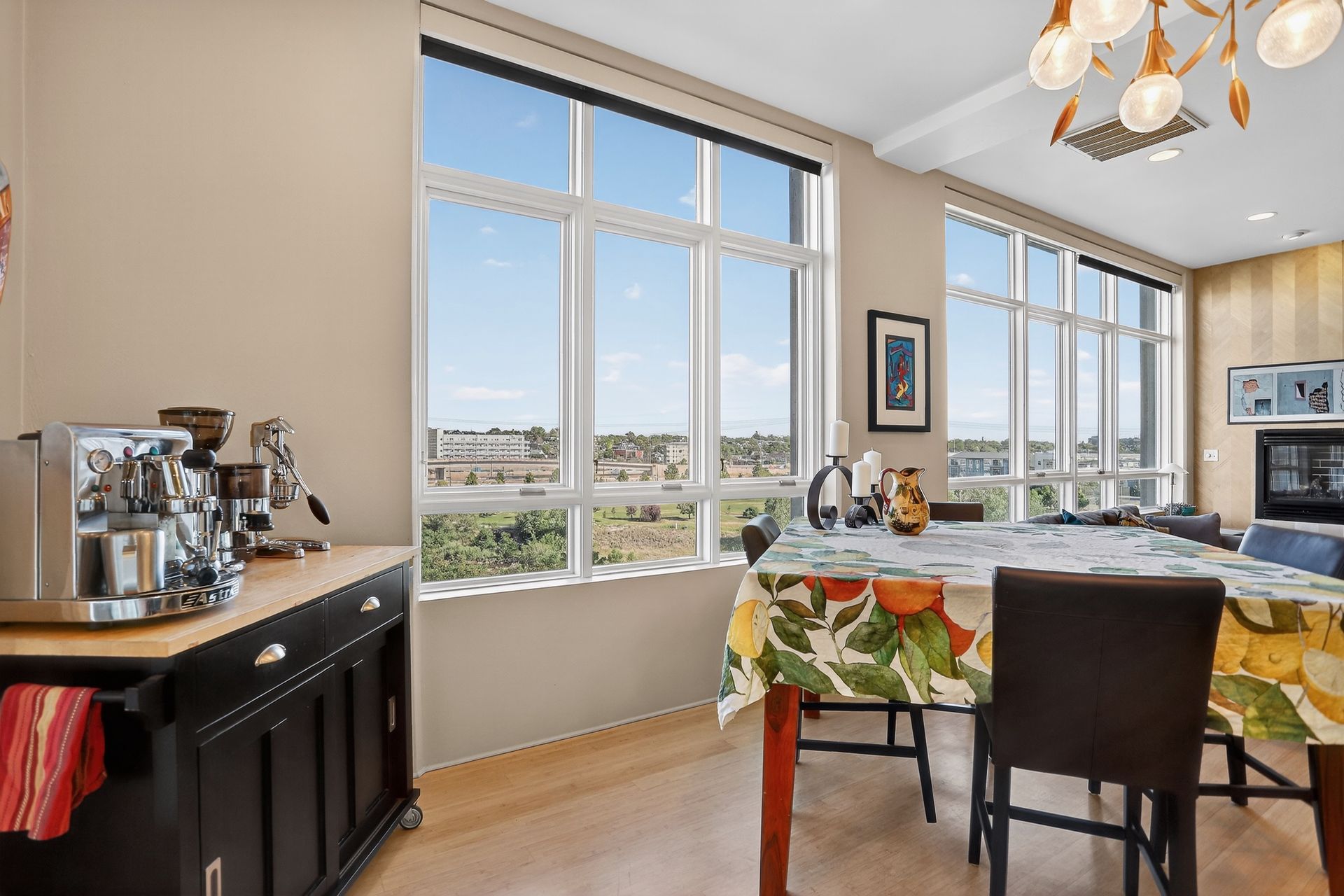 This northwest-facing 5th-floor loft offers unobstructed views of the Rocky Mountains and Cuernavaca Park, creating a truly rare and peaceful retreat in the heart of the city. With over 1,400 square feet of light-filled living space, soaring ceilings, and floor-to-ceiling windows, this home blends contemporary elegance with architectural integrity.