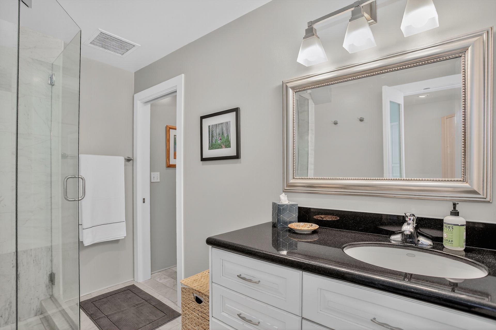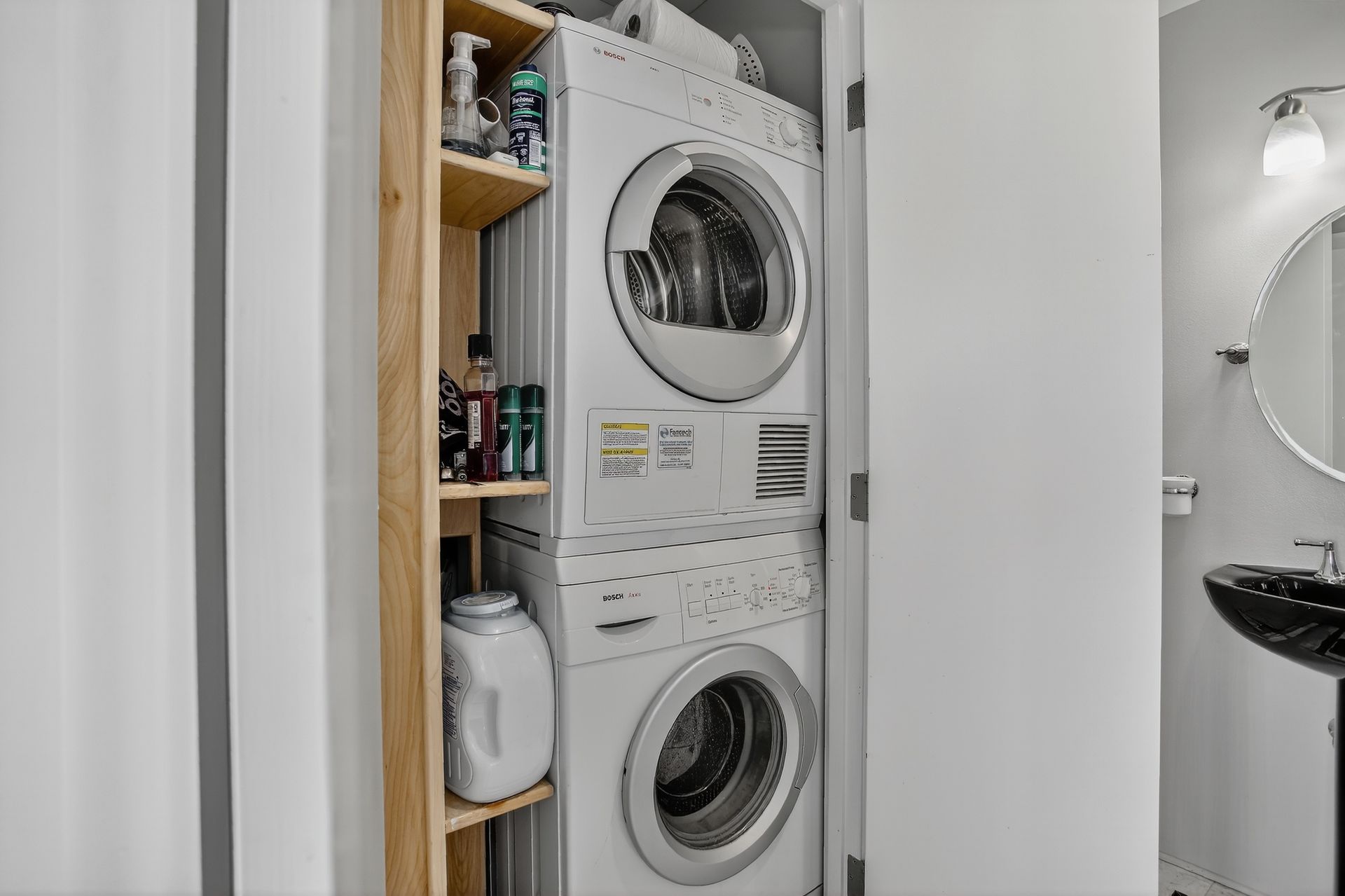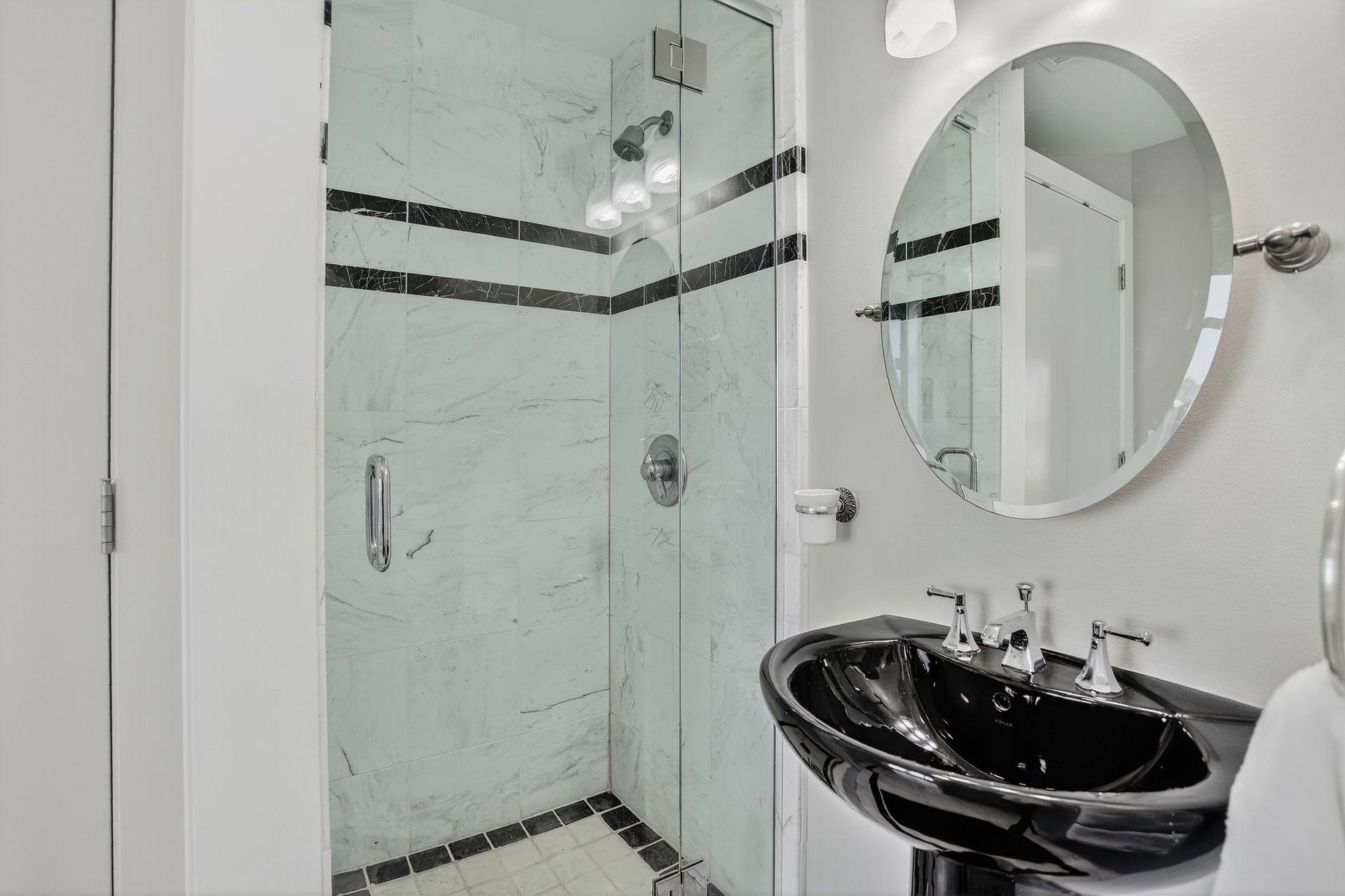 The primary suite functions as a true sanctuary, featuring an en-suite bath, ample closet space, and an attached flex area ideal for a home office or guest lounge. The second bedroom is non-conforming but offers exceptional versatility for a creative studio, library, or overnight visitors. Additional features include two assigned parking spaces, a storage unit, in-unit laundry, and smart upgrades like a Nest thermostat.