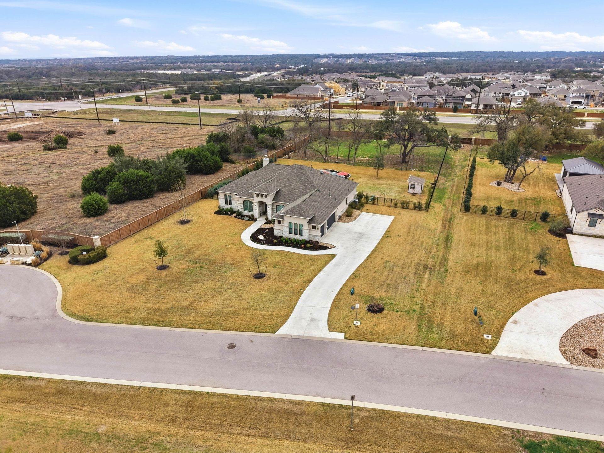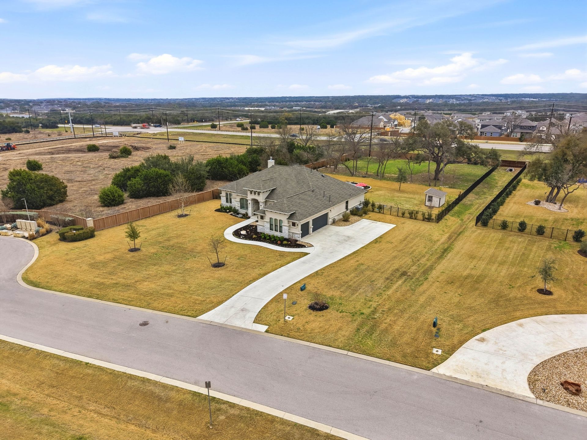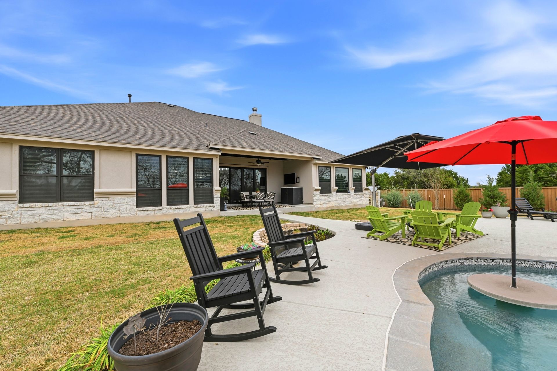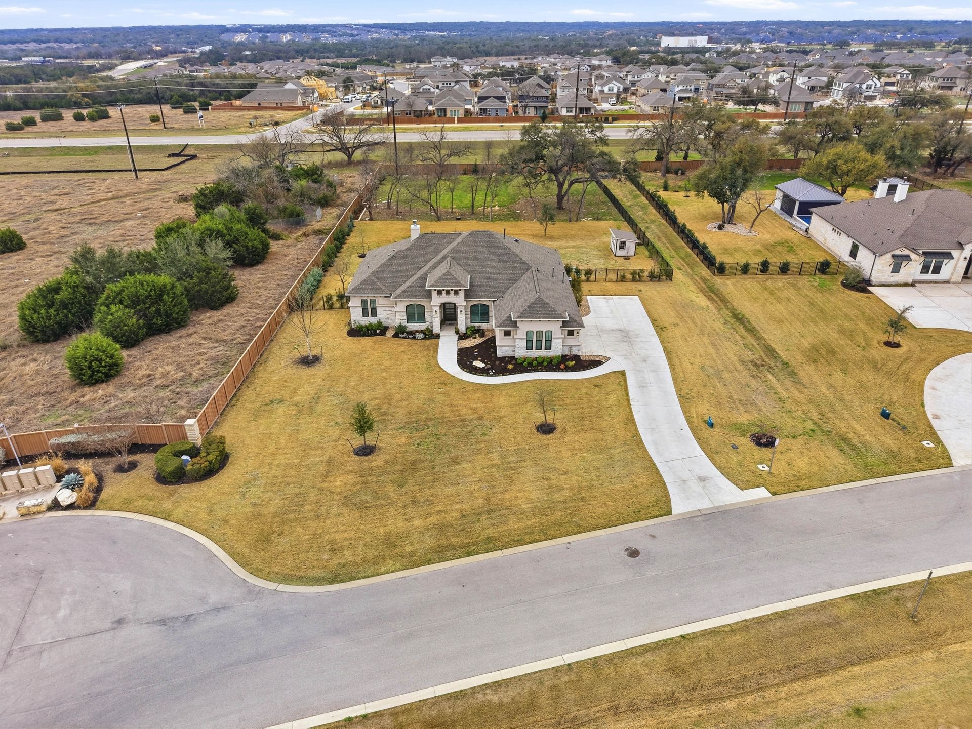 Welcome to this stunning custom-built four-bedroom, three-bathroom home in the highly sought-after Highland Village Subdivision, where timeless elegance meets everyday comfort. From the moment you enter, you’re greeted by soaring ceilings, rich architectural beams, and walls of windows that flood the home with natural light. The expansive layout offers both grandeur and warmth, creating the perfect setting for entertaining and relaxed living alike. The chef’s kitchen is truly the heart of the home, featuring double ovens, a gas cooktop, abundant floor-to-ceiling cabinetry, and stylish finishes all opening seamlessly to the impressive living area. A striking stone fireplace anchors the space, while exposed beams add character and charm you won’t find just anywhere. The spacious primary suite is a peaceful retreat with a beautifully designed ensuite bath, offering the perfect place to unwind at the end of the day. Three additional generously sized bedrooms provide flexibility for guests, a home office, or growing households. Venture outside and prepare to fall in love. Your private backyard oasis awaits...complete with a sparkling pool paradise, ideal for cooling off on warm Texas days or hosting unforgettable gatherings. The large, covered patio creates an inviting outdoor living space for year-round enjoyment. The perimeter of the lot is lined with plenty of trees for added privacy for the years to come. A convenient storage shed adds functionality without sacrificing beauty, and the large lot provides plenty of room to relax and play. This exceptional property blends luxury details, thoughtful design, and resort-style outdoor living all in one of the area’s most desirable neighborhoods.
