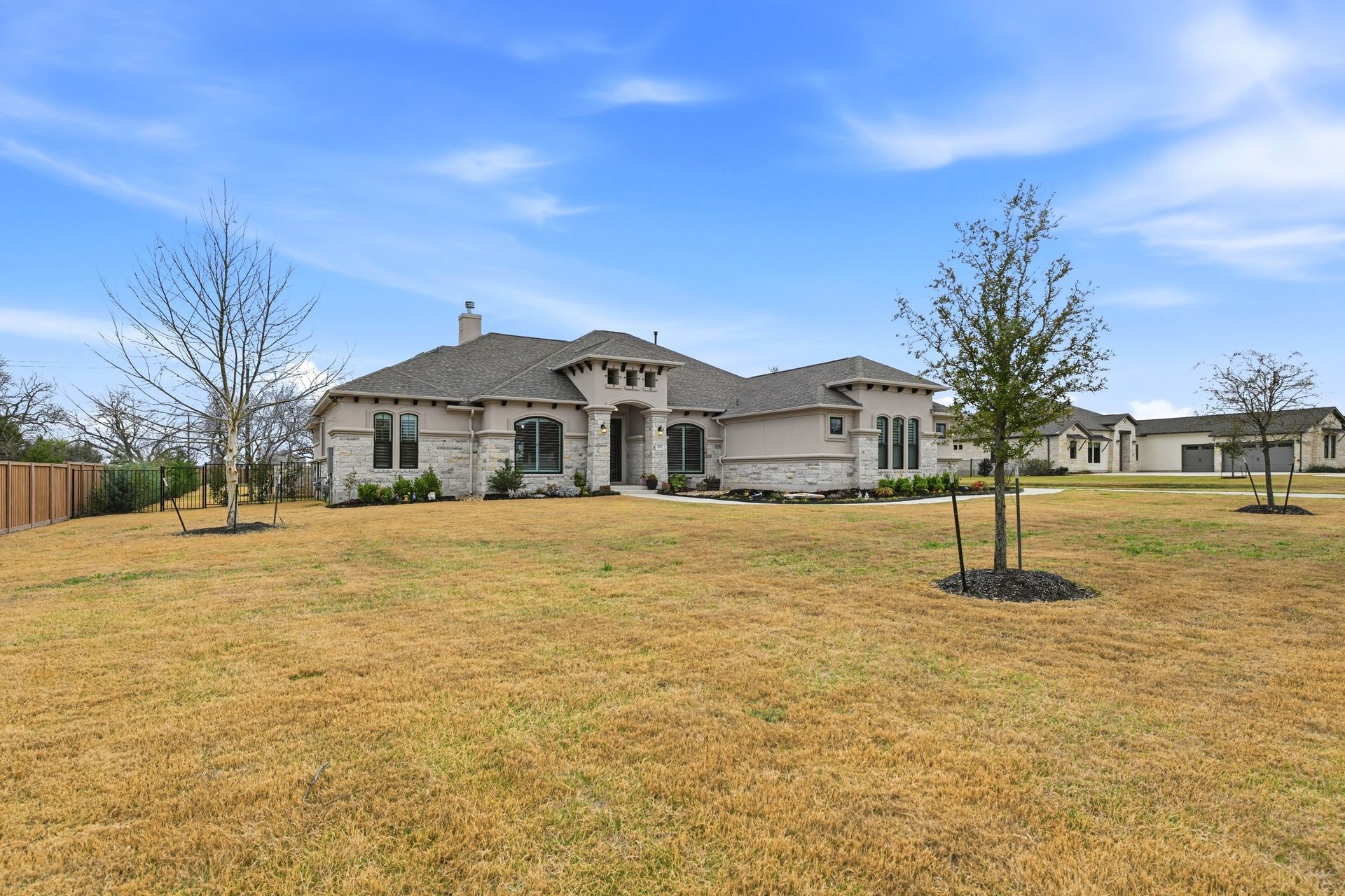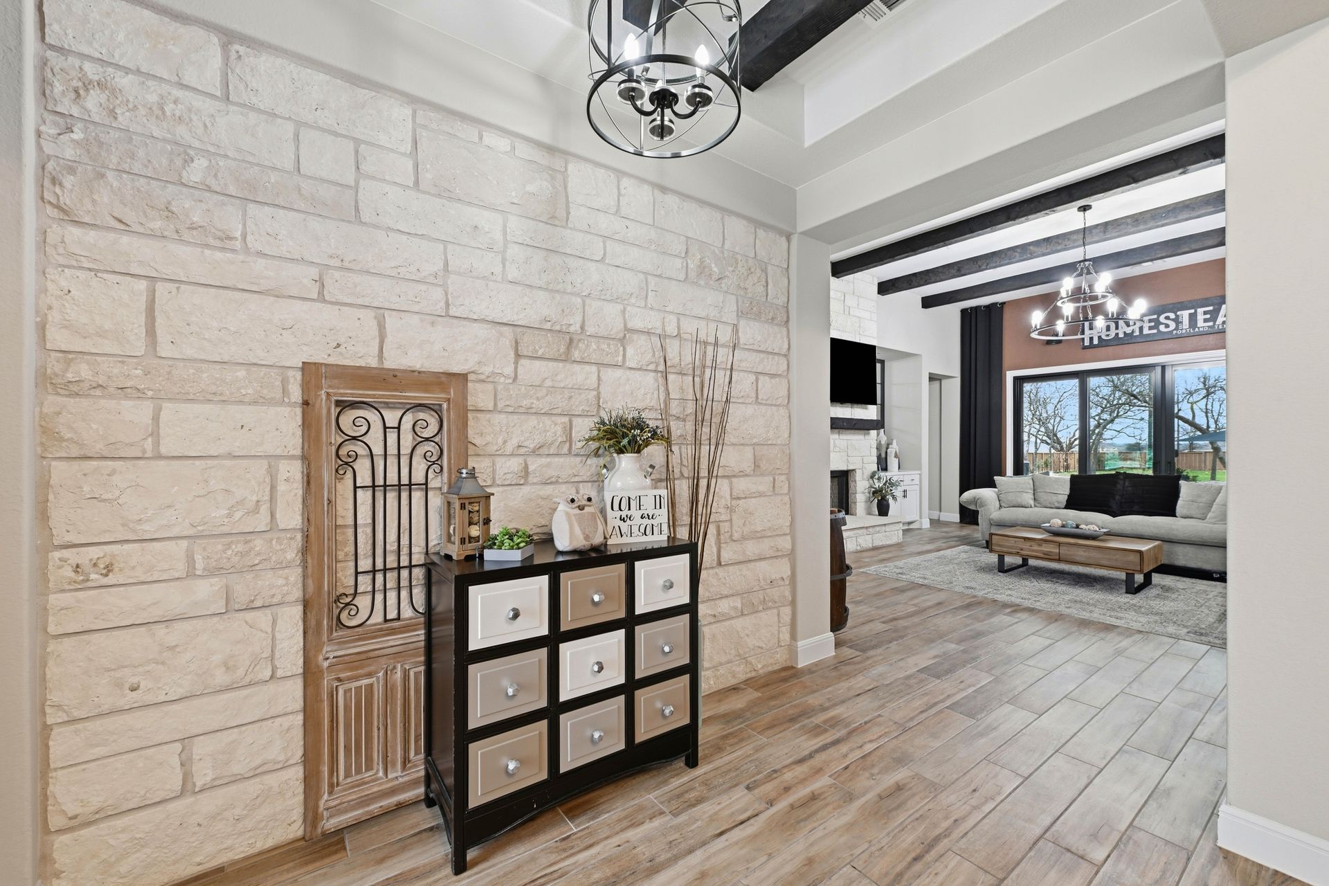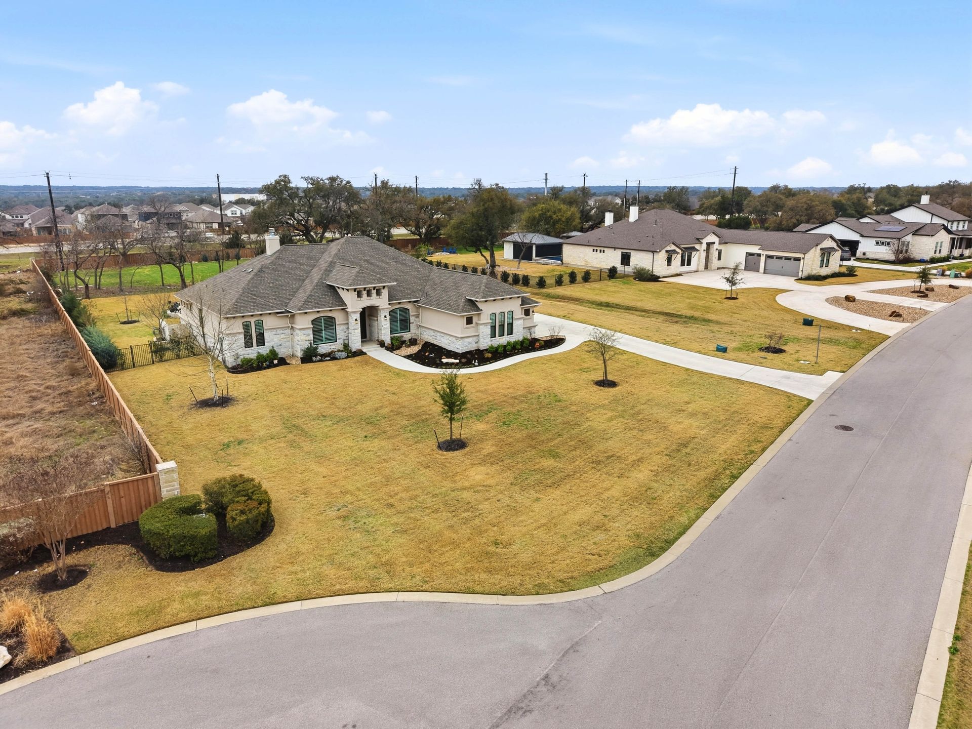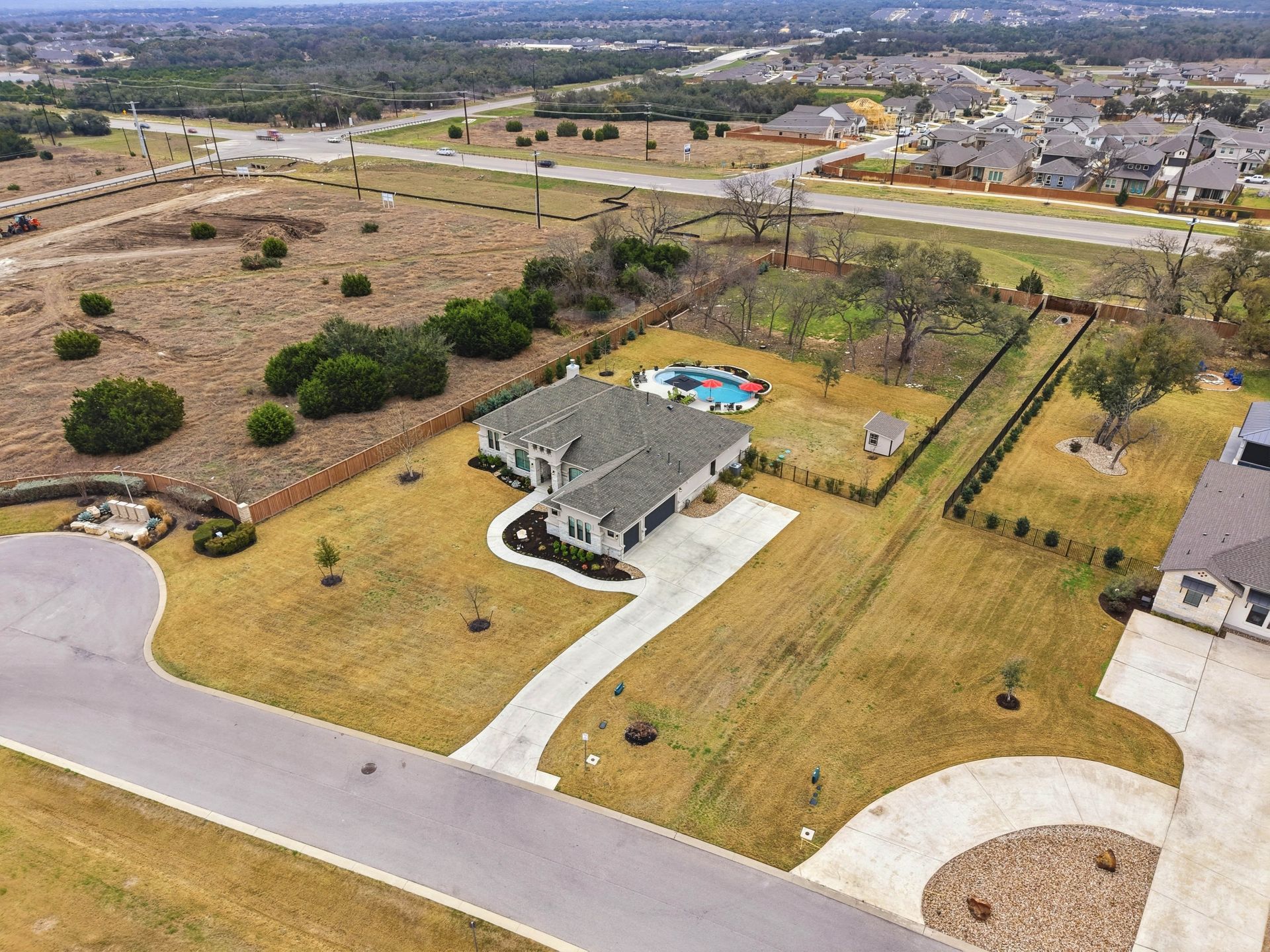 Welcome to this stunning custom-built four-bedroom, three-bathroom home in the highly sought-after Highland Village Subdivision, where timeless elegance meets everyday comfort. From the moment you enter, you’re greeted by soaring ceilings, rich architectural beams, and walls of windows that flood the home with natural light. The expansive layout offers both grandeur and warmth, creating the perfect setting for entertaining and relaxed living alike. The chef’s kitchen is truly the heart of the home, featuring double ovens, a gas cooktop, abundant floor-to-ceiling cabinetry, and stylish finishes all opening seamlessly to the impressive living area. A striking stone fireplace anchors the space, while exposed beams add character and charm you won’t find just anywhere. The spacious primary suite is a peaceful retreat with a beautifully designed ensuite bath, offering the perfect place to unwind at the end of the day. Three additional generously sized bedrooms provide flexibility for guests, a home office, or growing households. Venture outside and prepare to fall in love. Your private backyard oasis awaits...complete with a sparkling pool paradise, ideal for cooling off on warm Texas days or hosting unforgettable gatherings. The large, covered patio creates an inviting outdoor living space for year-round enjoyment. The perimeter of the lot is lined with plenty of trees for added privacy for the years to come. A convenient storage shed adds functionality without sacrificing beauty, and the large lot provides plenty of room to relax and play. This exceptional property blends luxury details, thoughtful design, and resort-style outdoor living all in one of the area’s most desirable neighborhoods.