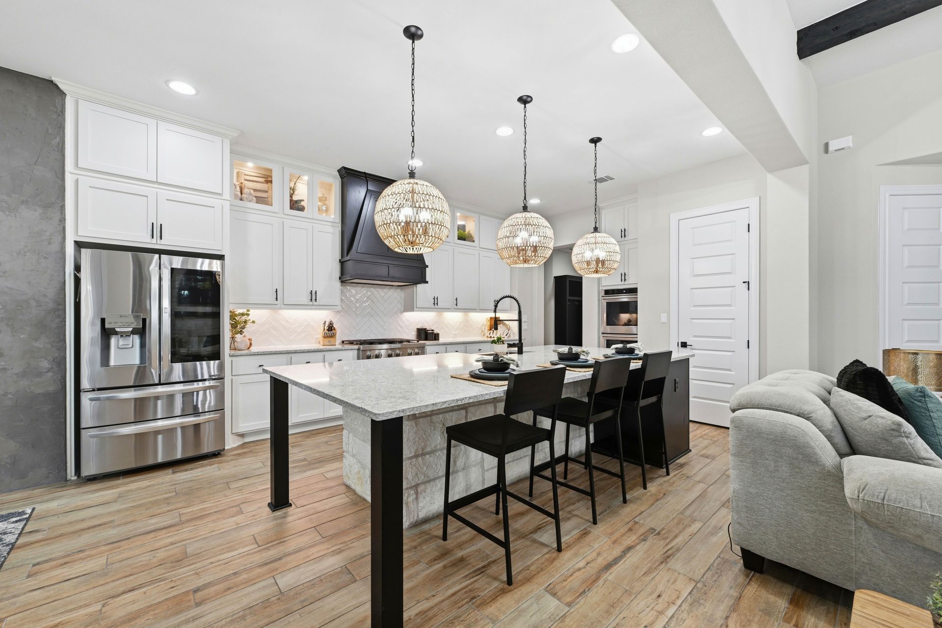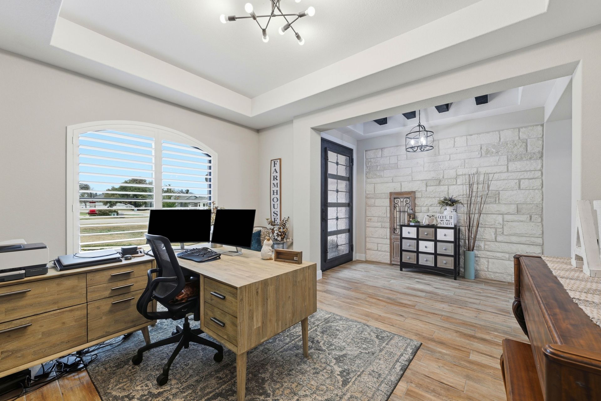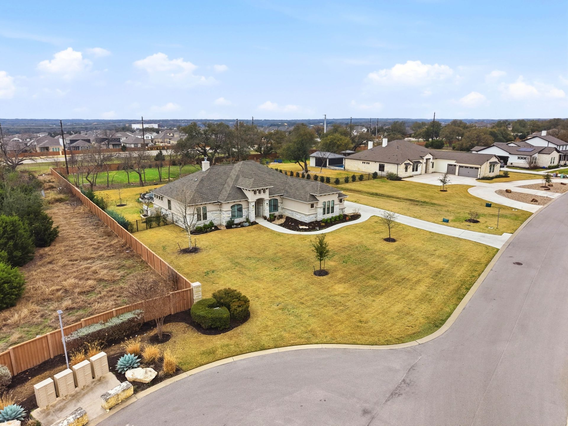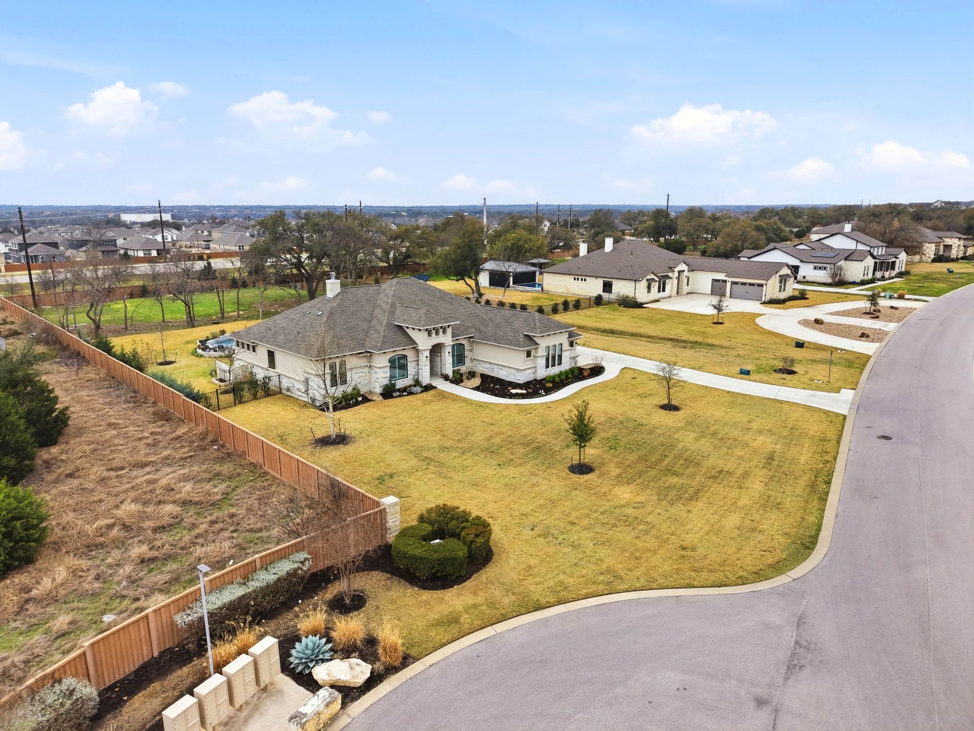 Welcome to this stunning custom-built four-bedroom, three-bathroom home in the highly sought-after Highland Village Subdivision, where timeless elegance meets everyday comfort. From the moment you enter, you’re greeted by soaring ceilings, rich architectural beams, and walls of windows that flood the home with natural light. The expansive layout offers both grandeur and warmth, creating the perfect setting for entertaining and relaxed living alike. The chef’s kitchen is truly the heart of the home, featuring double ovens, a gas cooktop, abundant floor-to-ceiling cabinetry, and stylish finishes all opening seamlessly to the impressive living area. A striking stone fireplace anchors the space, while exposed beams add character and charm you won’t find just anywhere. The spacious primary suite is a peaceful retreat with a beautifully designed ensuite bath, offering the perfect place to unwind at the end of the day. Three additional generously sized bedrooms provide flexibility for guests, a home office, or growing households. Venture outside and prepare to fall in love. Your private backyard oasis awaits...complete with a sparkling pool paradise, ideal for cooling off on warm Texas days or hosting unforgettable gatherings. The large, covered patio creates an inviting outdoor living space for year-round enjoyment. The perimeter of the lot is lined with plenty of trees for added privacy for the years to come. A convenient storage shed adds functionality without sacrificing beauty, and the large lot provides plenty of room to relax and play. This exceptional property blends luxury details, thoughtful design, and resort-style outdoor living all in one of the area’s most desirable neighborhoods.