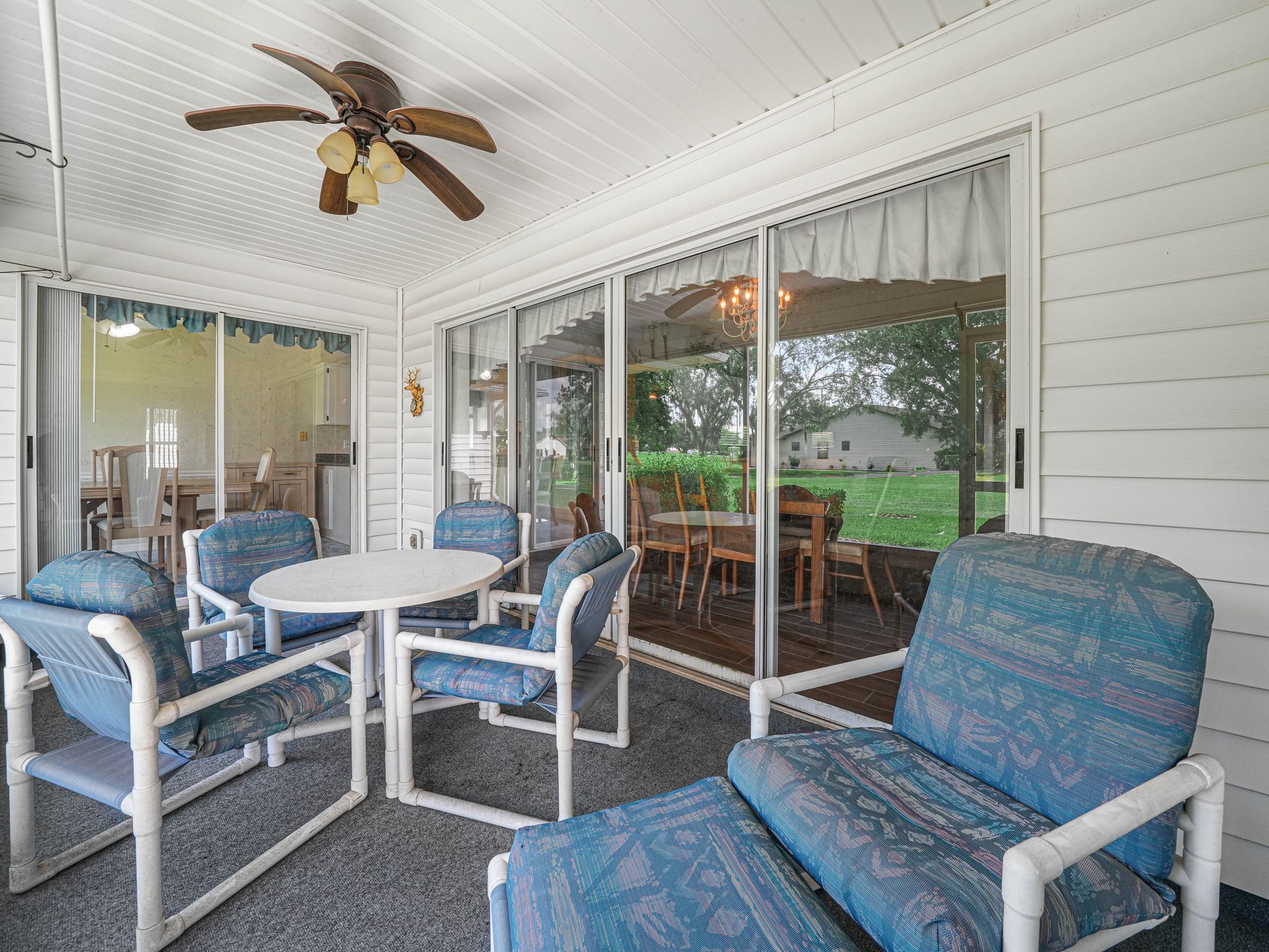 Desirable 55+ community! This spacious three bedroom, two bath home offers comfort, style and functionality all in one. The updated kitchen features granite countertops, ample cabinetry and a breakfast nook with a large window that fills the space with natural light and offers golf course views of the backyard. The open-concept living and dining area is perfect for entertaining or relaxing, with a seamless flow and plenty of room to personalize. The main bedroom boasts a walk-in closet and an updated en-suite bath with double sinks and a walk-in closet. Enjoy Florida living year-round in the screened lanai—ideal for morning coffee or evening relaxation. The large indoor laundry room provides abundant storage and workspace. HOA monthly fees of $217.80,(includes internet, cable, lawn care, pool and club house). An active community that offers a host of activities for you to do when not on the golf course; dances, dinners, travel, monthly events, exercise, tennis, bocce, pickle ball, bowling, swimming, shuffleboard, pool volleyball, bingo, bible study, line dancing, chorus, billiards, scrabble, horseshoes, card games (bridge, euchre, pinochle, cribbage, pepper, mahjongg) and more. Call now for your private showing.