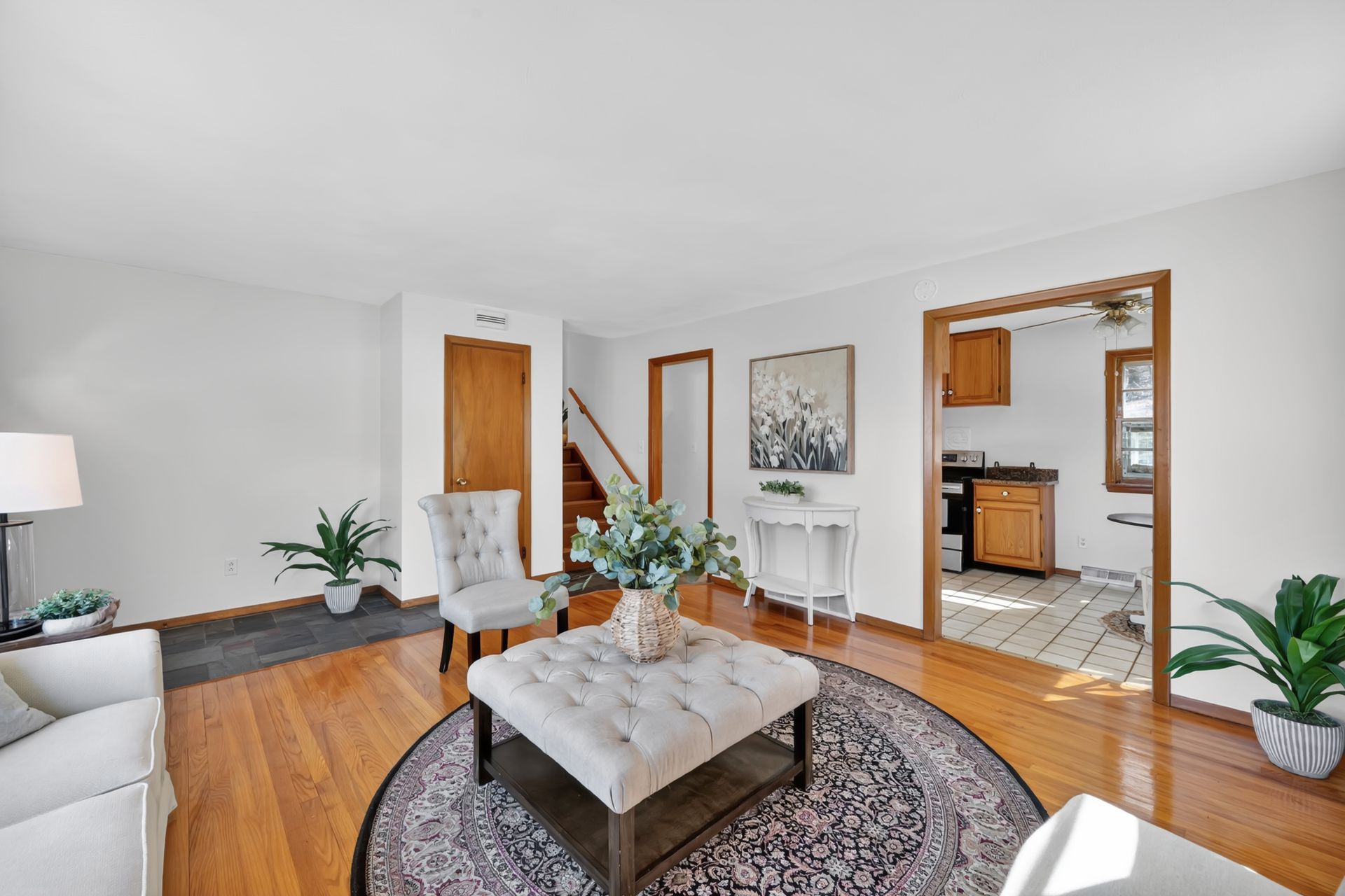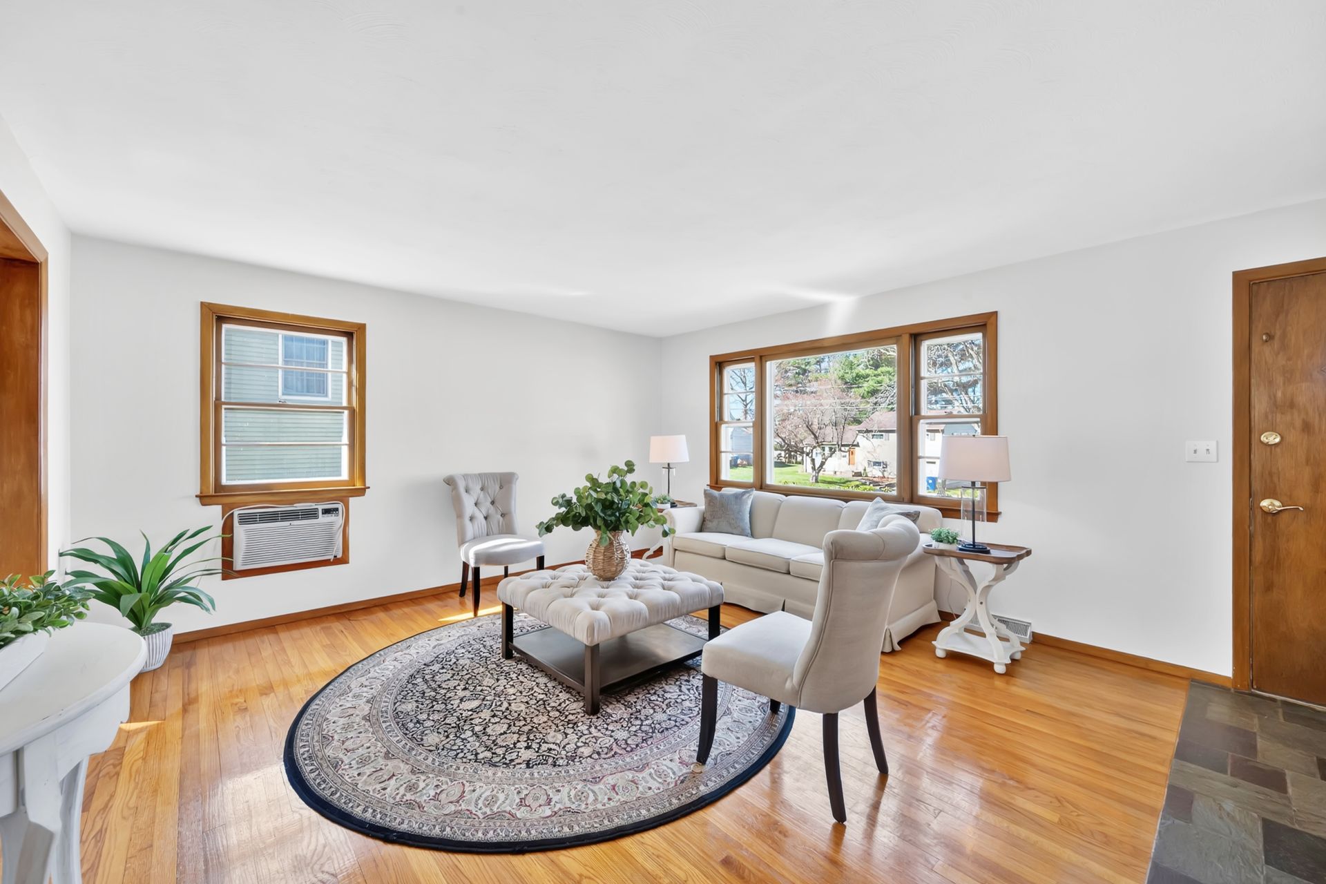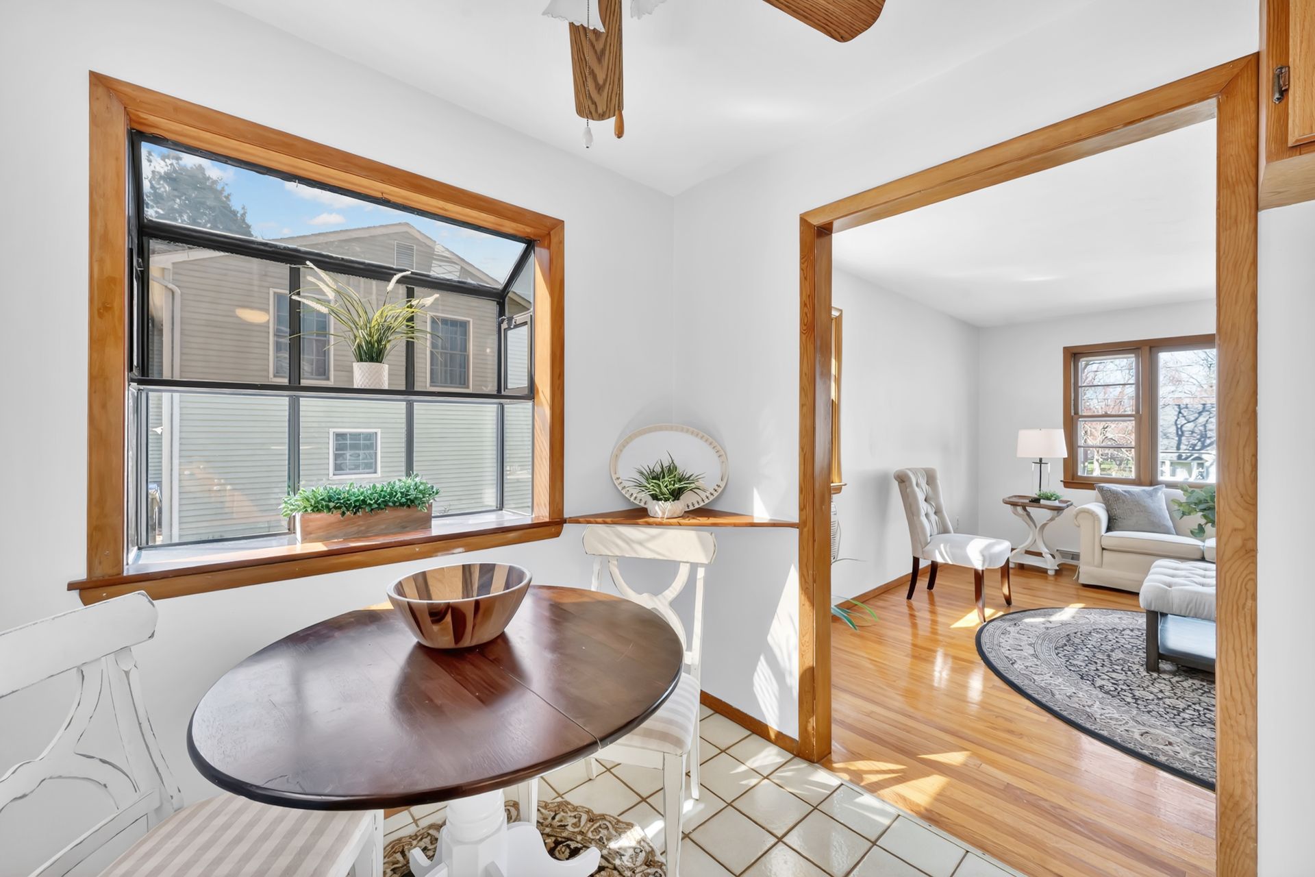 Inside, you’ll find 1,296 square feet of above-grade living space featuring gleaming hardwood floors, fresh interior paint, and an updated kitchen with a charming greenhouse window that brings in natural light. A unique “catio” kitchen window adds a thoughtful touch for pet lovers.