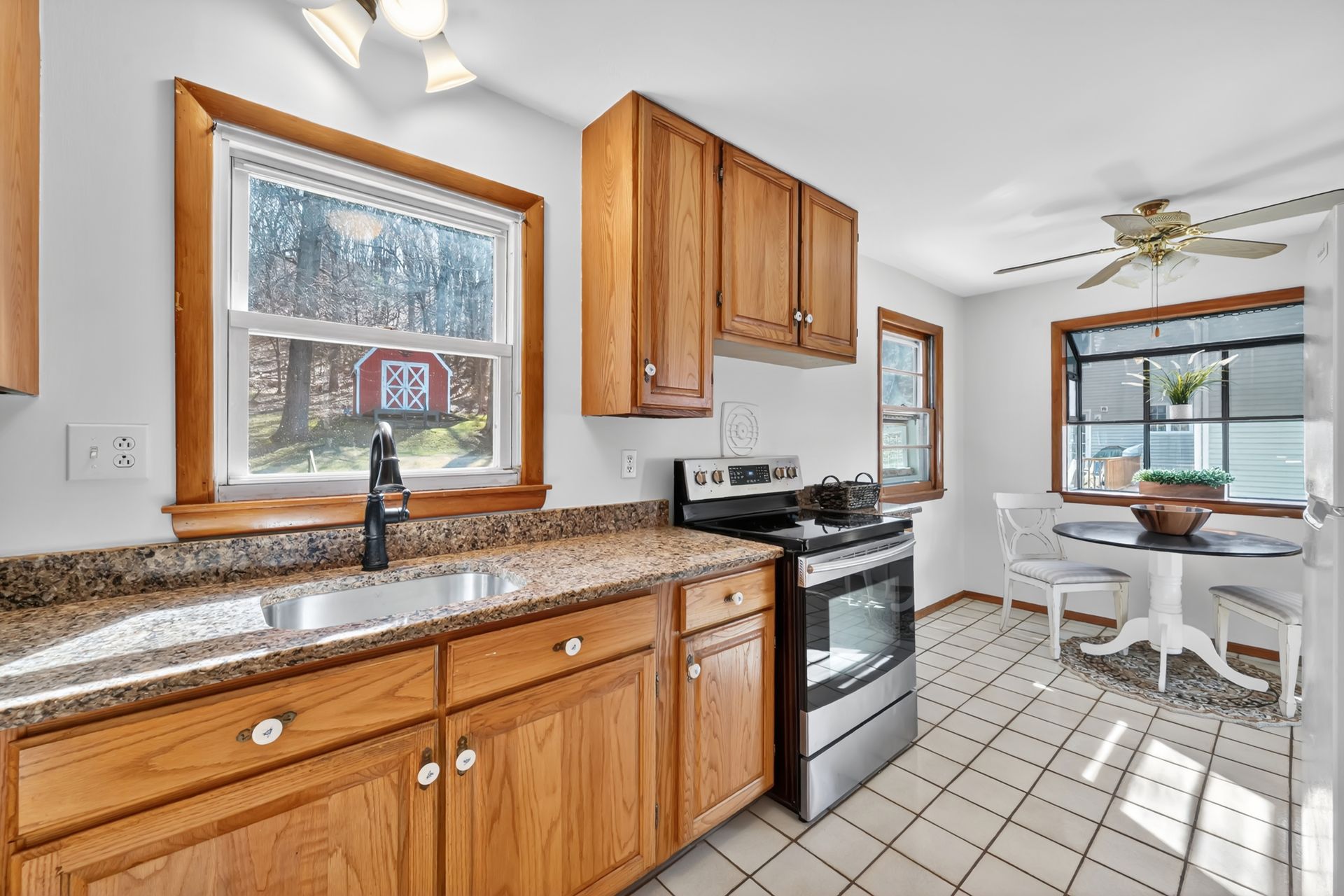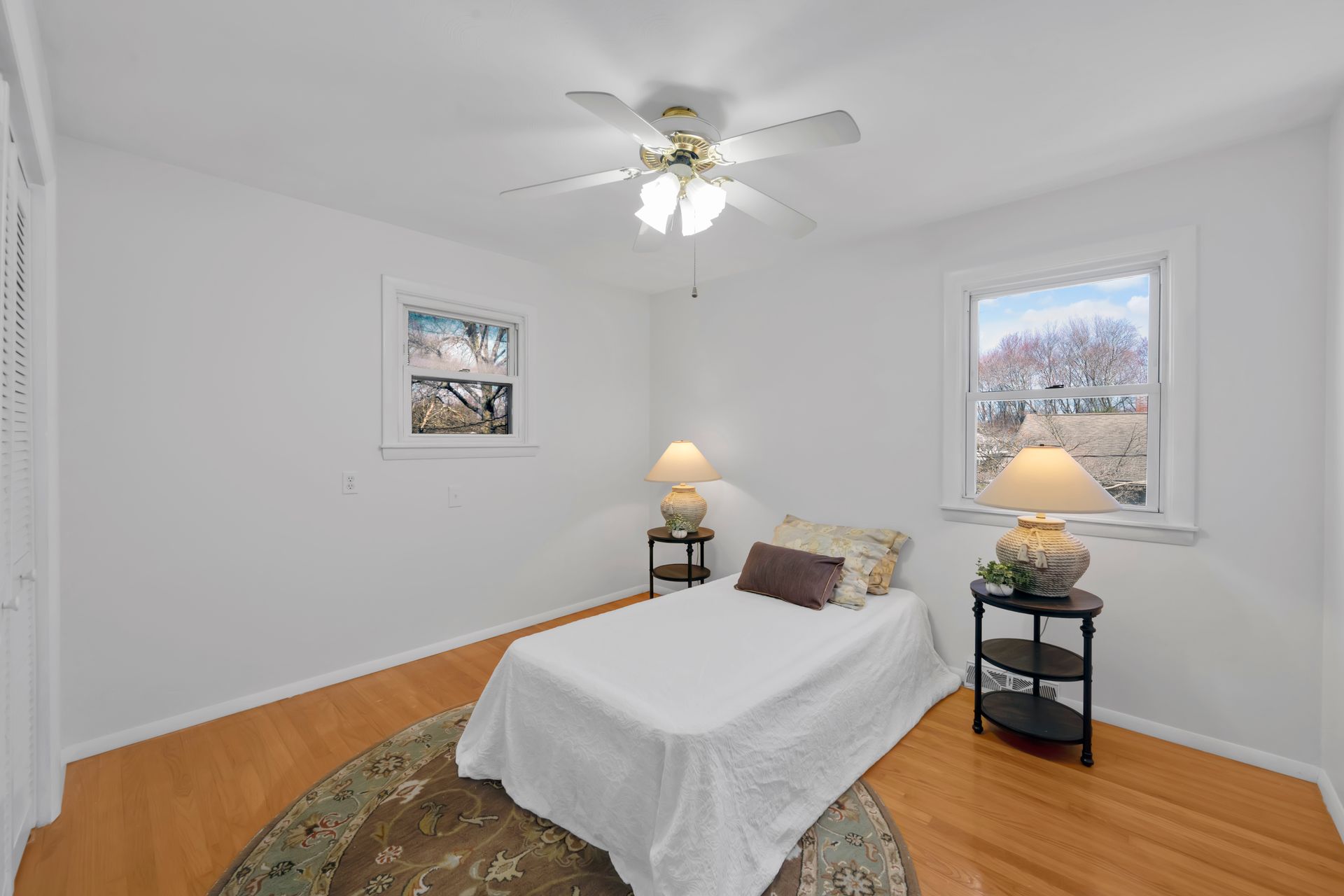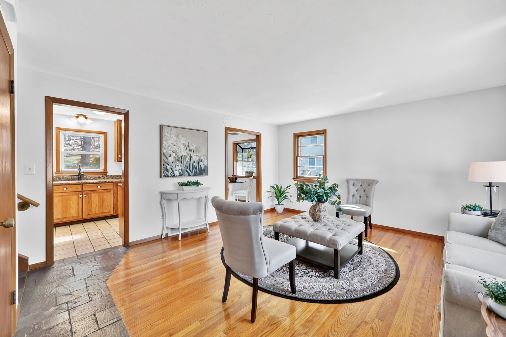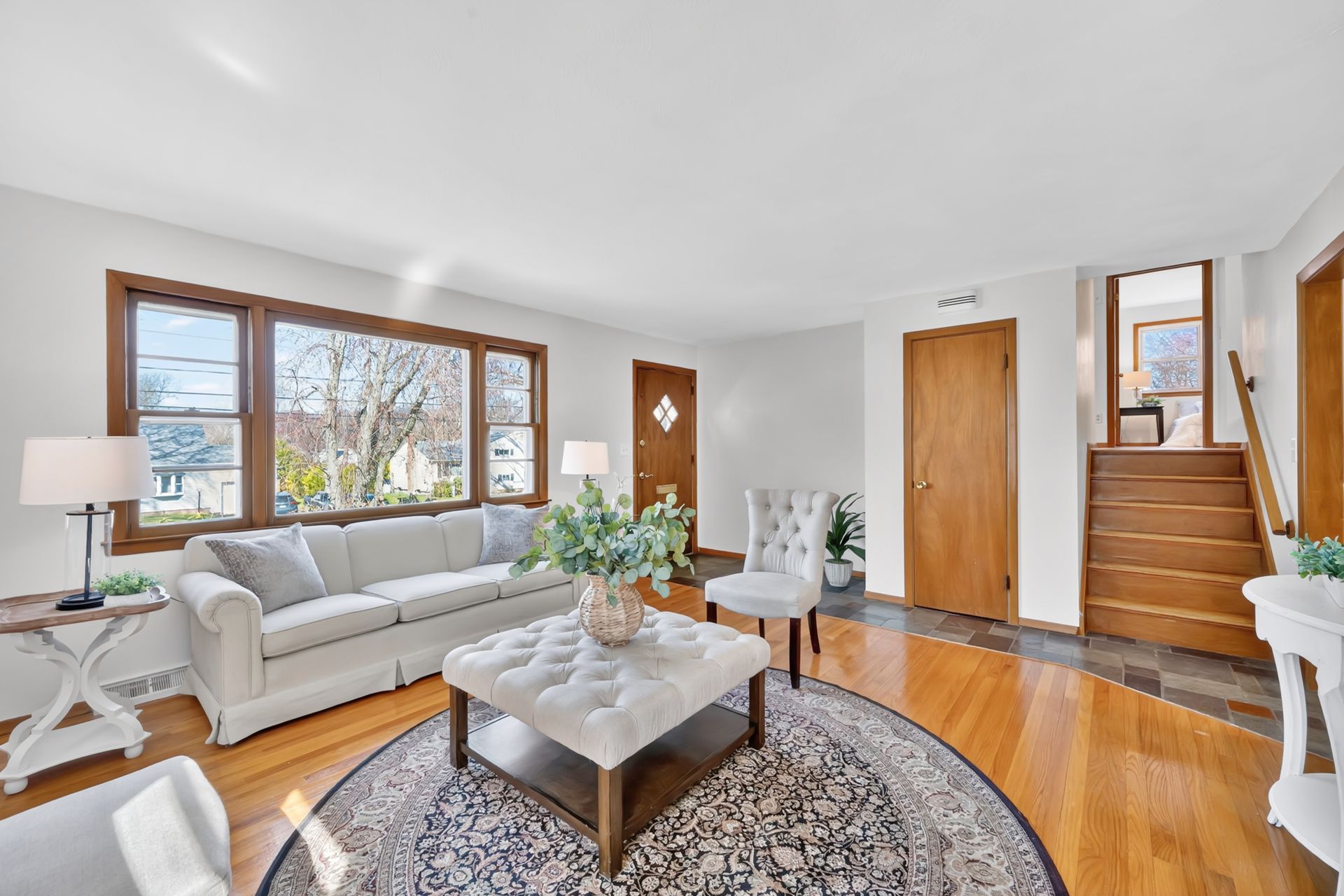 Inside, you’ll find 1,296 square feet of above-grade living space featuring gleaming hardwood floors, fresh interior paint, and an updated kitchen with a charming greenhouse window that brings in natural light. A unique “catio” kitchen window adds a thoughtful touch for pet lovers.