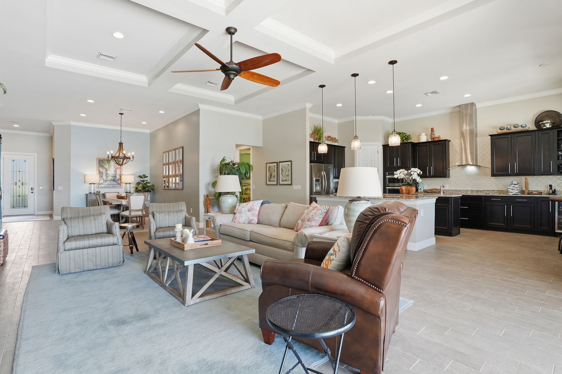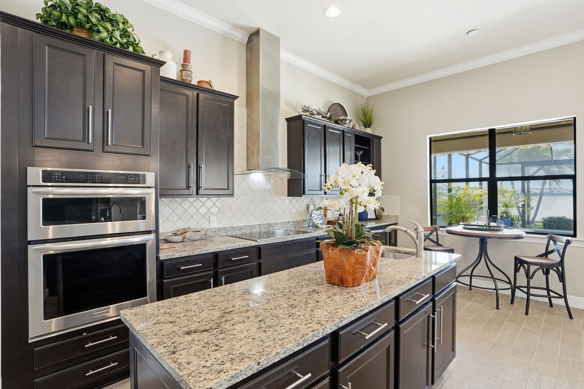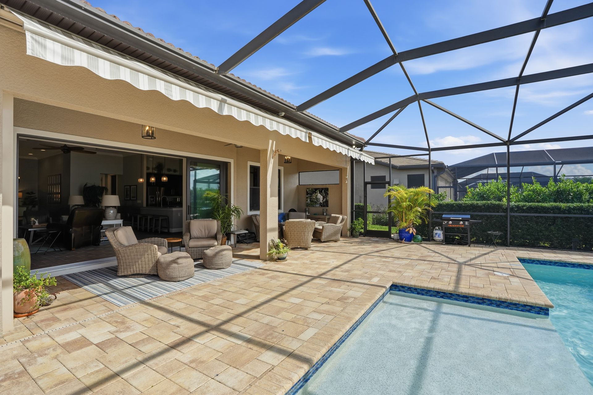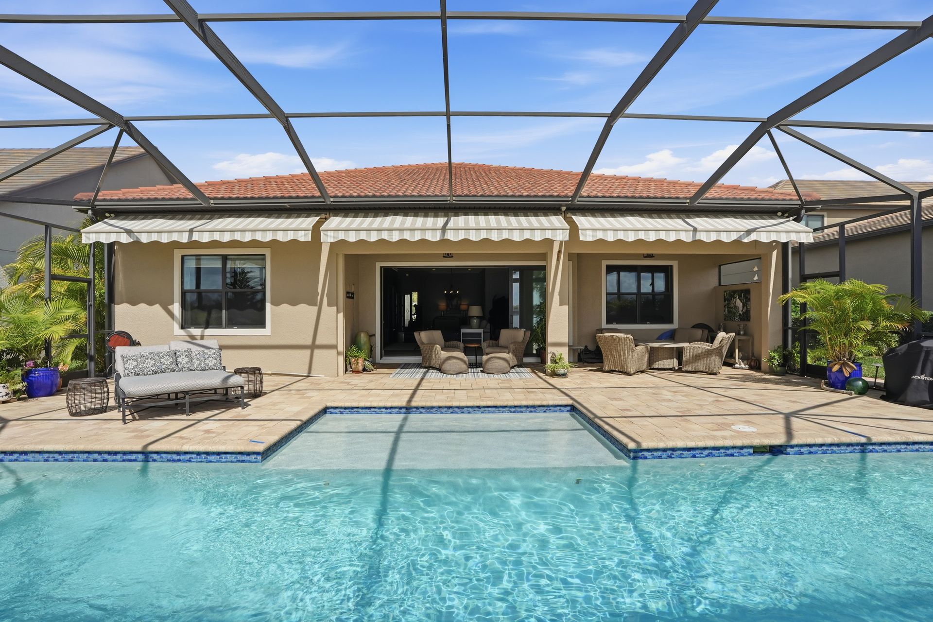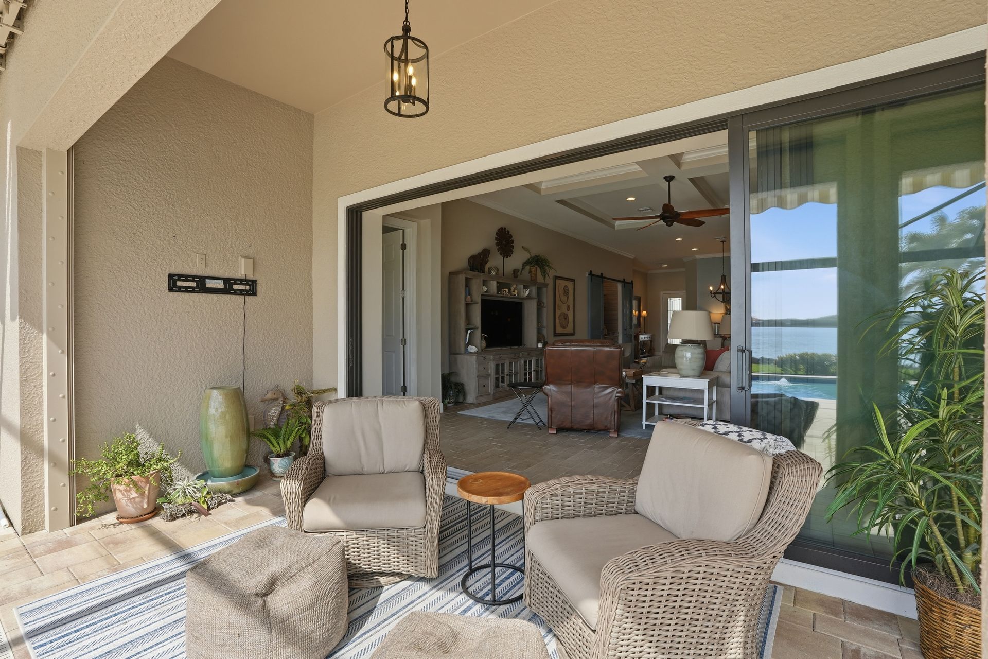 Live like you're on vacation every day in this gorgeous waterfront home overlooking the sparkling 240-acre lake, located in exciting Estero SW Florida! Welcome to the gated community of Corkscrew Shores with resort-style amenities. Glass front doors open to the entry with wide open views of the pool and water. Screened-in, covered lanai with room for indoor and outdoor entertaining. Custom heated pool and spa with bubblers, sun shelf, and waterfall. Quality finishes include crown molding, coffered ceiling, and a custom serving bar with barn door. Chef’s dream kitchen with double islands/sinks, and beverage station. Owner’s retreat with water views, dual sinks, and custom walk-in closet. Feel protected with IMPACT windows and electric hurricane shutter. Furnishings negotiable. Finished three-car garage with interlocking flooring, insulated garage door, custom cabinetry/storage, and oversized fan. NO CDD OR CLUB FEES. NOT IN A FLOOD ZONE. Amenity island features: zero edge pool with fountains, spa, indoor/outdoor restaurant and bar, firepits, kayak and canoe launch, fishing pier, non gas boating, 24-hour state of the art fitness, movement studio, basketball, tennis, bocce, ping pong, pickleball courts, playground, picnic area. Close to FGCU, Airport, Hertz Arena, open air shopping and dining.