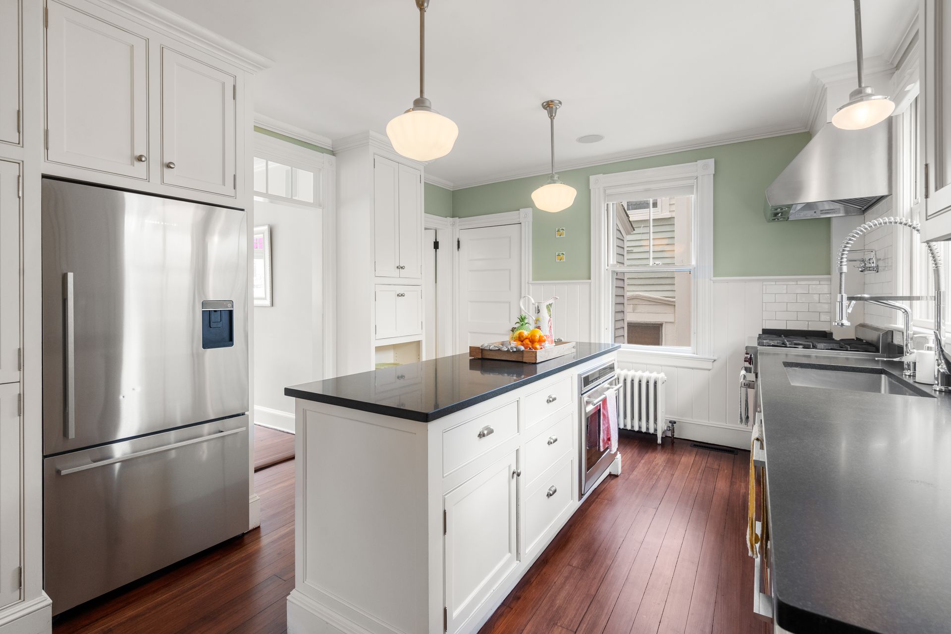 Thoughtful updates enhance the home’s comfort and functionality, including a renovated kitchen with professional-grade appliances, central air conditioning, a high-performance stereo system, and Hunter Douglas up/down window shades. The spacious and inviting floor plan is perfect for everyday living and entertaining alike.