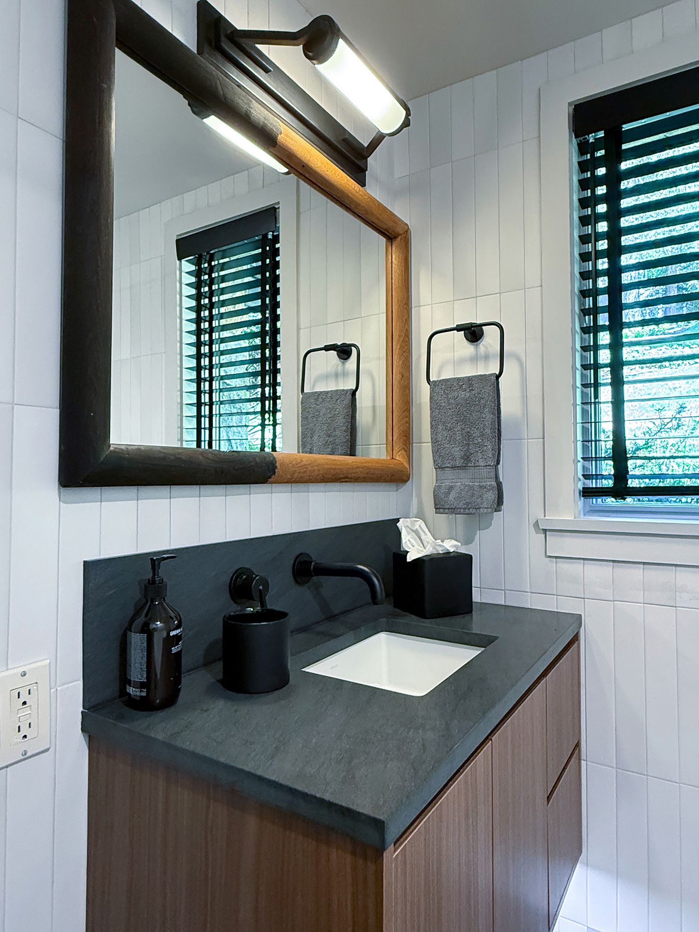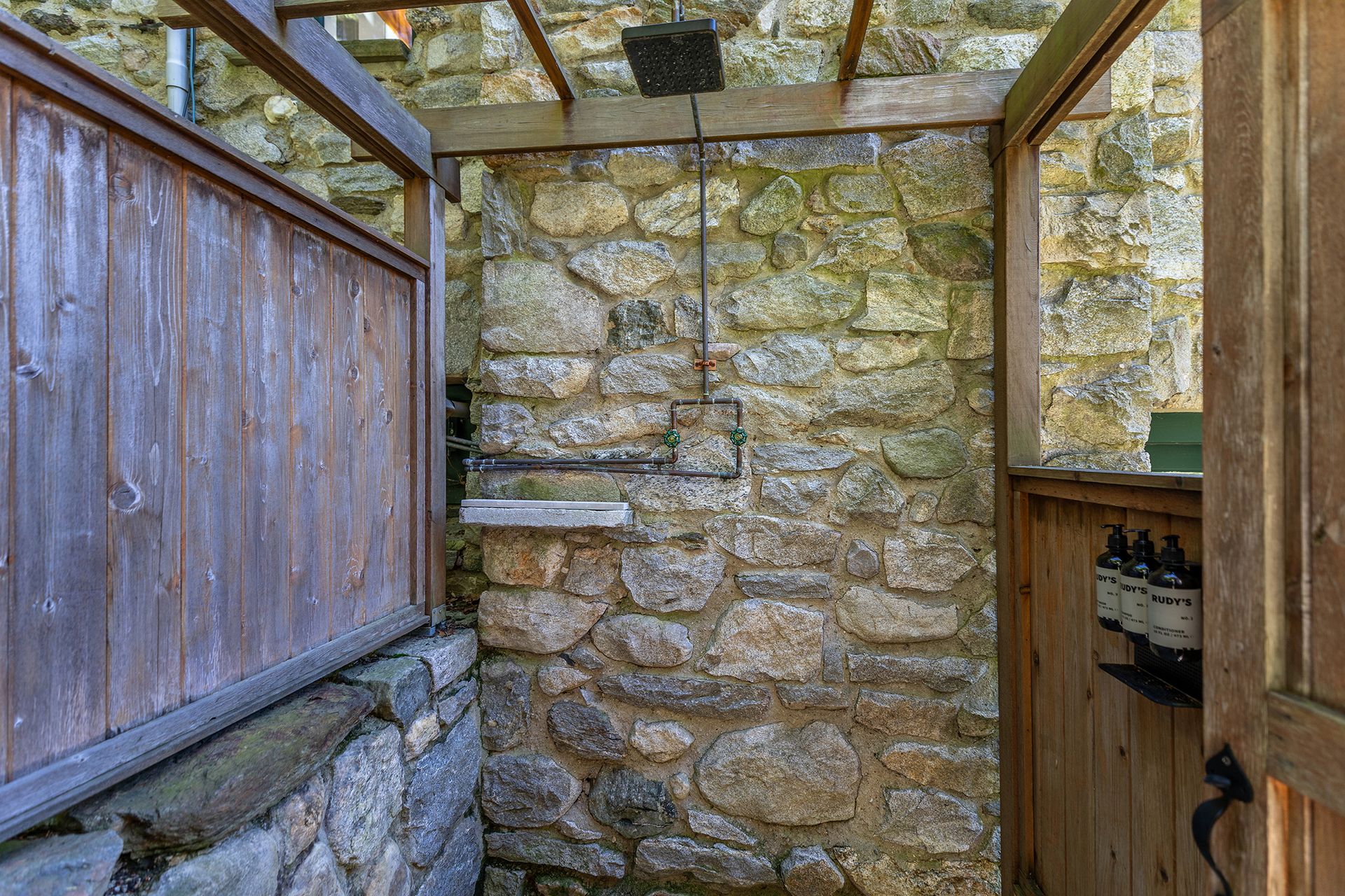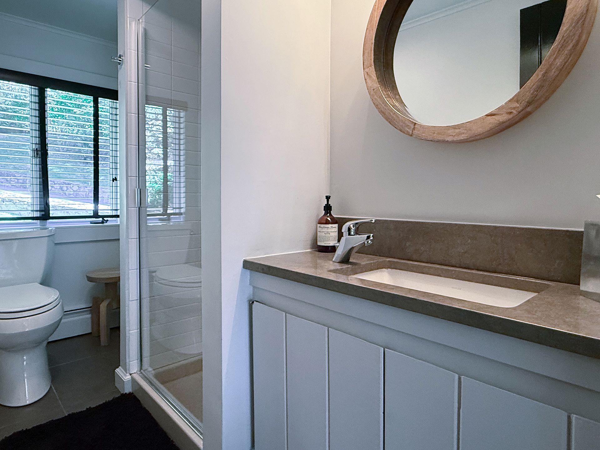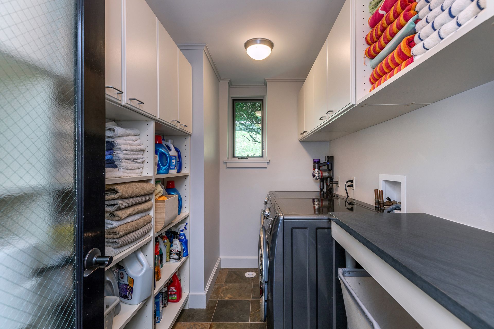 Craftsman style wood & iron staircase leads to second & lower levels. Intricate ceiling detail functions as art with an intriguing iron chandelier at the center. The open plan is highlighted by a full floor to ceiling stone fireplace as the focal point. Designed with lake enjoyment in mind, sliders lead from the great room and kitchen to the Ipe deck as well as from the lower level family room & bedroom suite to the level yard & lakefront.