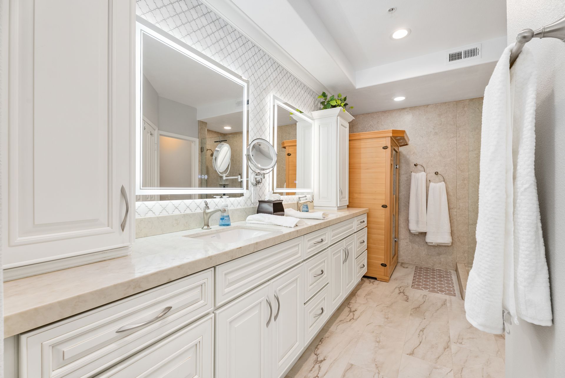 Remodeled and upgraded, this Beautiful Villa is ready for YOU! Located behind the highly sought-after guard-gated community of Marbella, this quiet and private ground-level residence offers approximately 1,779 sq ft., showcasing high-quality materials and thoughtful design. This spacious home features 2 bedrooms plus an office/den that can easily serve as an optional third bedroom, along with 2 fully updated bathrooms. The gourmet kitchen has been completely renovated with all-new cabinetry and drawers, including pull-out storage for pans and a pantry. Upgrades include a new refrigerator, 5-burner gas range, convection oven, microwave, quartzite countertops, and a striking marble backsplash, new sinks, and designer hardware. The open island flows into the dining area and living room and includes a 36-bottle wine fridge perfect for entertaining. The living room features a cozy fireplace and built-in niches for display and storage. Step outside to two open patios designed for barbecuing and outdoor enjoyment. The spacious primary suite offers a relaxing retreat with a fireplace, a walk-in closet luxurious bathroom with remodeled cabinetry, quartzite counter tops, marble backsplash, a spacious walk-in shower, premium LifePro infrared dry sauna for ultimate relaxation. The second bedroom is generously sized and features mirrored closet doors and is conveniently located next to the updated guest bathroom. Additional highlights include an interior laundry room, plantation shutters throughout the home, LED recessed lighting in every room, air conditioning for year-round comfort, a mosaic front door, distressed hardwood floors, upgraded baseboards, a Waterdrop filtration system for fresh, clean water adds everyday convenience, retractable screens and a separate two-car garage with excellent built-in storage cabinets providing ample storage and convenience. Residents have the option to separately join the private Marbella County Club, offering world-class golf, tennis, fitness facilities, classes, pickleball, and a Jr. Olympic lap pool. The community is located near restaurants, historic downtown San Juan Capistrano, Dana Point Harbor, and Local schools. Also, the community is near award-winning schools and many prestigious private schools. For work, the Freeway and Toll Road are close. No Mello Roos.