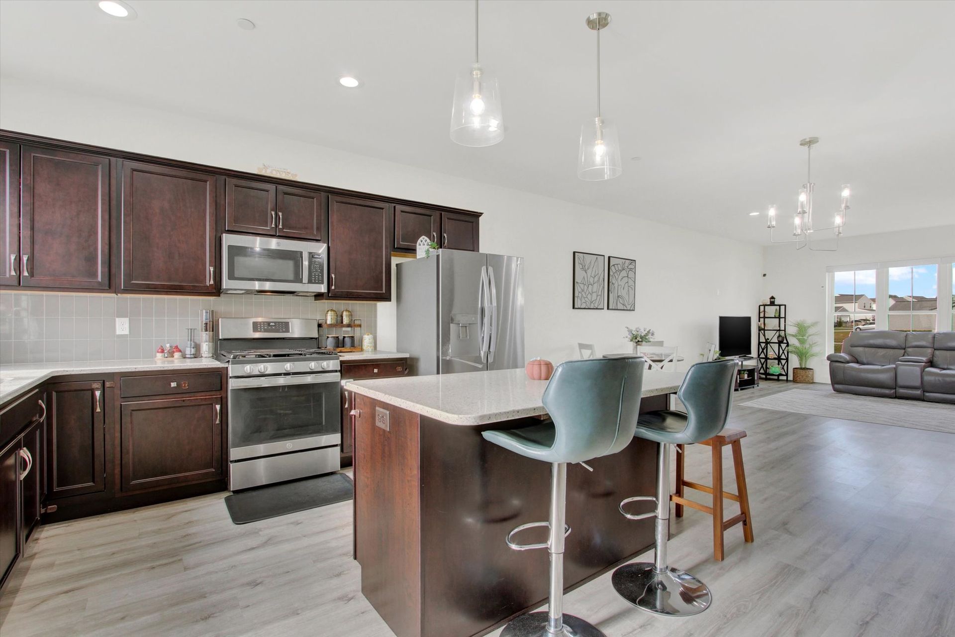 The open-concept layout allows for a seamless flow between the living room, dining area, and kitchen. The living room provides ample space for comfortable seating and entertainment. The dining area is situated adjacent to the kitchen, creating an ideal setting for meals and gatherings. The kitchen is equipped with a range, oven, and refrigerator, along with ample counter space and cabinetry for storage. There is also a dedicated laundry area for added convenience. This home features hardwood flooring throughout the main living areas, creating a warm and inviting ambiance. The private outdoor space, such as a balcony or patio, offers an opportunity to enjoy the fresh air and beautiful surroundings.