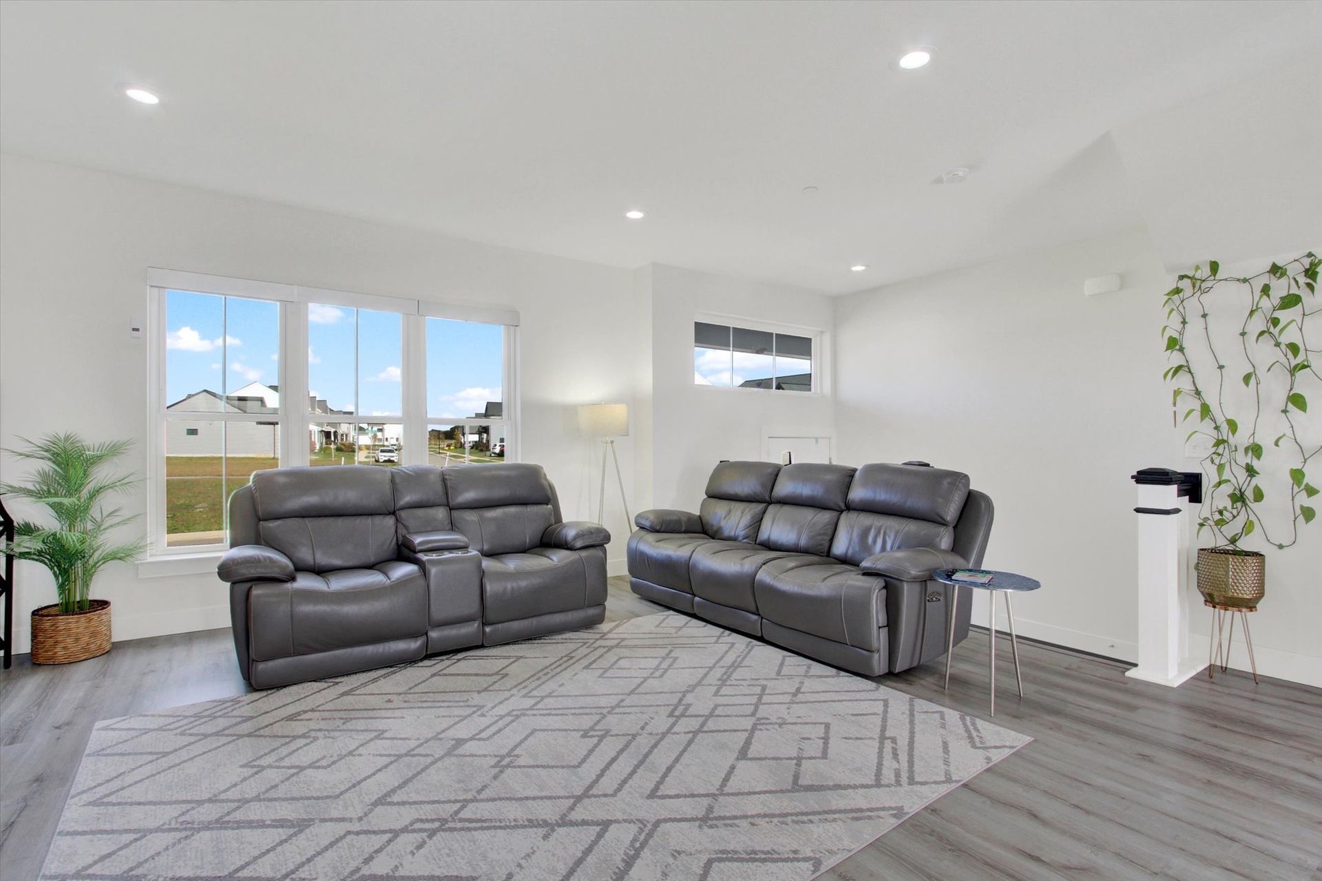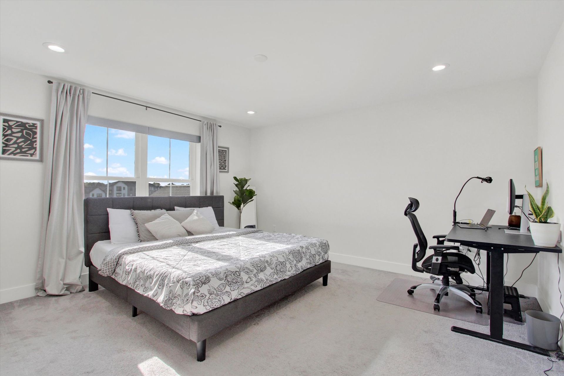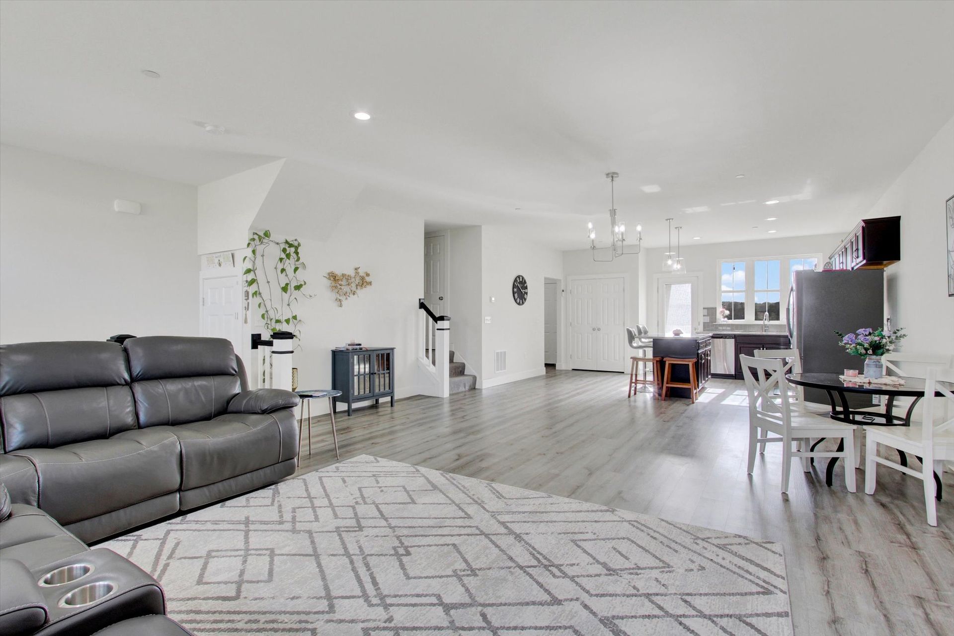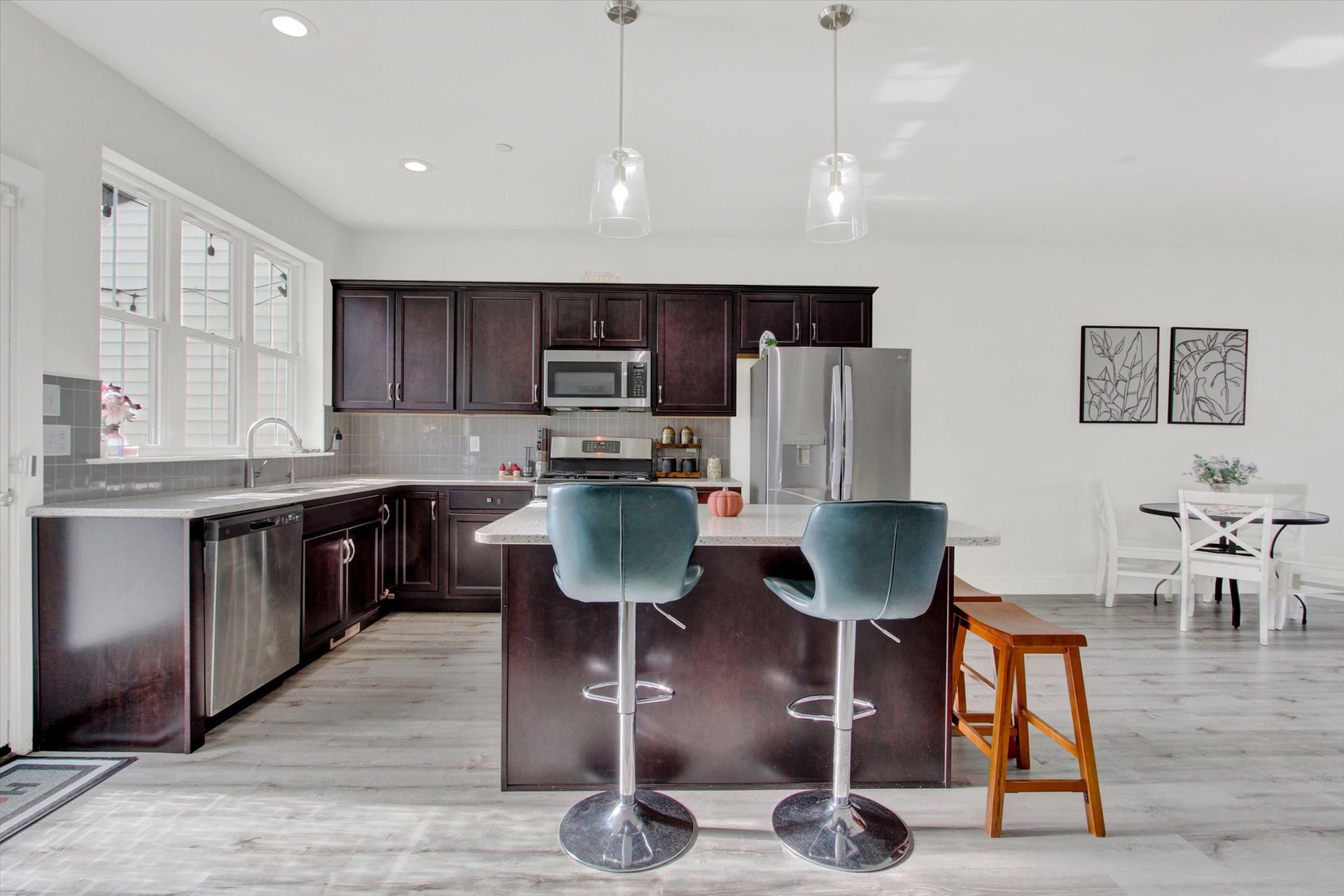 This townhouse offers approximately 1,800 square feet of living space with three bedrooms and two and a half bathrooms. The primary bedroom features a private en-suite bathroom and ample closet space. The two additional bedrooms are well-appointed and share a full bathroom. The half bathroom is conveniently located on the main level.