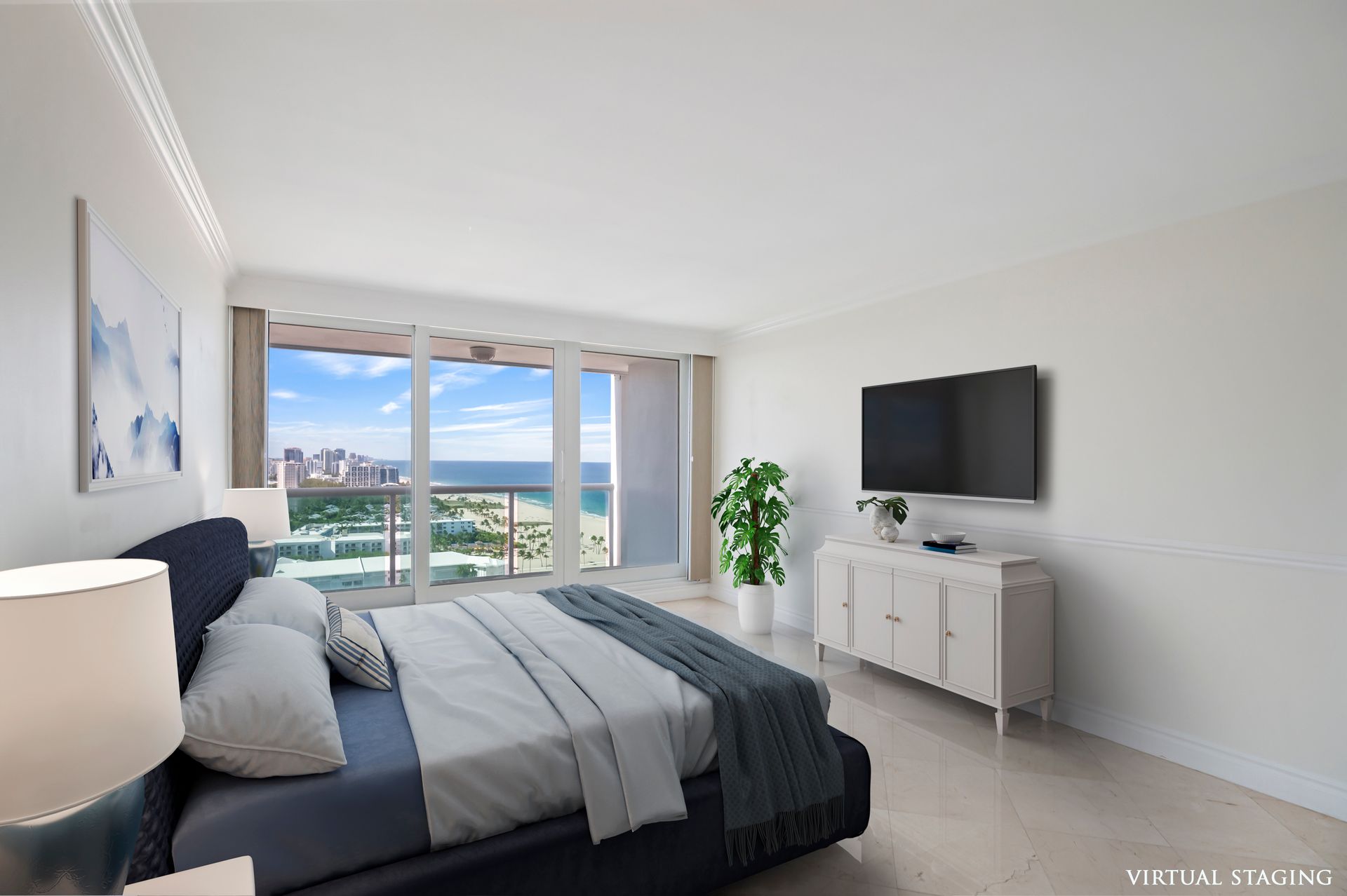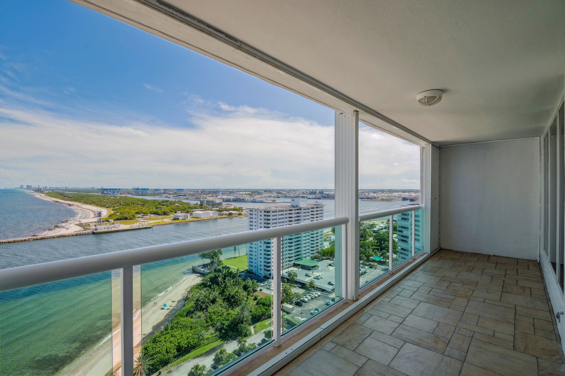 A rare jewel at world class Point of Americas I. Point of Americas is a luxury Harbor Beach Condominium complex located on 10 landscaped ocean front acres. Leave your worries at the doorstep. Enjoy a stroll on the widest beach in town or relax in an attended beachfront cabana. 2207, a thru apartment, has taste and style with impact windows, shutters, and beautiful travertine floors. Open-concept plan with ocean, harbor, yacht parade, cruise ship and coastal views to both north and south. Sweeping terraces, great room, culinary kitchen and luxe primary suite with lots of closets. Five star amenities: 24-hour security and guardhouse entry, on the widest private stretch of Fort Lauderdale Beach. Restaurant, guest hotel suites, underground parking, extra guest parking, three gyms, two pools, and cabana service on the widest beach in Ft. Lauderdale. Close to airport and all highways, midway between Miami and Palm Beach, take the Bright Line to Miami, Palm Beach or Orlando.