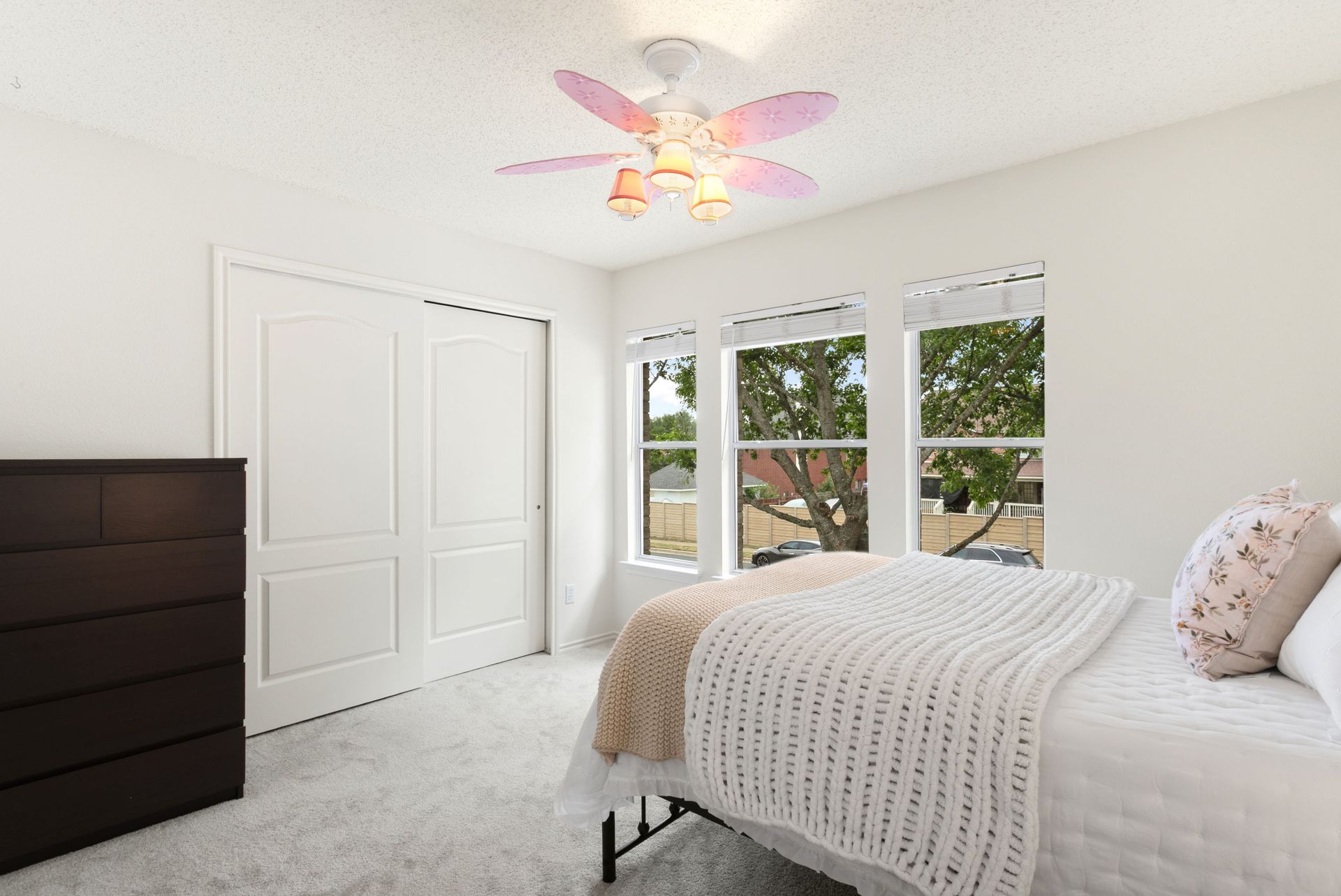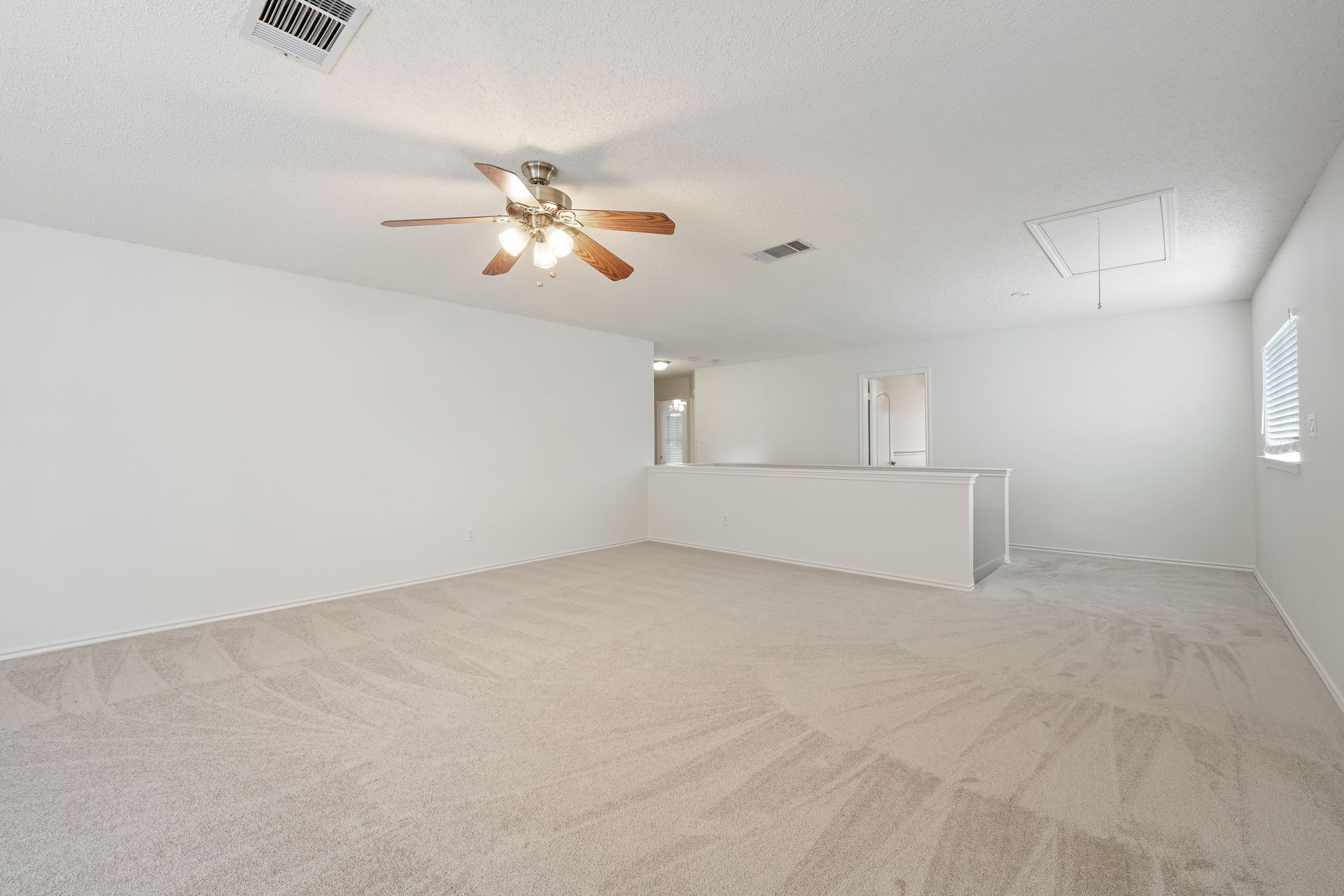 Curb appeal welcomes you to a beautifully designed, sophisticated, yet dreamy new front door, creating an inviting first impression. As you enter, you'll be greeted by fresh updates, including brand-new carpet on the upper floor and freshly painted Sherwin-Williams’ timeless Ivory Lace and Cream-toned walls. An oversized loft serves as a versatile playroom, media room, study, or workspace.