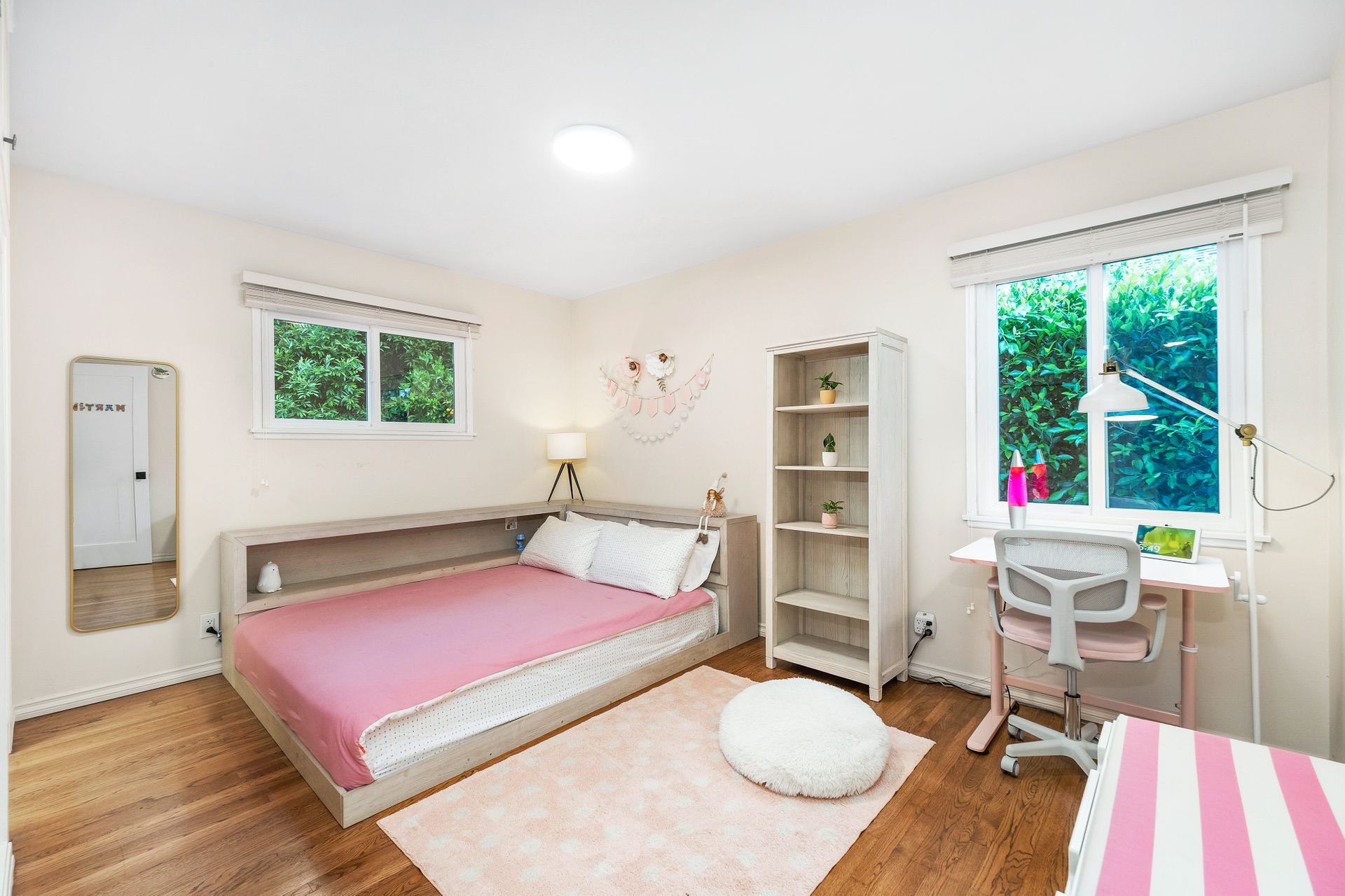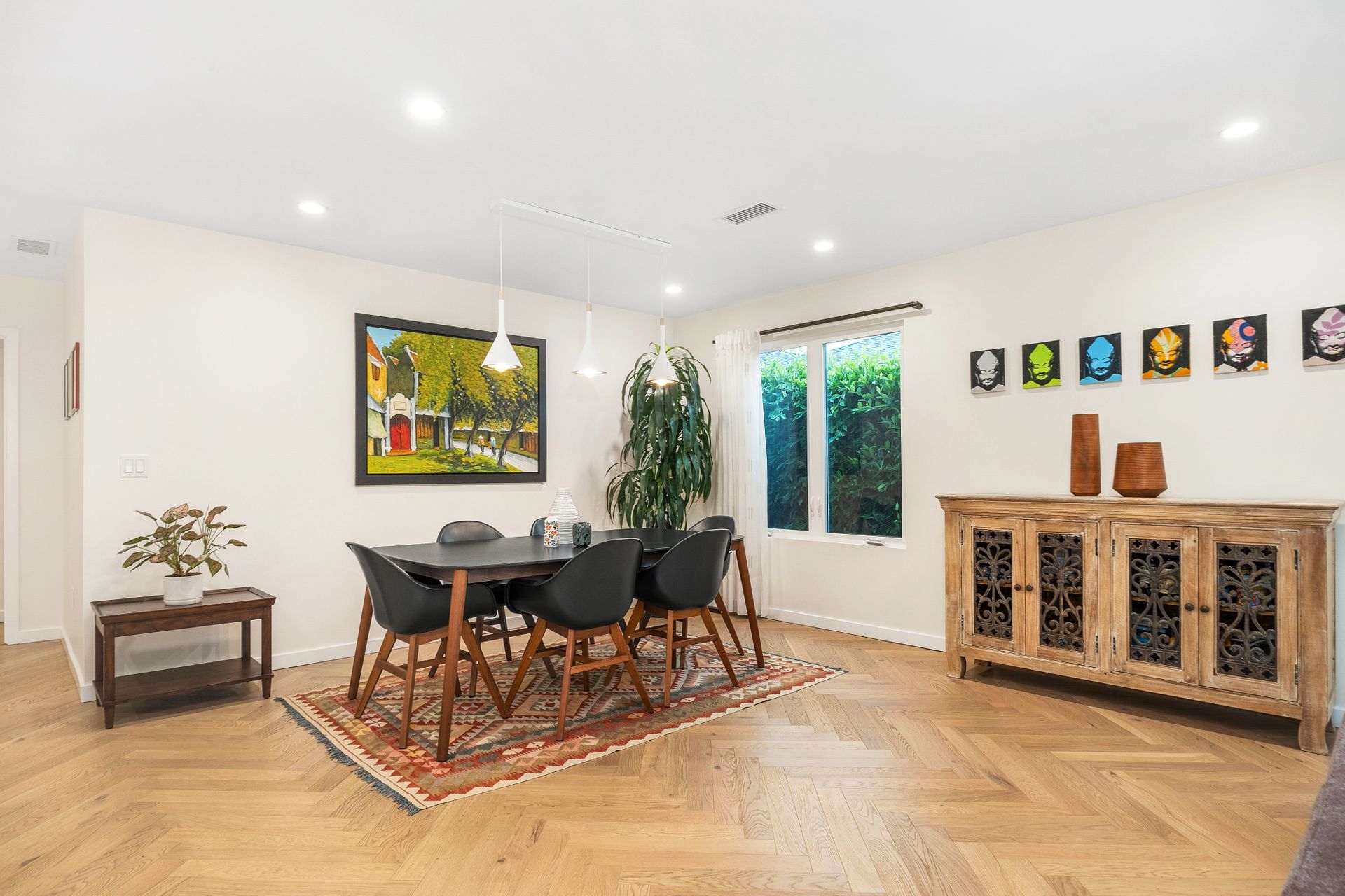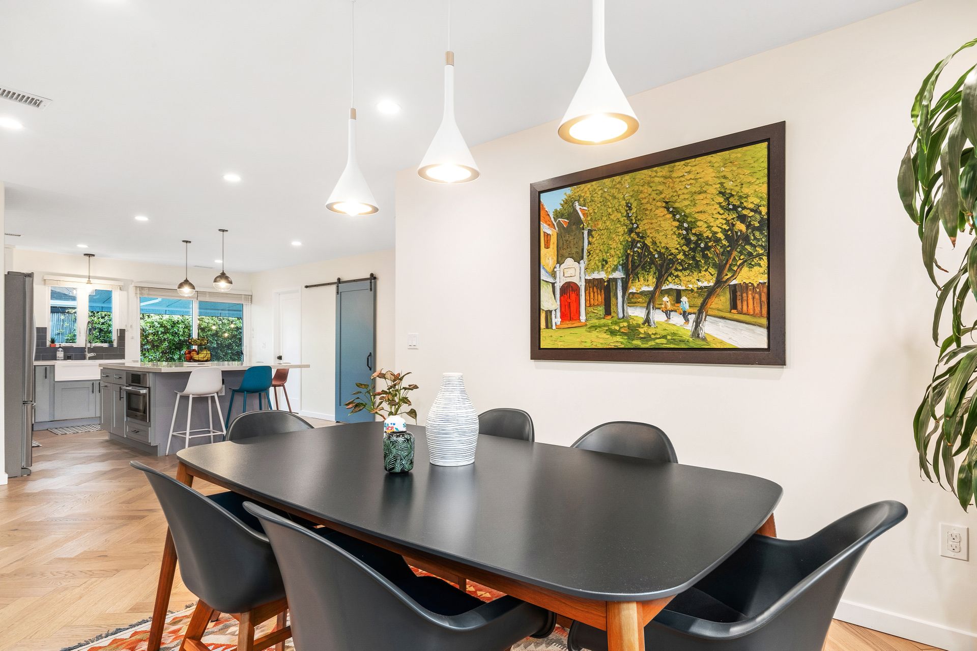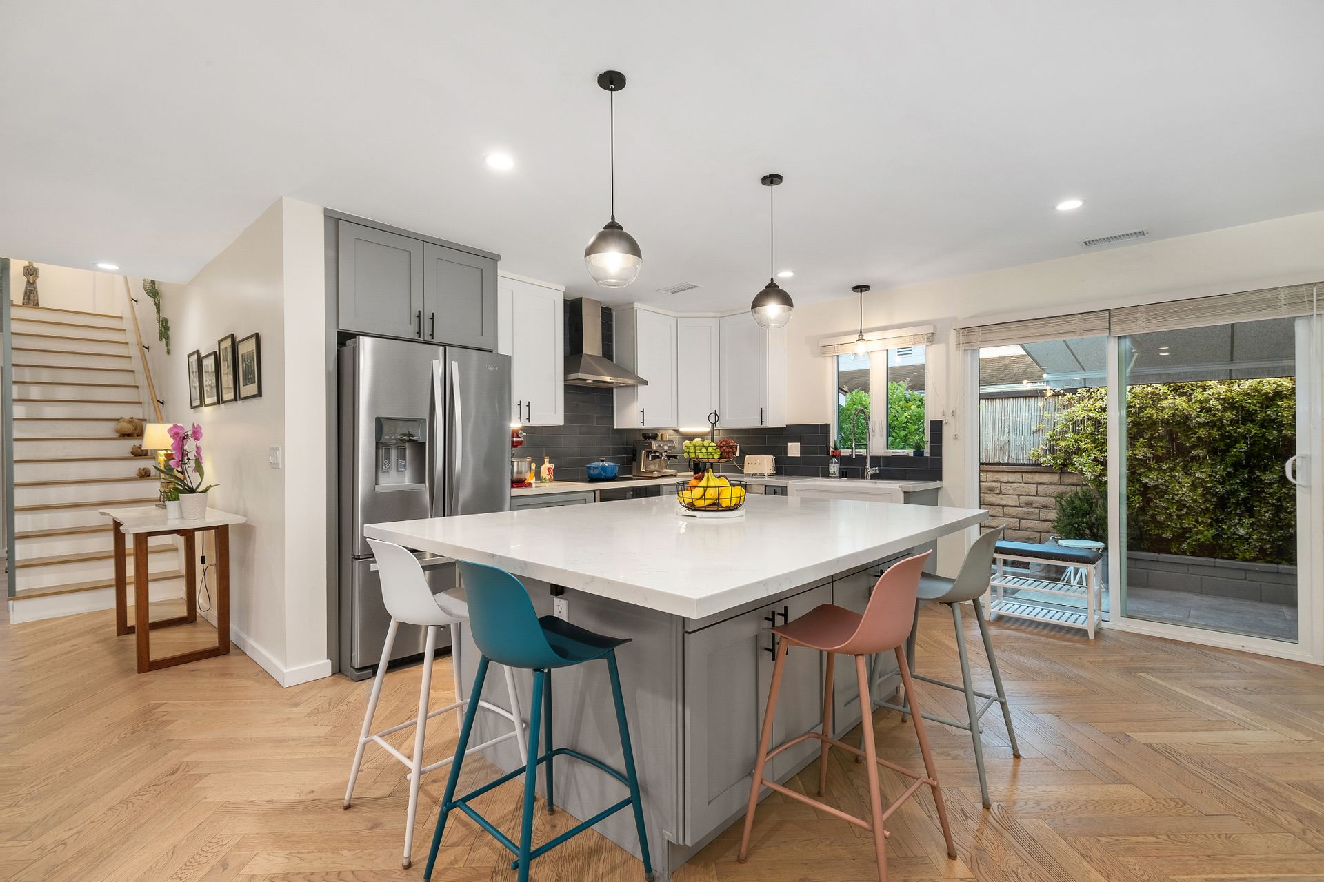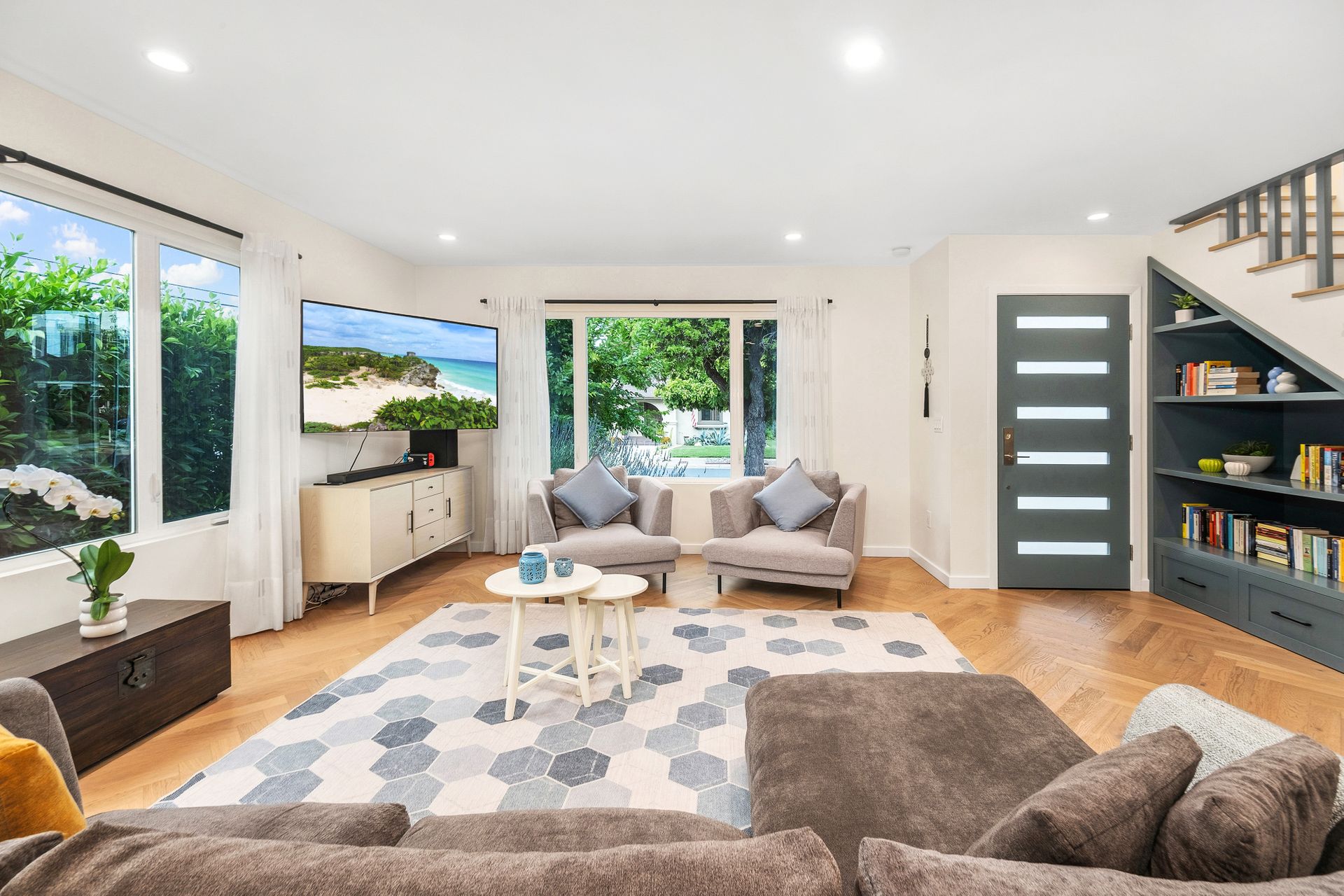 Surrounded by lush green plants, mature bushes, and trees, the home feels peaceful and private. Nearly every window on the main level looks out to vibrant greenery, bringing natural light and a sense of calm into every room.