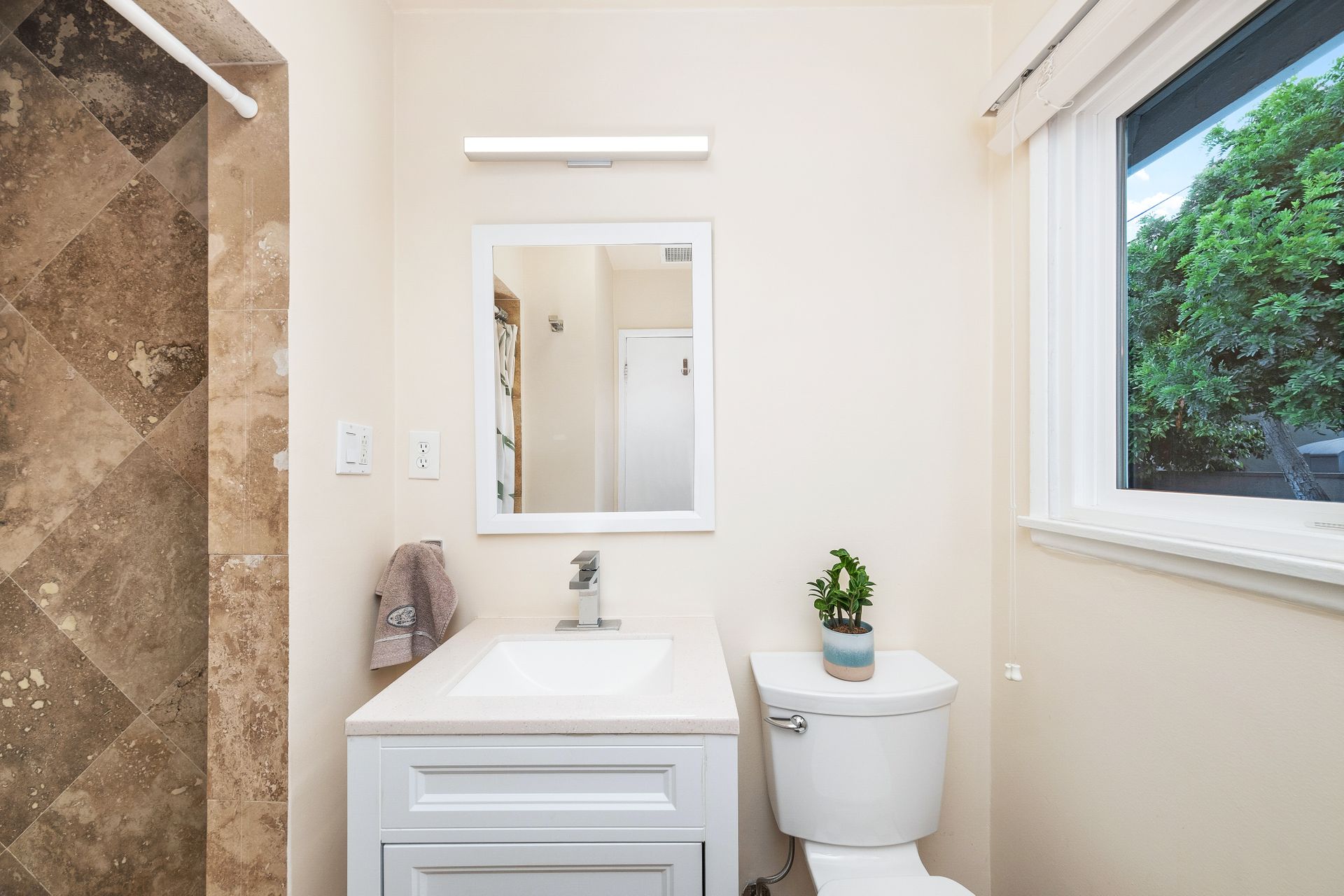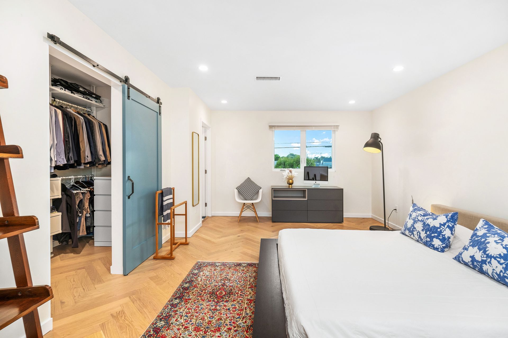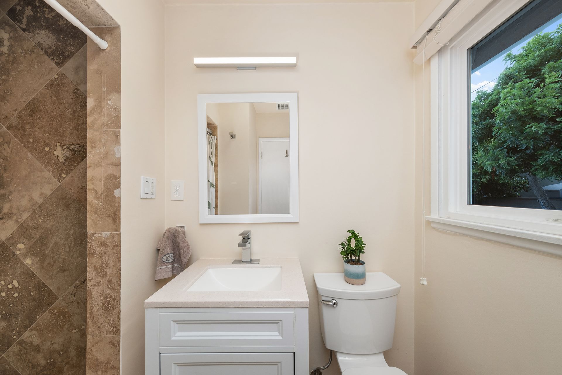 The downstairs includes three bedrooms, a full bath, and a three-quarter bath toward the back of the home. Upstairs, the spacious and private primary suite offers an en-suite bath and charming neighborhood views.