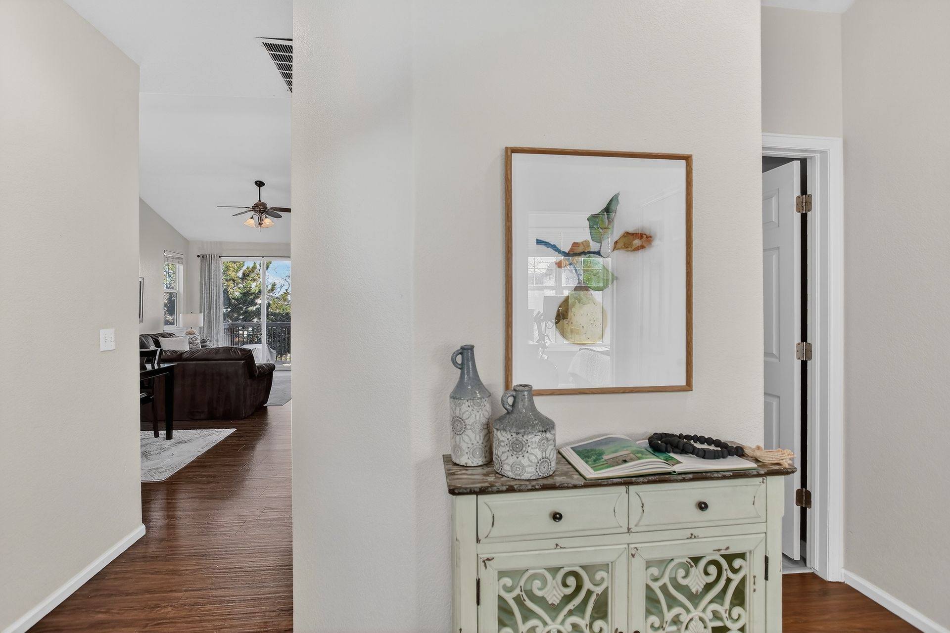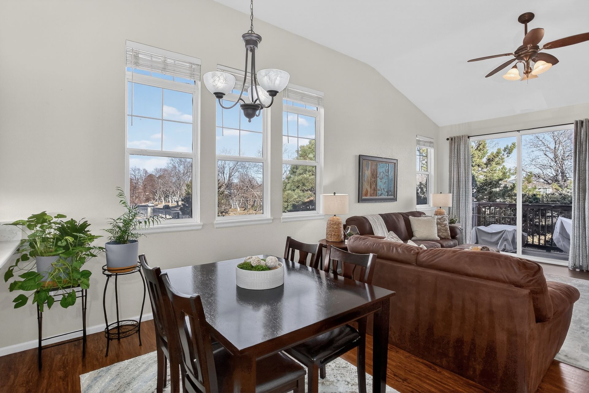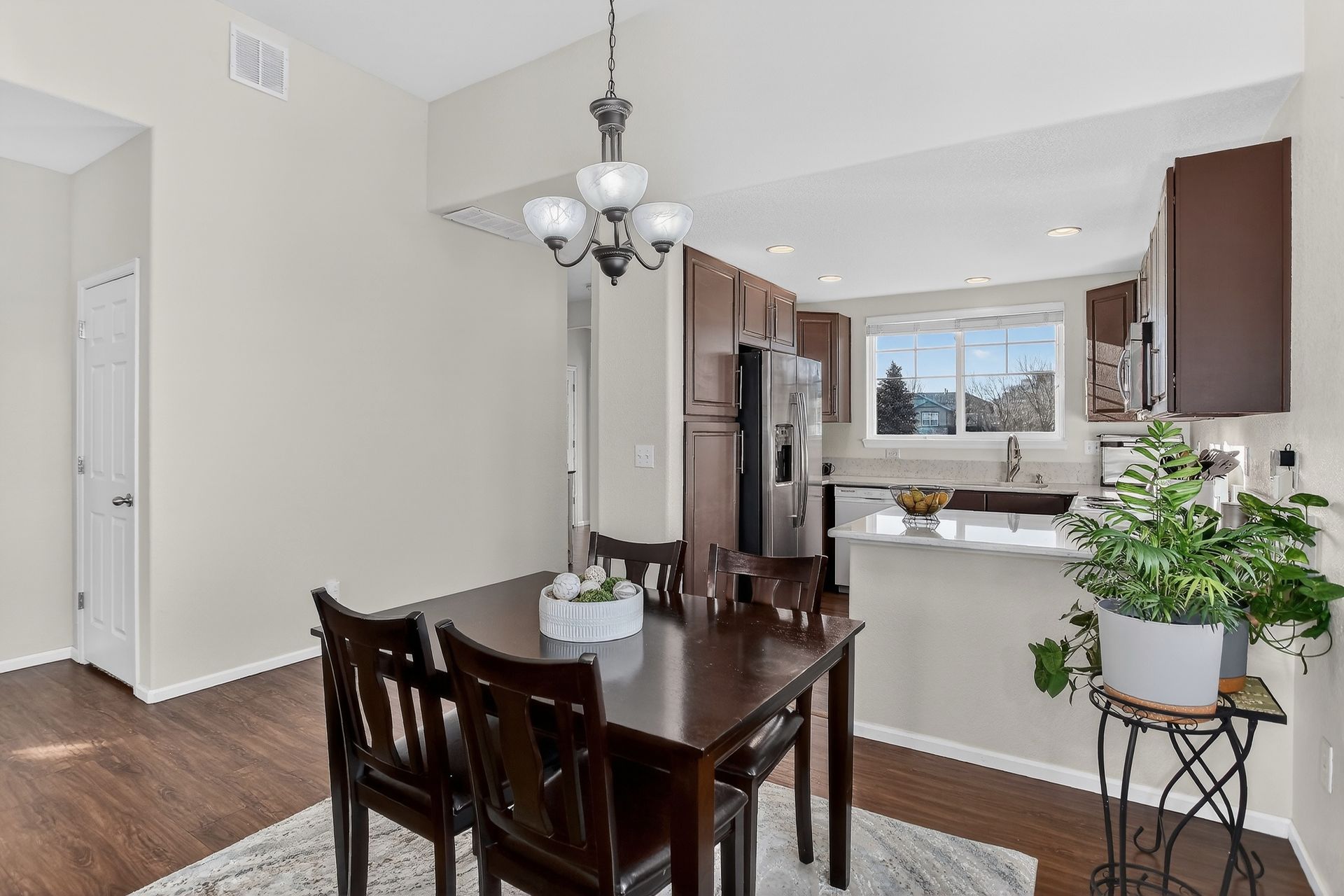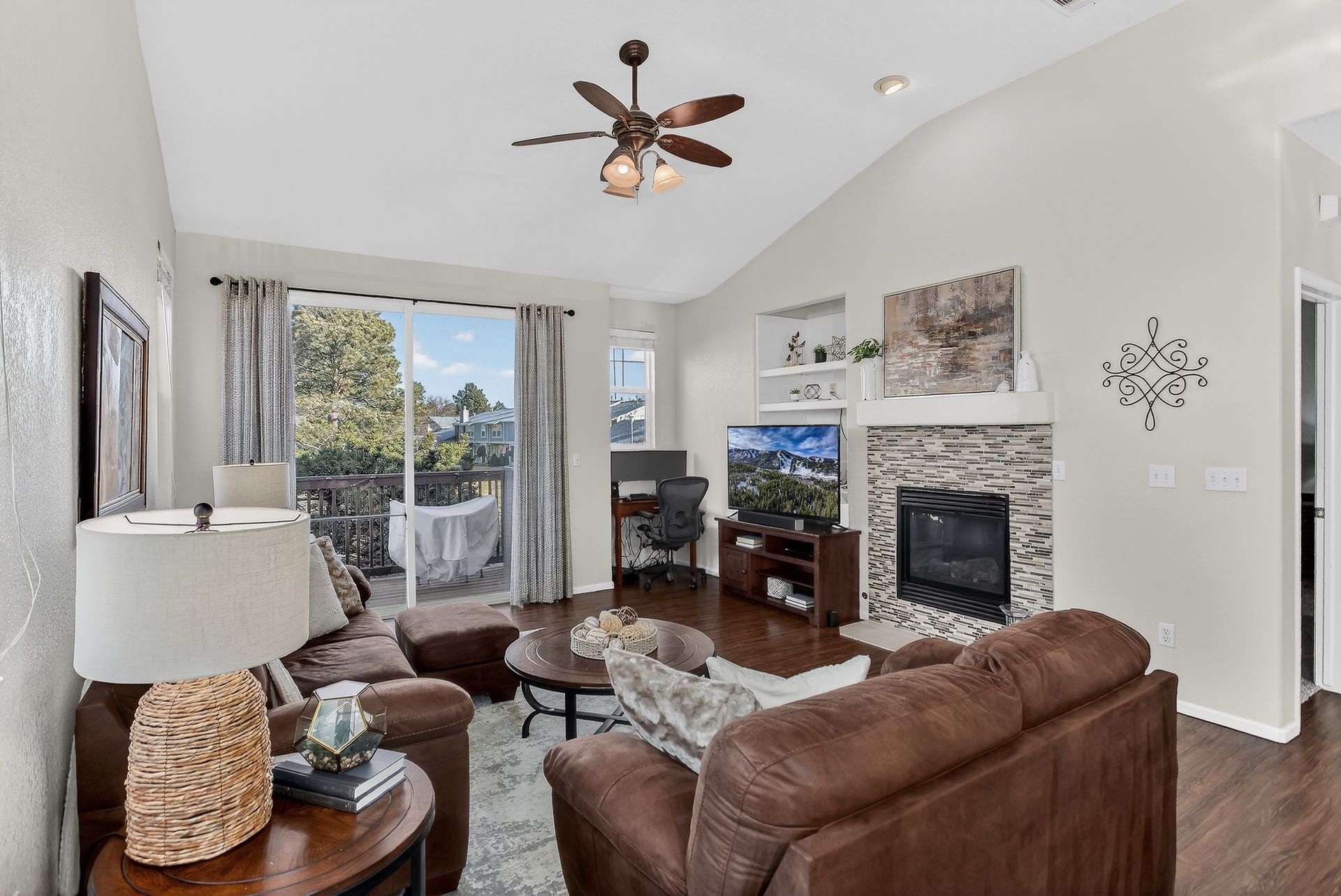 Welcome home! This lovely sunny bright open townhome features 1,319 square feet of one-level living. It is in a beautiful, gated community with two bedrooms and two bathrooms featuring a kitchen with new quartz counters and all appliances included, a large living room area with a gas fireplace, a tranquil outdoor space backing to open space with nice trees for privacy, a primary suite with a large walk-in closet and a full bathroom, a second large bedroom with a lot of storage and a full size laundry area. There is a one-car attached garage with nice storage shelves. New carpet, new flooring in the bathrooms, some new windows and blinds. Centrally located in the community and with easy access to Cherry Creek, downtown Denver, and DIA.