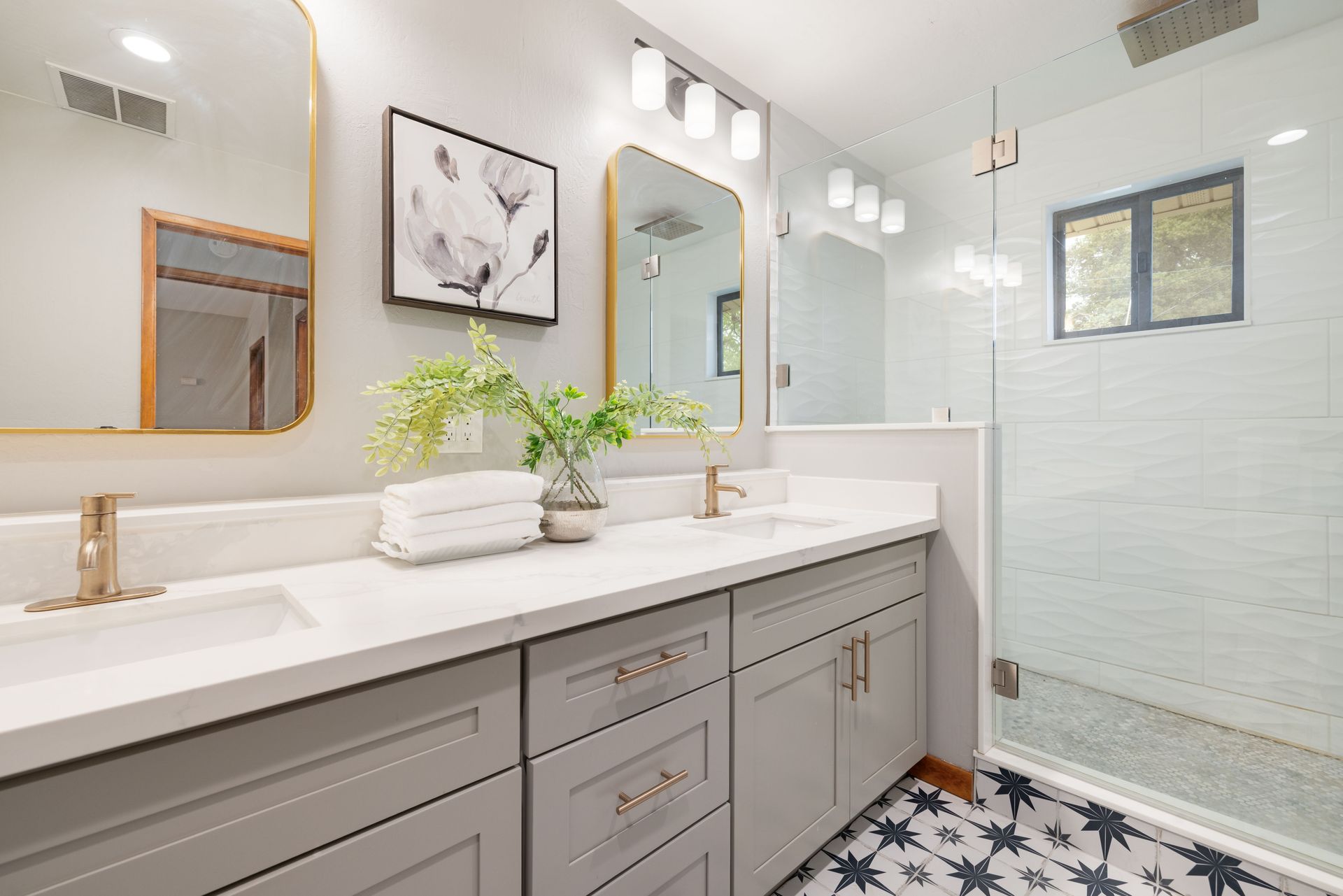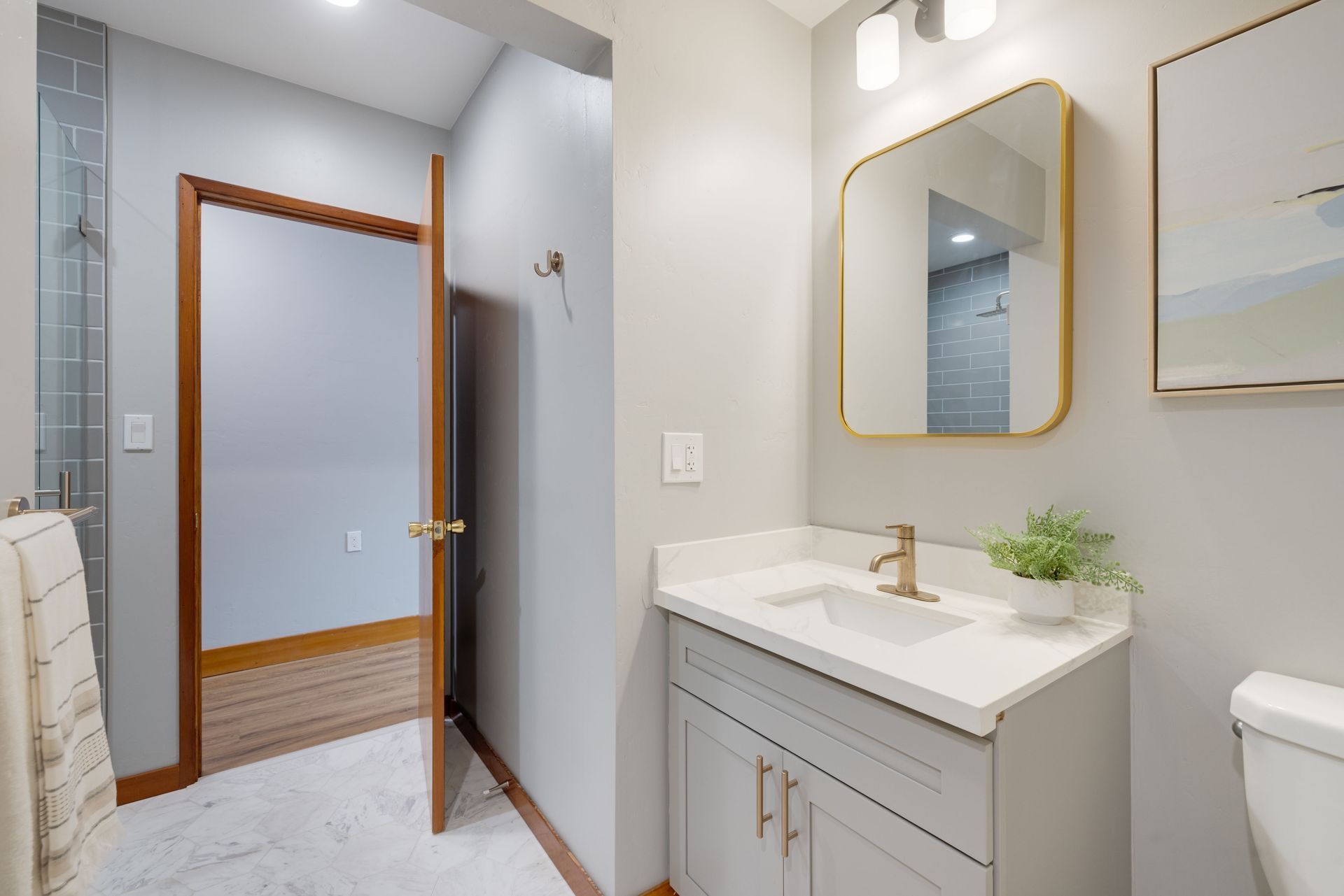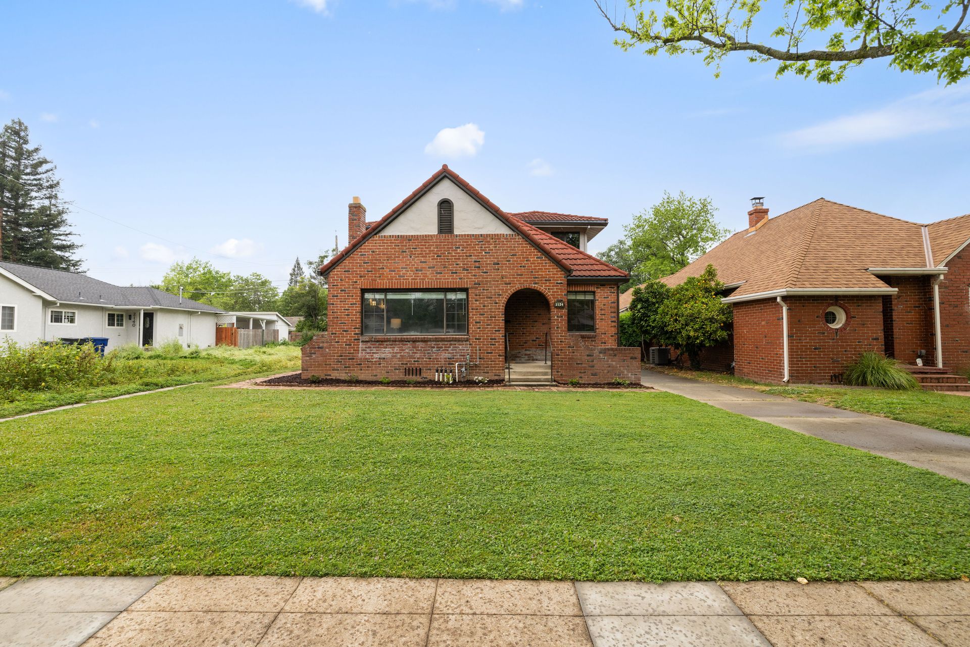 Beautifully updated Tudor-style home on a picturesque, tree-lined street in the heart of Sacramento. This 1925 brick Tudor is rich with original craftsmanship and character, thoughtfully enhanced with modern updates including a fully remodeled kitchen and bathrooms. The iconic arched entry, classic red brick exterior, and Spanish tile roof create timeless curb appeal. Inside, you'll find soaring cathedral ceilings in the living room, refinished hardwood floors, a charming brick fireplace, and graceful arched doorways that celebrate the home's historic charm. The flexible floor plan offers dual primary suites, ideal for a variety of living arrangements. The main-level bedroom features a private en suite bath and walk-in closet, while upstairs includes three additional bedrooms and two beautifully updated bathrooms. The expansive upstairs primary suite offers generous space, dual closets, and a spa-inspired bath with a double vanity and rain shower head. The remodeled kitchen is truly a centerpiece, showcasing gray shaker cabinetry, quartz countertops, stainless steel appliances, a center island with bar seating, and a cozy breakfast nook perfect for everyday dining. This property presents an exceptional opportunity for investors or multigenerational living. With dual primary suites, a full unfinished basement, a three-car garage with workshop space, and strong ADU potential via alley access, the home offers outstanding versatility. Additional highlights include a den or office area and convenient indoor laundry. Ideally located near UC Davis Medical Center, freeway access, and public transportation.