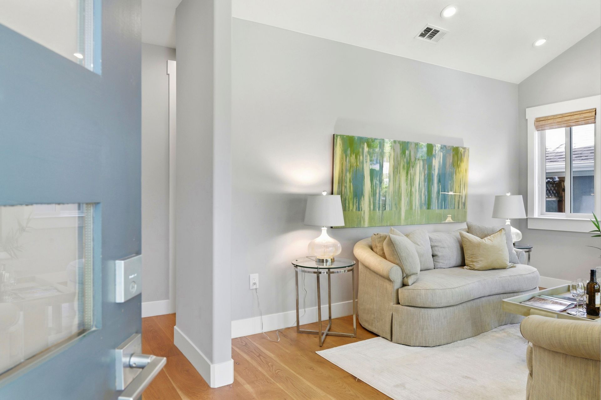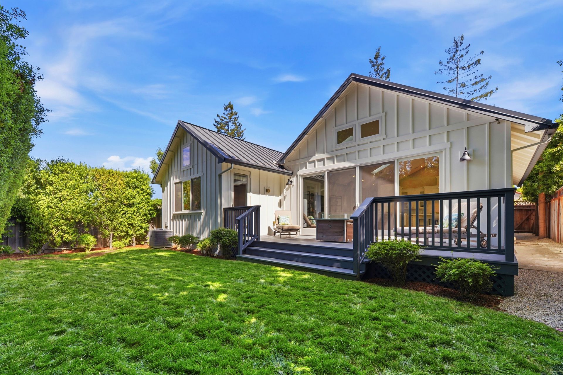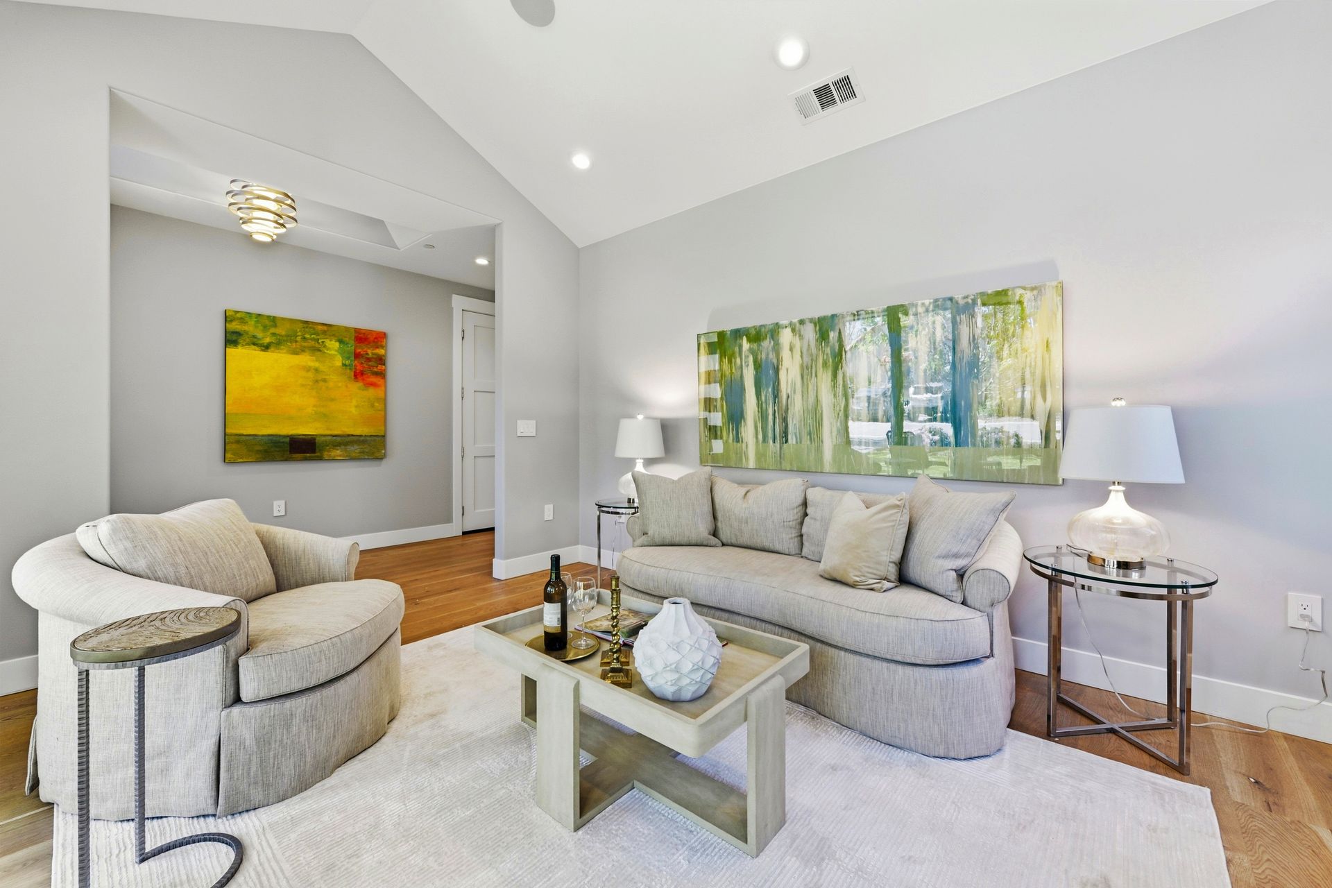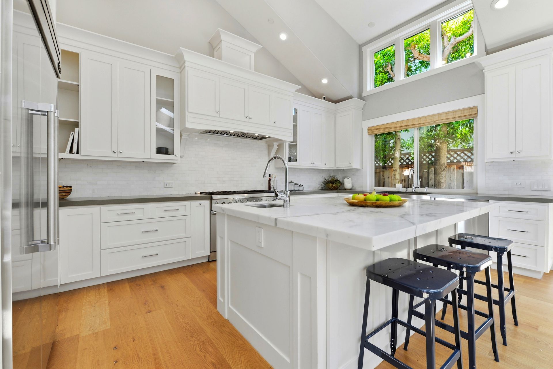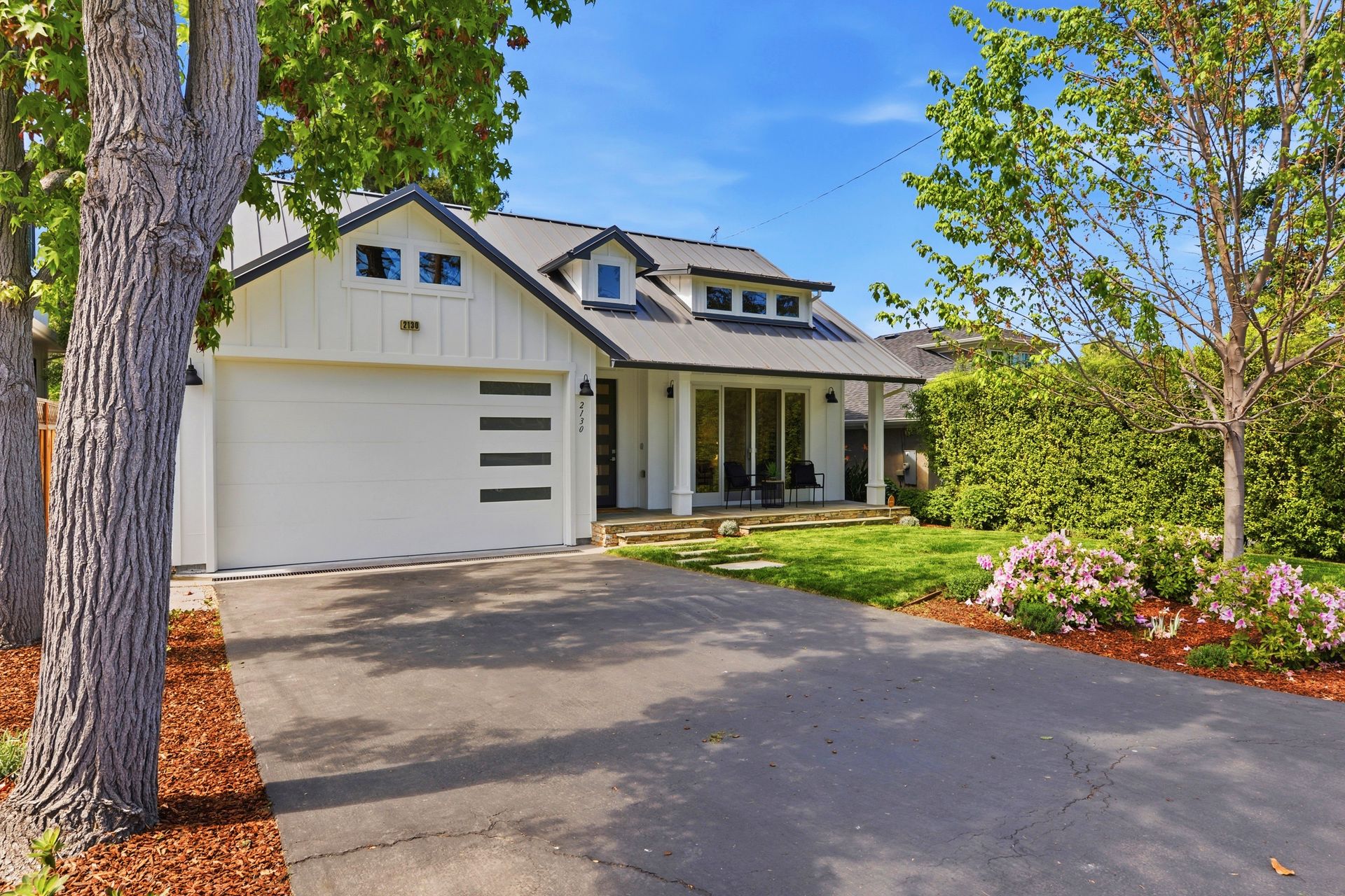 This approximately 2,486 square foot single-level home offers four bedrooms and three and a half bathrooms. The modern farmhouse-style design features vaulted ceilings, skylights and transom windows, to list just a few details creating a spacious and airy atmosphere throughout the living areas. The Calcutta marble island and Quartz countertops, and stainless appliances in the kitchen provide a sleek and functional space for the discerning chef, complemented by the vaulted ceilings, skylights and abundant windows that flood the space with natural light.