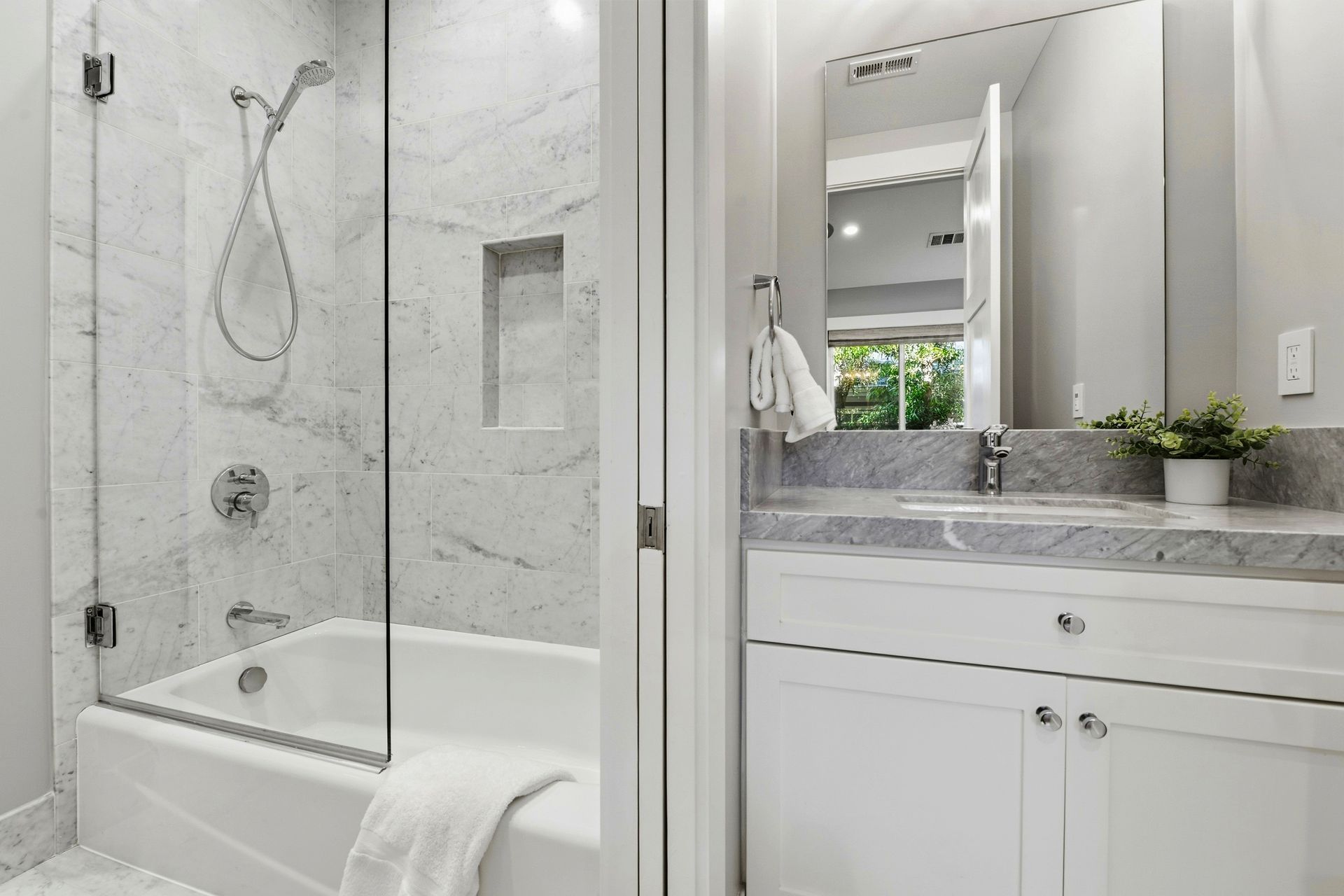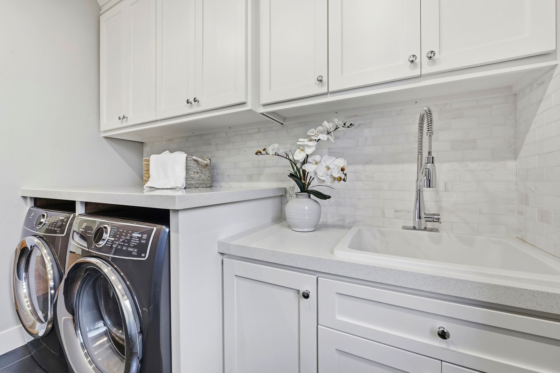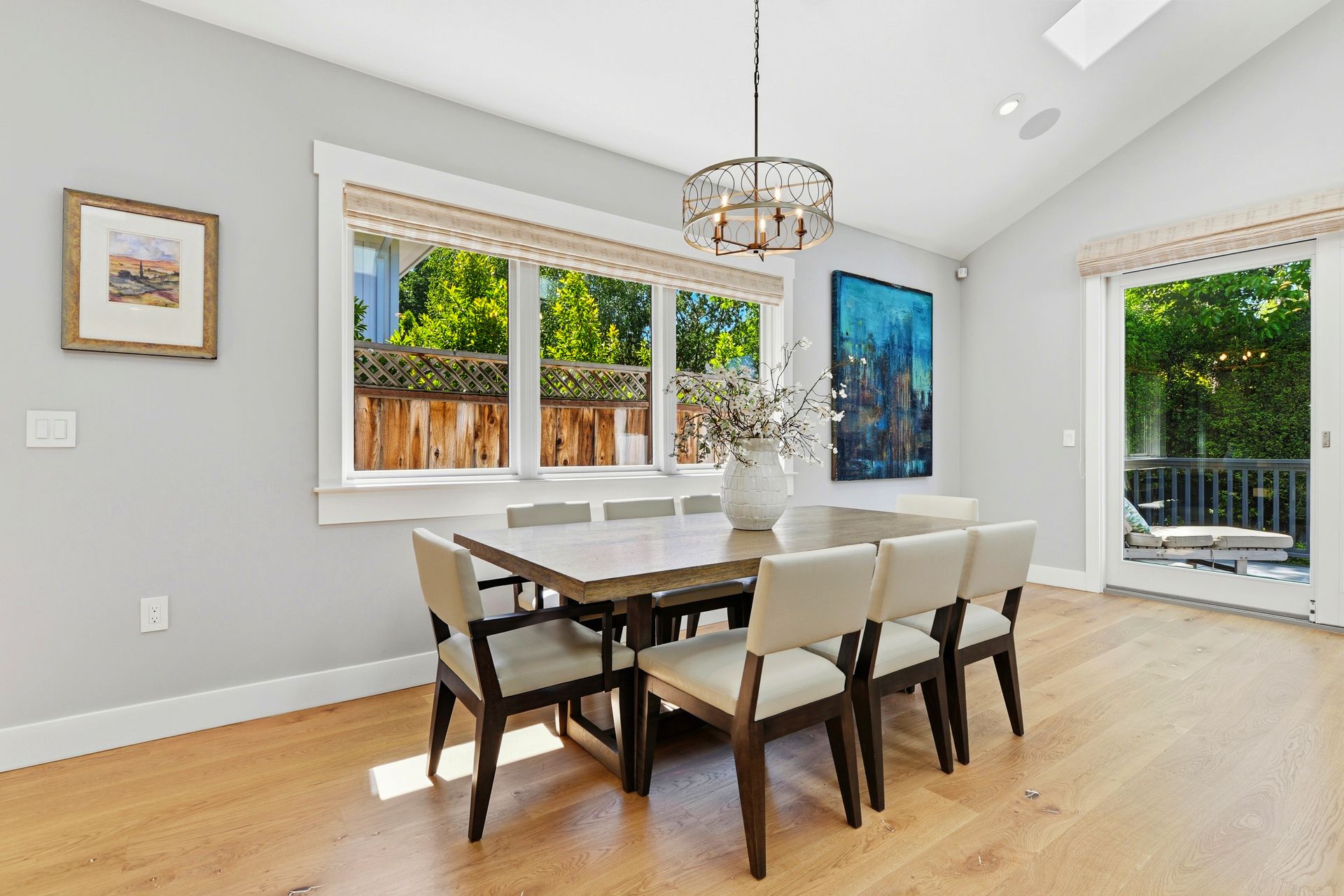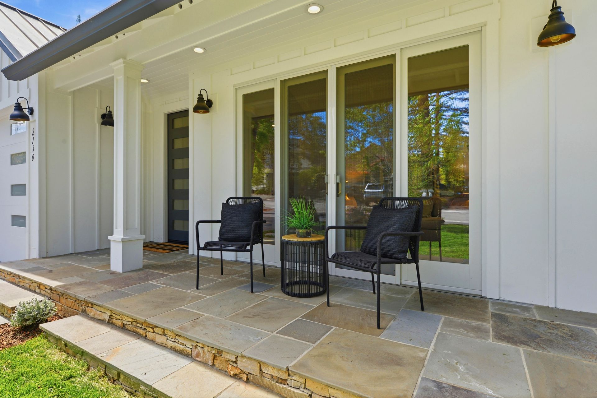 This approximately 2,486 square foot single-level home offers four bedrooms and three and a half bathrooms. The modern farmhouse-style design features vaulted ceilings, skylights and transom windows, to list just a few details creating a spacious and airy atmosphere throughout the living areas. The Calcutta marble island and Quartz countertops, and stainless appliances in the kitchen provide a sleek and functional space for the discerning chef, complemented by the vaulted ceilings, skylights and abundant windows that flood the space with natural light.