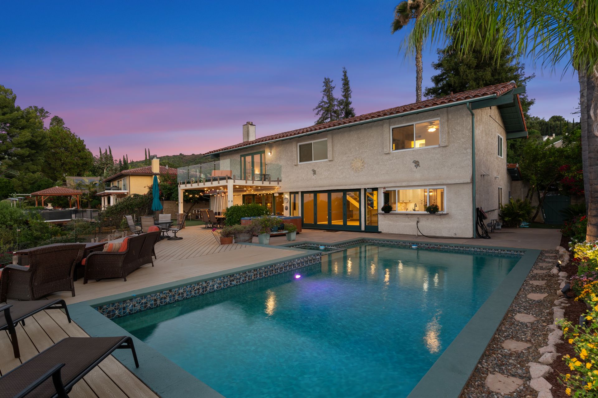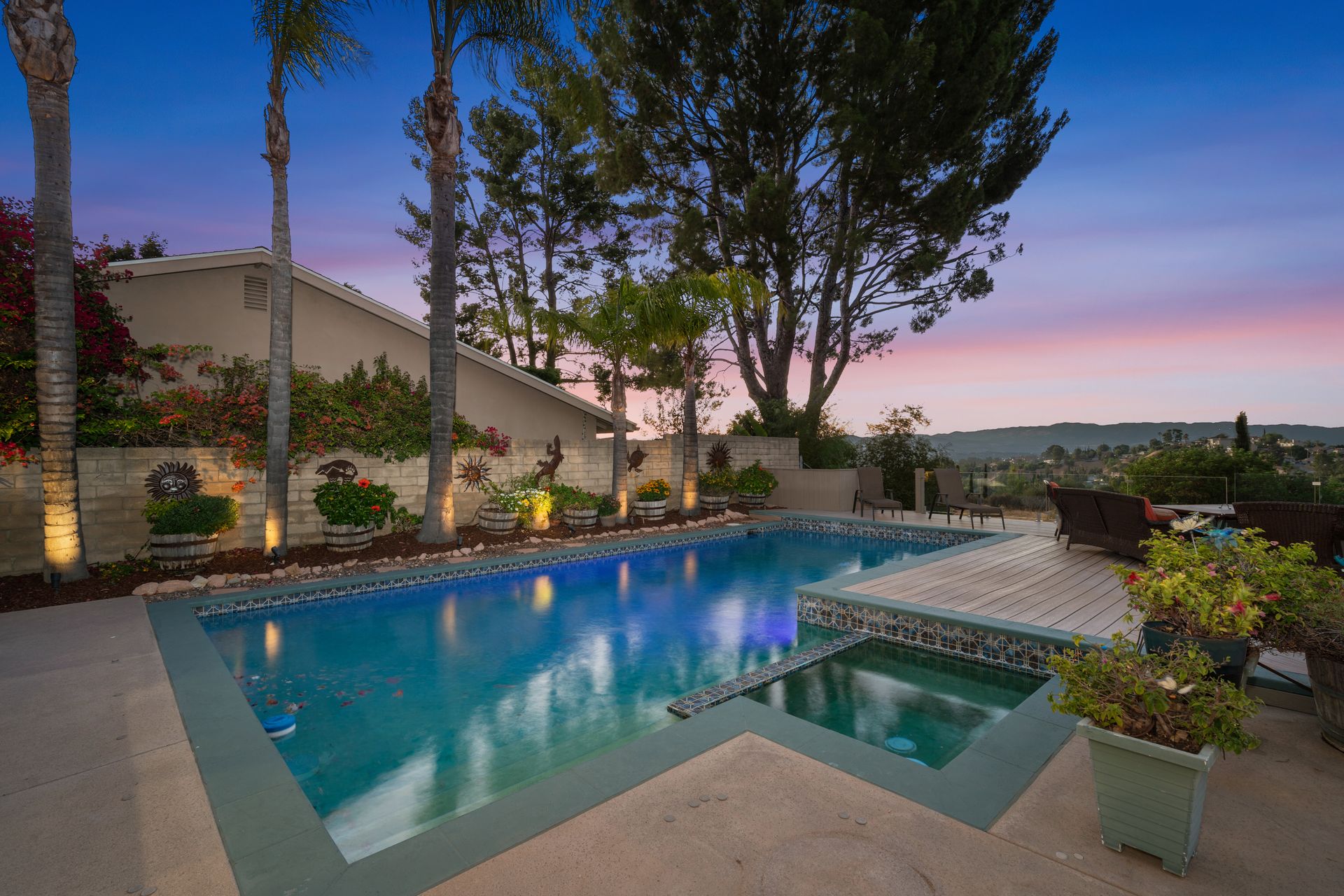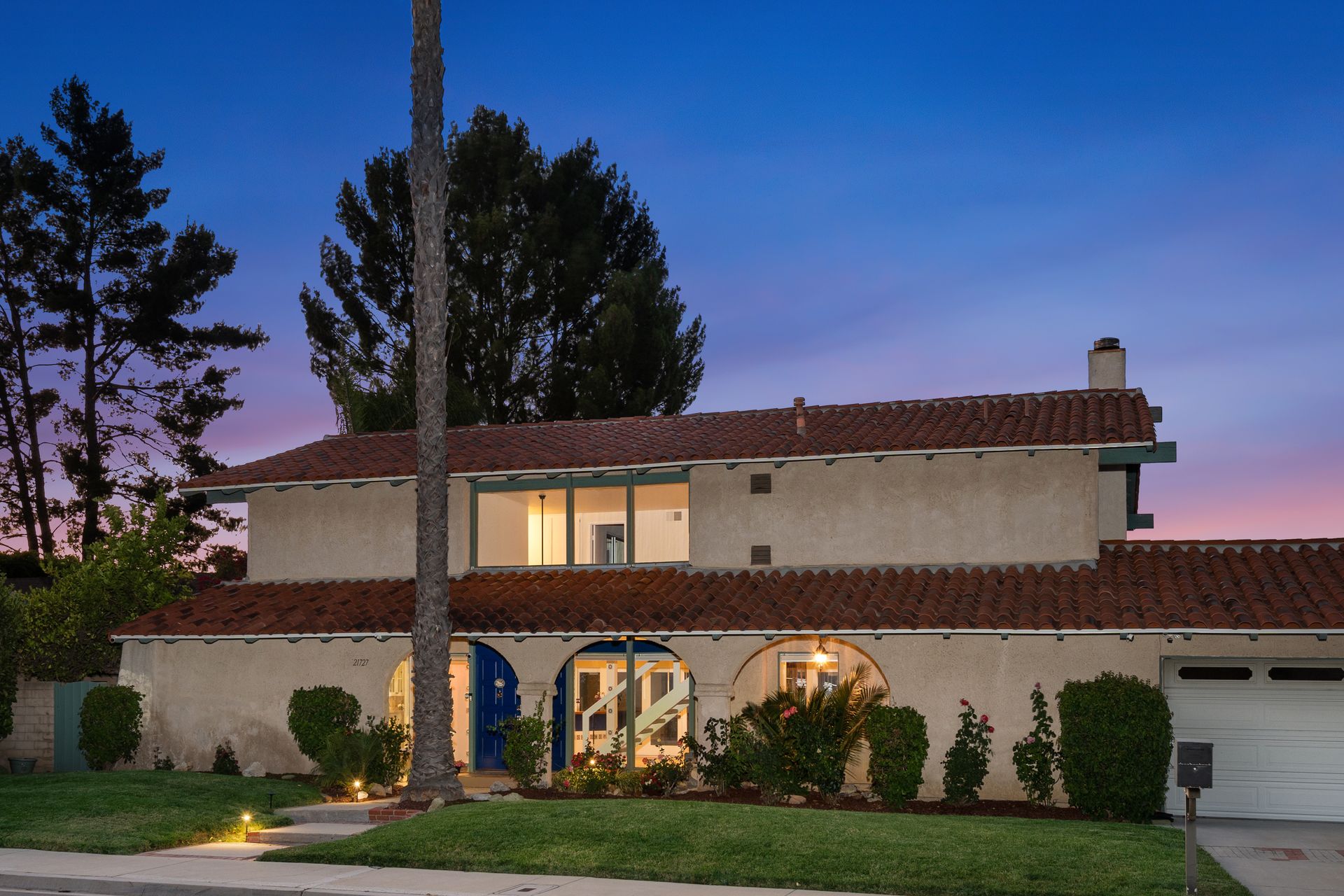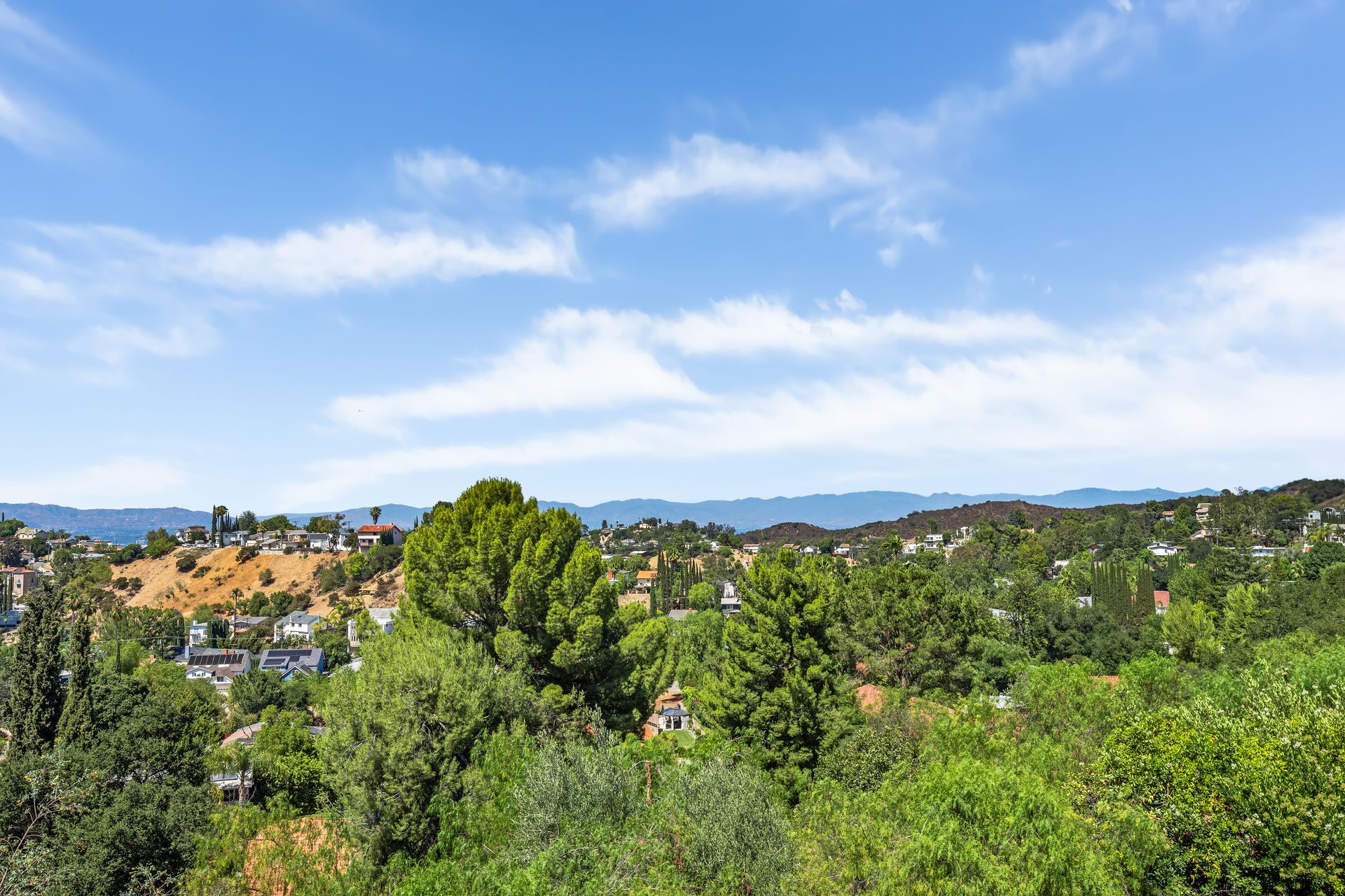 Huge price adjustment! This exceptional VIEW home is in Woodland Crest, a hidden gem nestled within the serene Santa Monica Mountains. The charming covered porch and beautifully landscaped dry creek enhance the curb appeal of this elegant Spanish-style residence. Enter through the double doors and be instantly drawn to a wall of glass that frames an unforgettable view, effortlessly blending indoor comfort with natural beauty. Designed for both intimate gatherings and grand celebrations, this home has been the setting for countless cherished memories. The renovated chef's kitchen is a true showpiece, featuring top-of-the-line Jenn-Air appliances, including a six-burner range with griddle, wine refrigerator, custom cabinetry, Quartzite countertops, a tumbled tile backsplash, and breakfast bar. The expansive family room offers custom-built-ins and a dramatic stone fireplace with a raised hearth ideal for cozy evenings. The primary suite is a private retreat with soaring vaulted ceilings, ample closet space, an updated bathroom with dual vanities, and a private balcony ideal for watching the sunrise and sunset. Two-story windows flood the home with natural light, creating an open and airy atmosphere throughout. Outside, the entertainer's backyard is a dream come true, complete with a covered patio, sparkling pool, putting green, and citrus trees. Host unforgettable gatherings on the massive Trex deck while taking in breathtaking city and mountain views. With the Los Angeles Rams' new training facility and the ambitious Warner Center 2035 Plan on the horizon, Woodland Hills is poised for exciting growth and transformation. Close proximity to luxury shopping, the beach, and exceptional schools makes this home not only a sanctuary but a smart investment in your future.