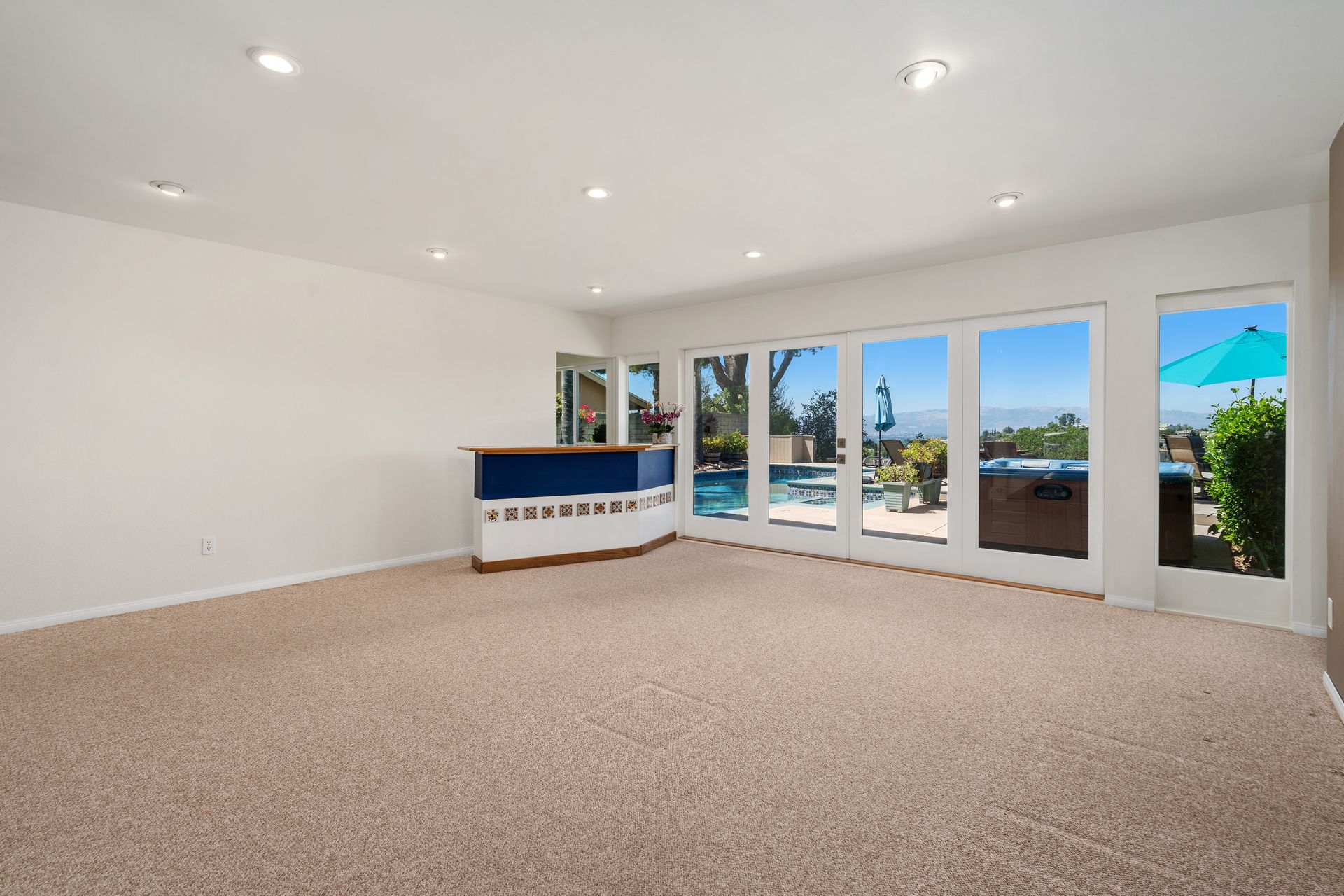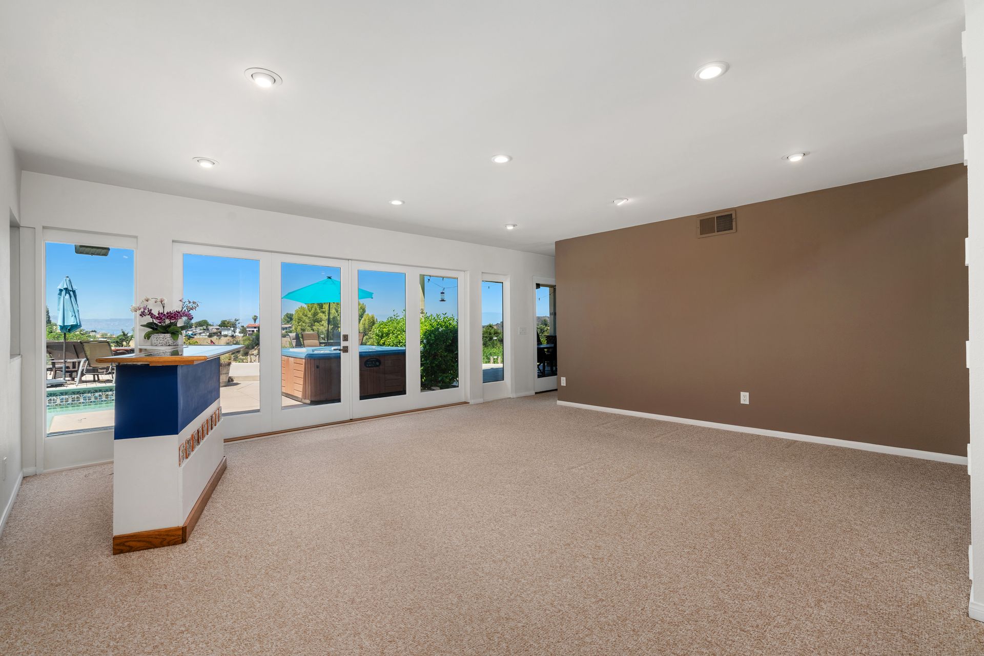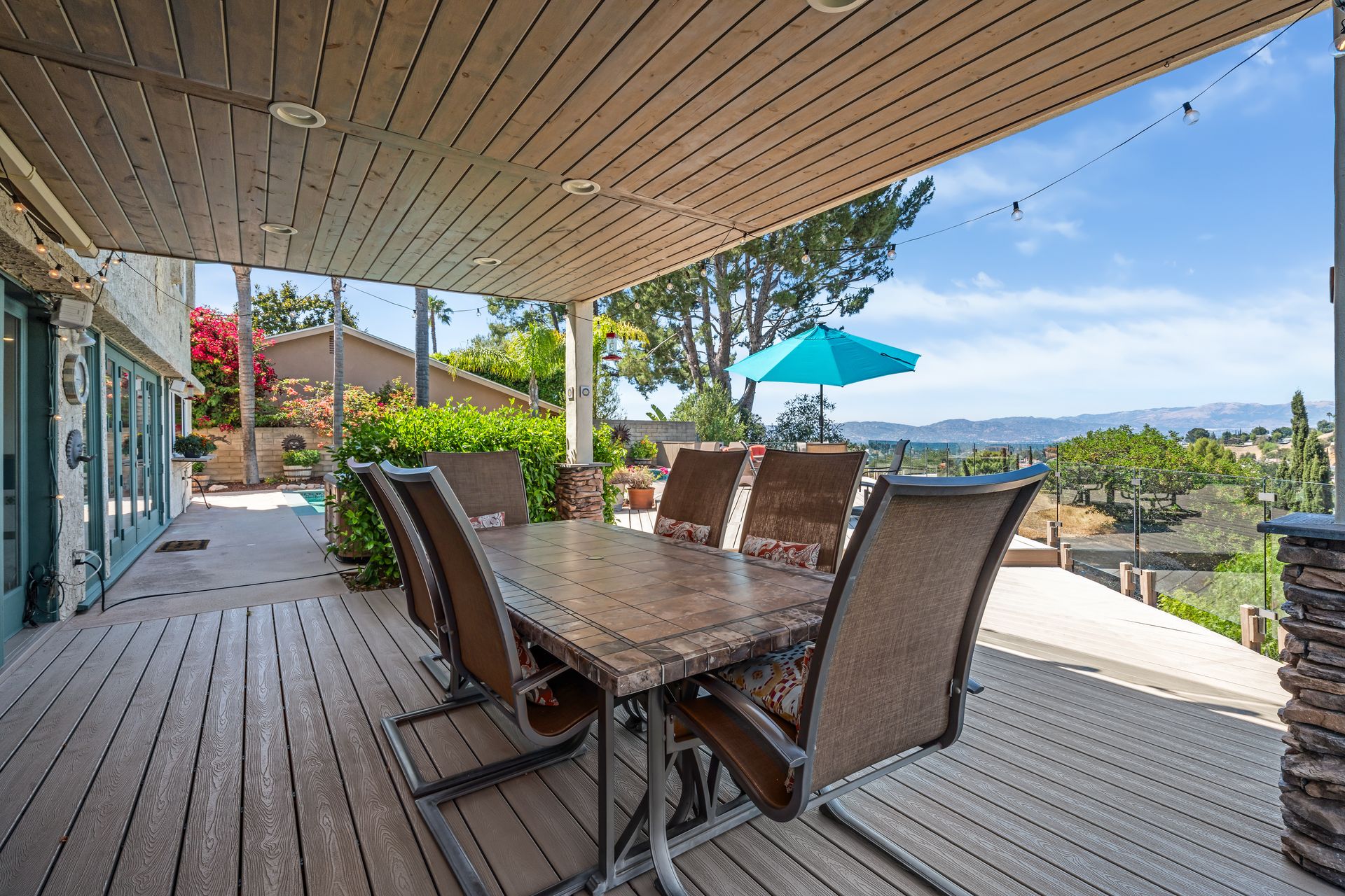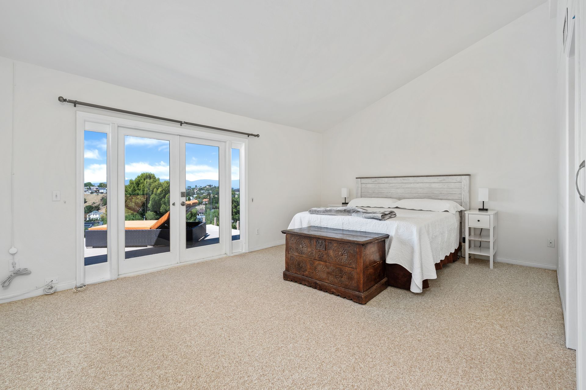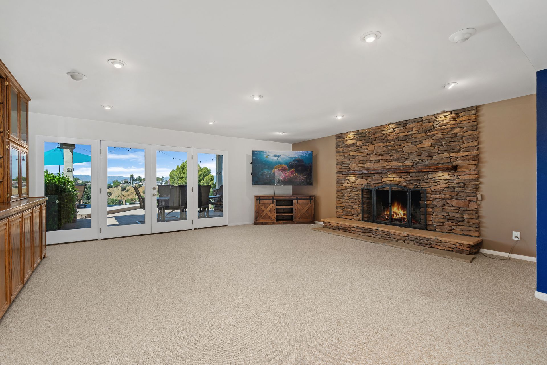 Huge price adjustment! This exceptional VIEW home is in Woodland Crest, a hidden gem nestled within the serene Santa Monica Mountains. The charming covered porch and beautifully landscaped dry creek enhance the curb appeal of this elegant Spanish-style residence. Enter through the double doors and be instantly drawn to a wall of glass that frames an unforgettable view, effortlessly blending indoor comfort with natural beauty. Designed for both intimate gatherings and grand celebrations, this home has been the setting for countless cherished memories. The renovated chef's kitchen is a true showpiece, featuring top-of-the-line Jenn-Air appliances, including a six-burner range with griddle, wine refrigerator, custom cabinetry, Quartzite countertops, a tumbled tile backsplash, and breakfast bar. The expansive family room offers custom-built-ins and a dramatic stone fireplace with a raised hearth ideal for cozy evenings. The primary suite is a private retreat with soaring vaulted ceilings, ample closet space, an updated bathroom with dual vanities, and a private balcony ideal for watching the sunrise and sunset. Two-story windows flood the home with natural light, creating an open and airy atmosphere throughout. Outside, the entertainer's backyard is a dream come true, complete with a covered patio, sparkling pool, putting green, and citrus trees. Host unforgettable gatherings on the massive Trex deck while taking in breathtaking city and mountain views. With the Los Angeles Rams' new training facility and the ambitious Warner Center 2035 Plan on the horizon, Woodland Hills is poised for exciting growth and transformation. Close proximity to luxury shopping, the beach, and exceptional schools makes this home not only a sanctuary but a smart investment in your future.