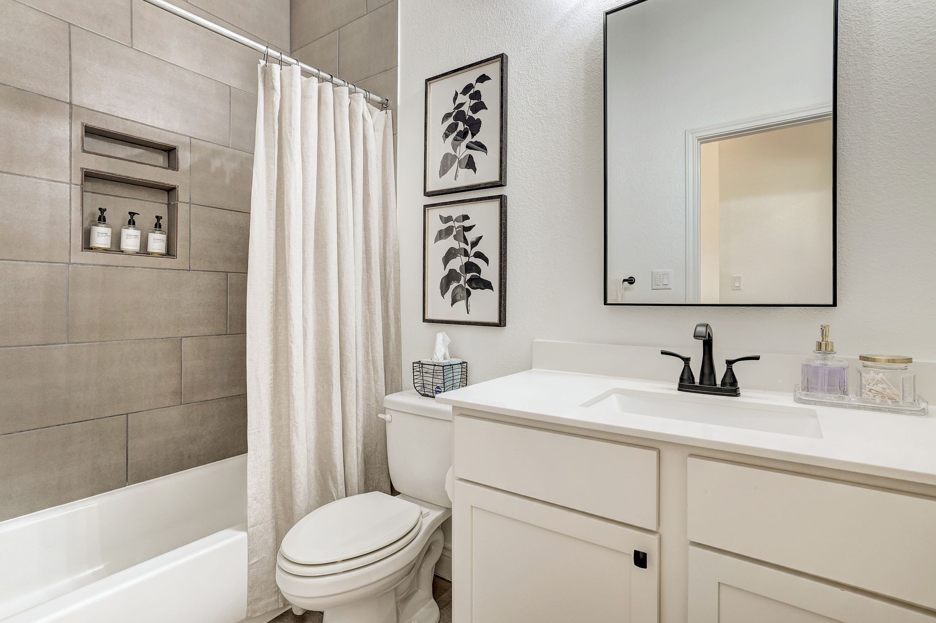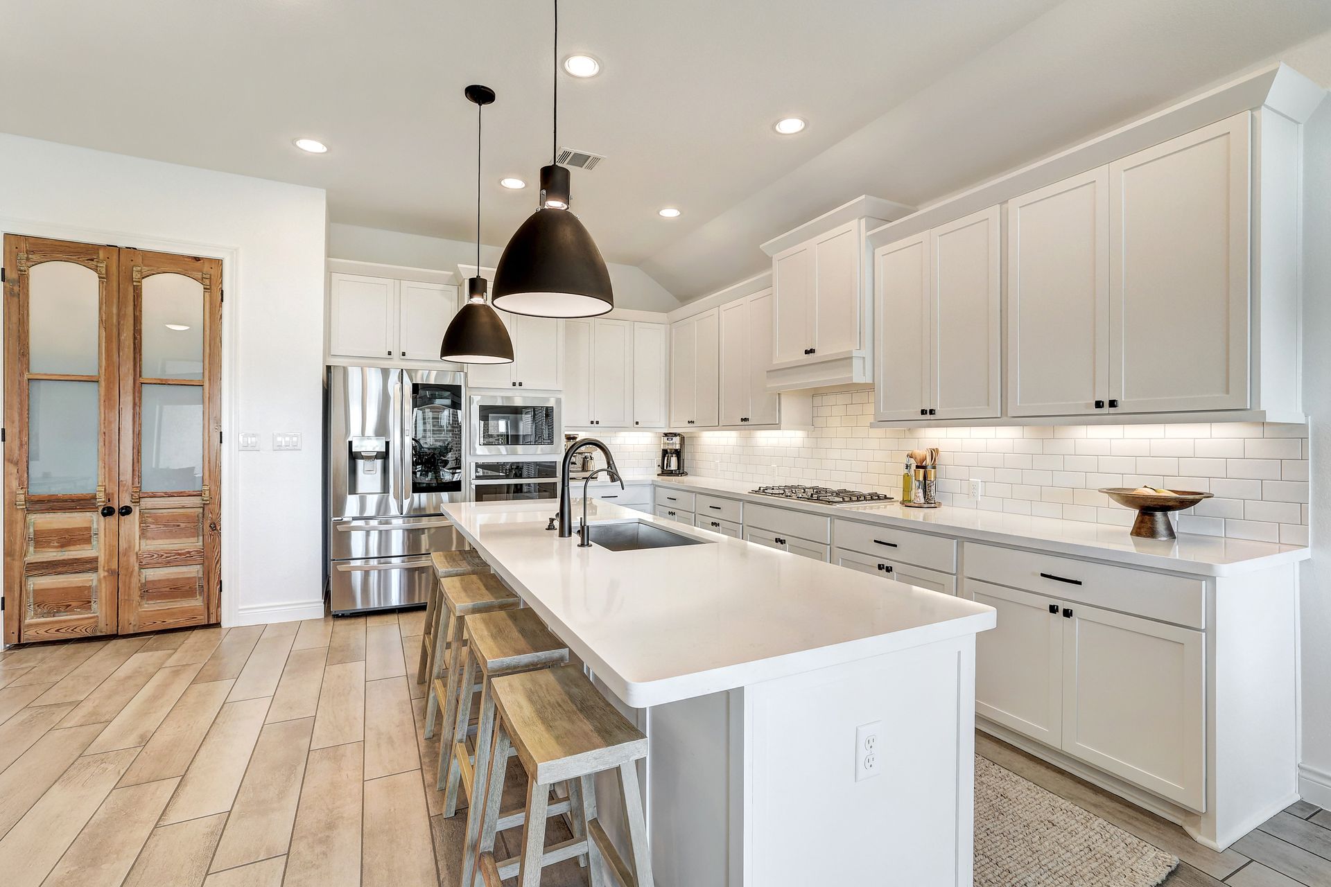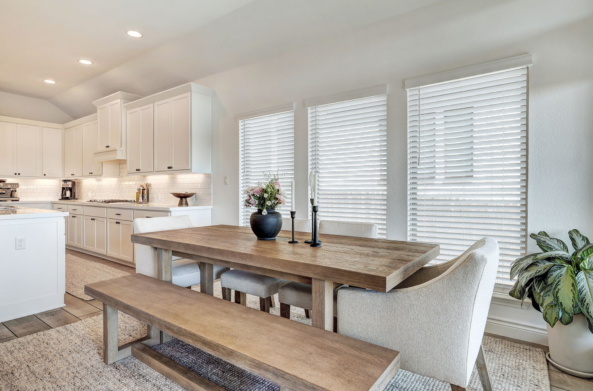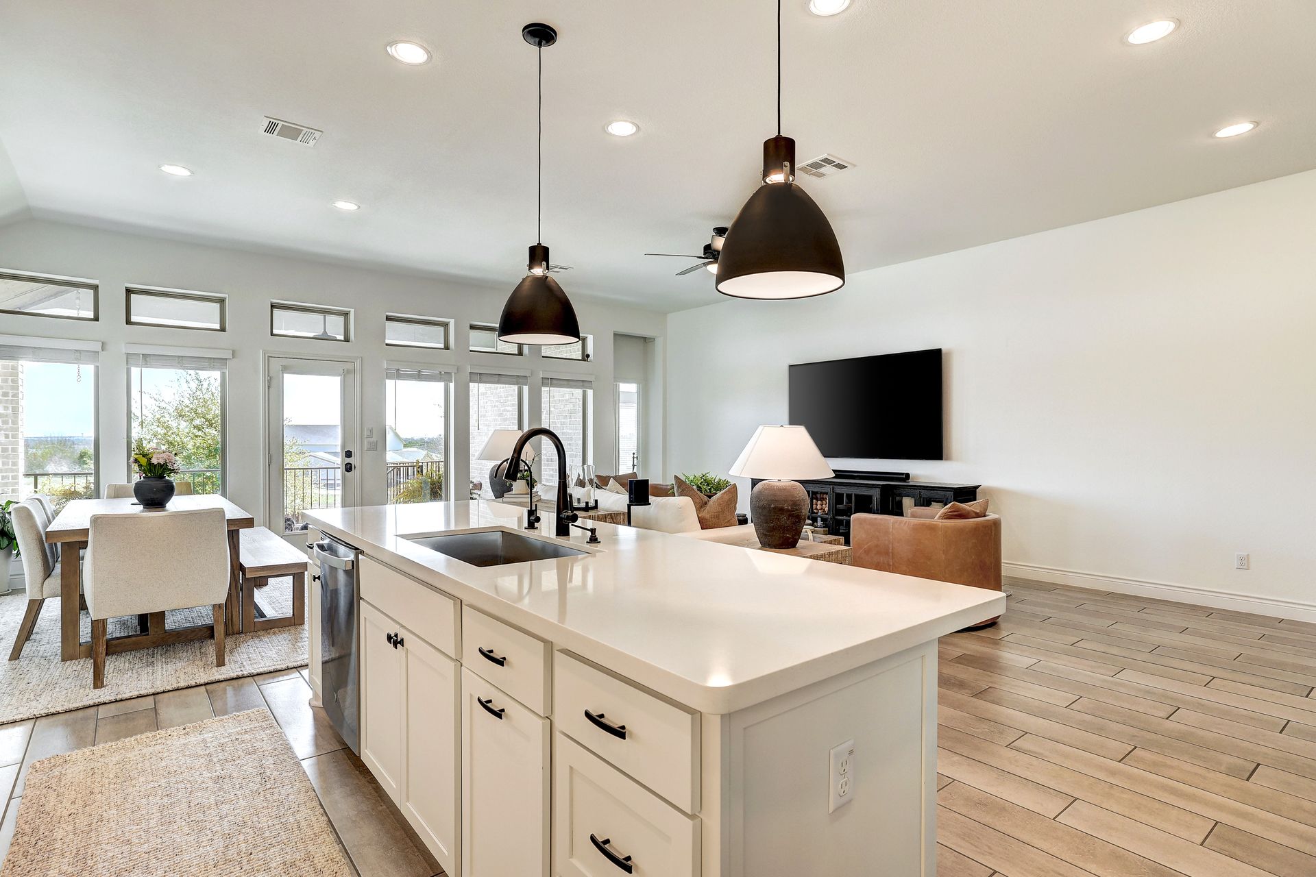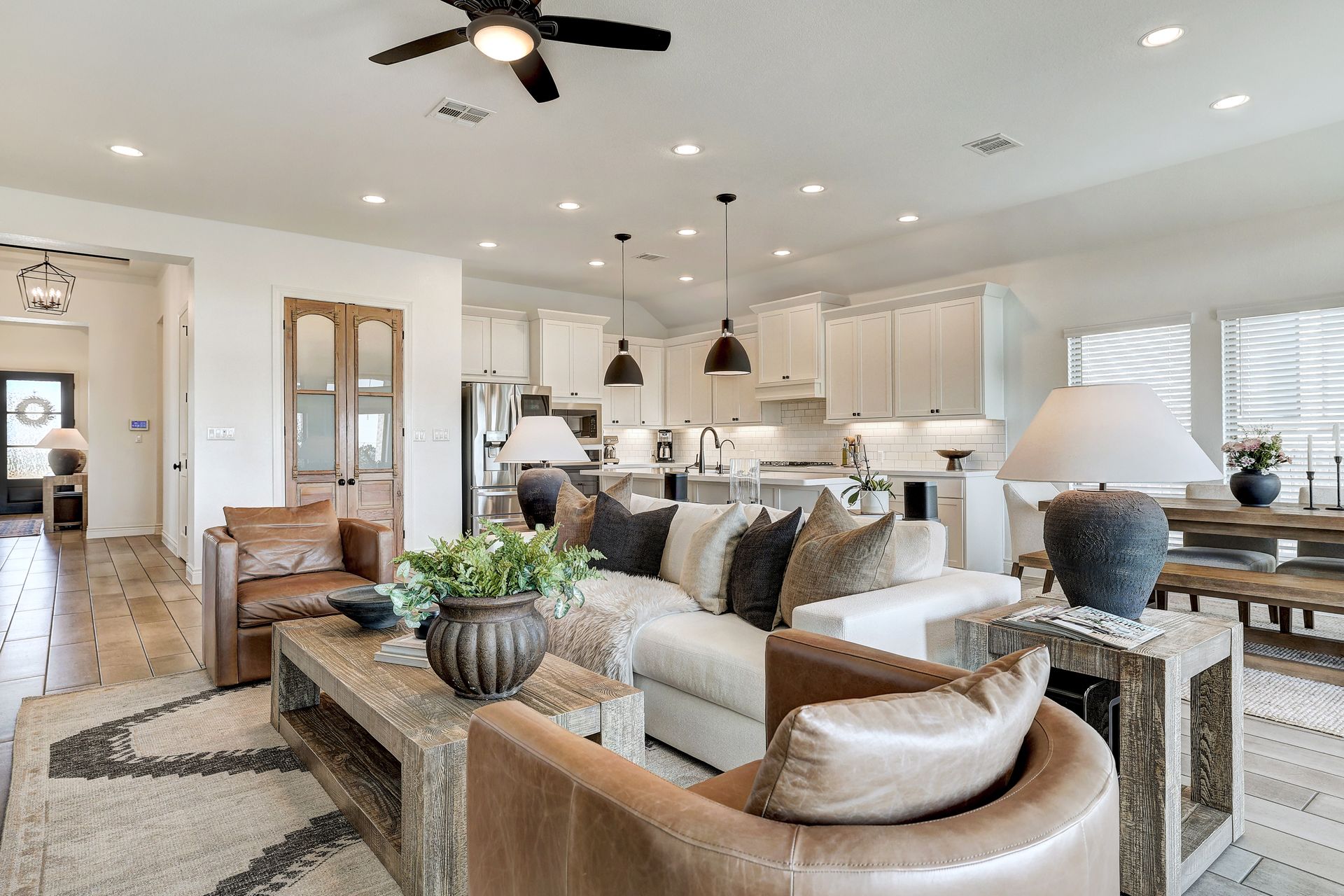 Durable wood-look tile flooring spans the entire home, providing both beauty and practicality. The kitchen is further enhanced with undermount lighting, great for meal preparation. Additional features include a water softener, custom shower niches in all bathrooms, a fully floored attic space, two-inch faux wood blinds, glass break sensors on the windows and permanent LED exterior lighting.