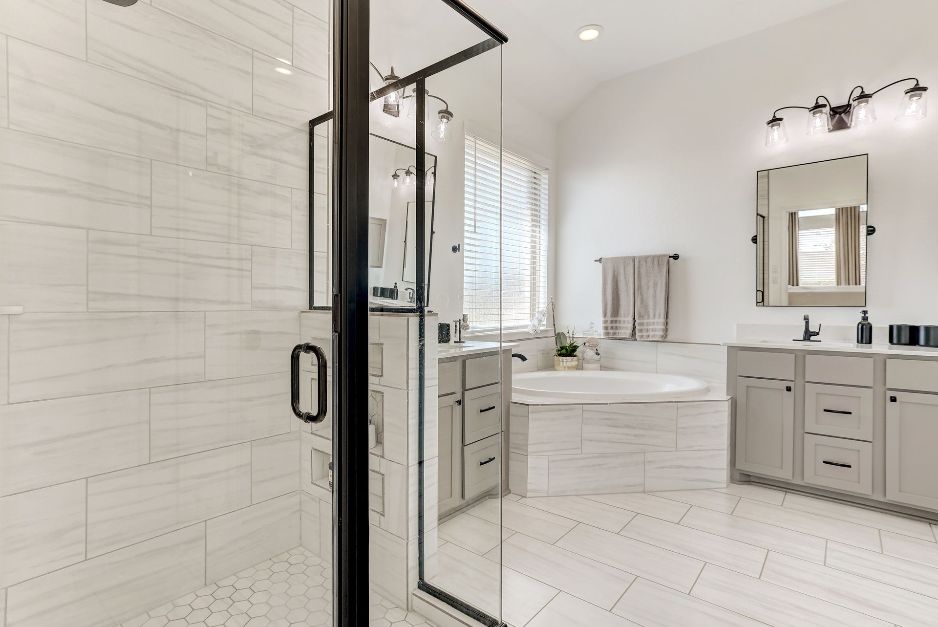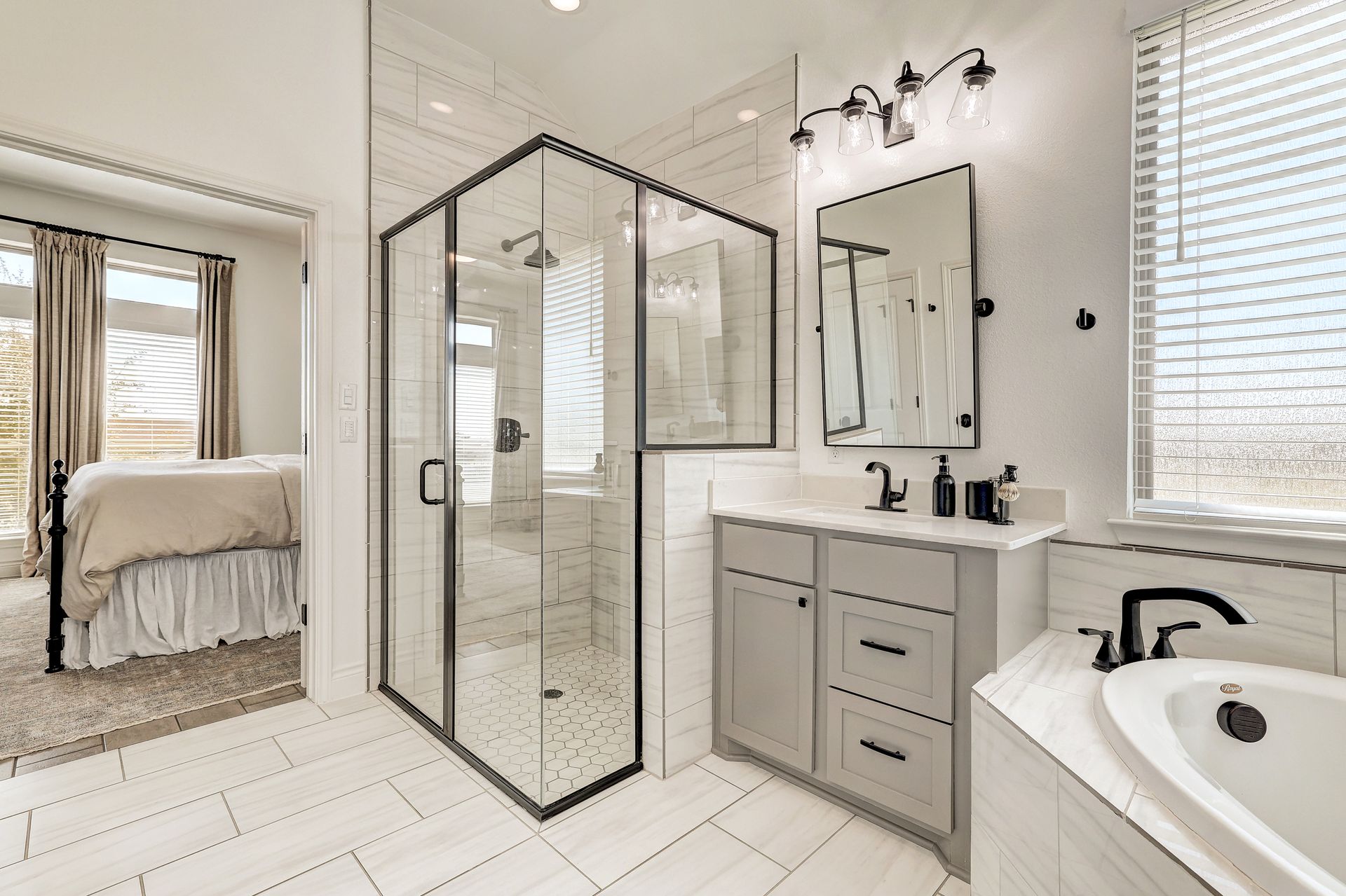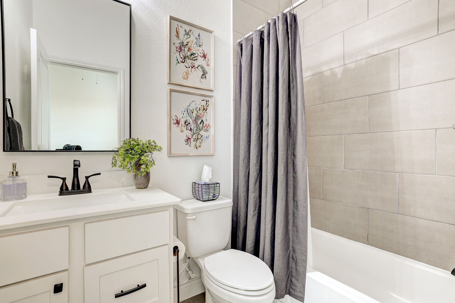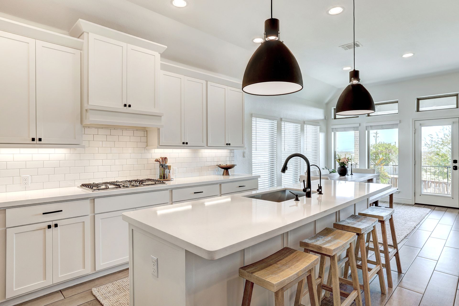 Durable wood-look tile flooring spans the entire home, providing both beauty and practicality. The kitchen is further enhanced with undermount lighting, great for meal preparation. Additional features include a water softener, custom shower niches in all bathrooms, a fully floored attic space, two-inch faux wood blinds, glass break sensors on the windows and permanent LED exterior lighting.