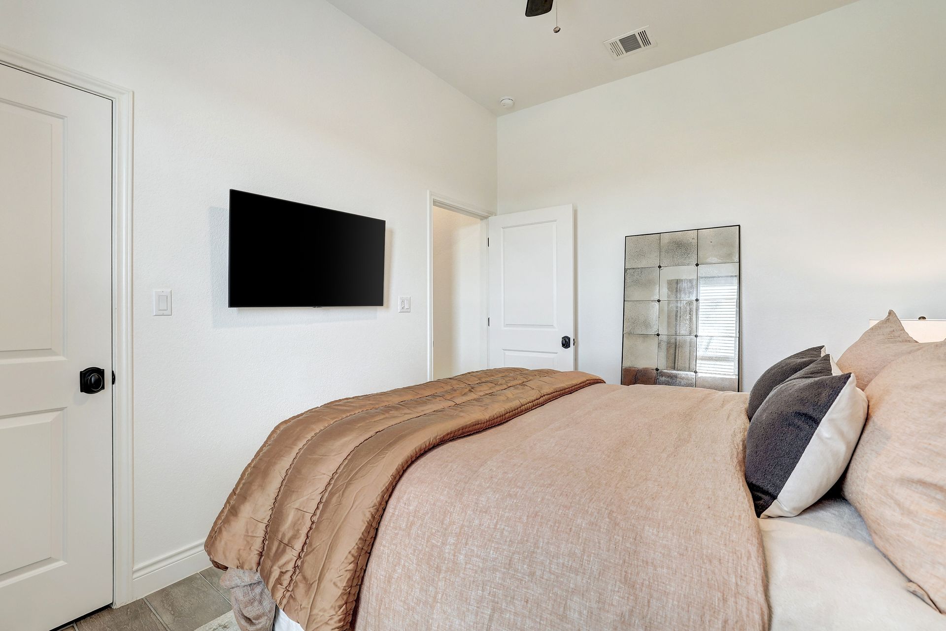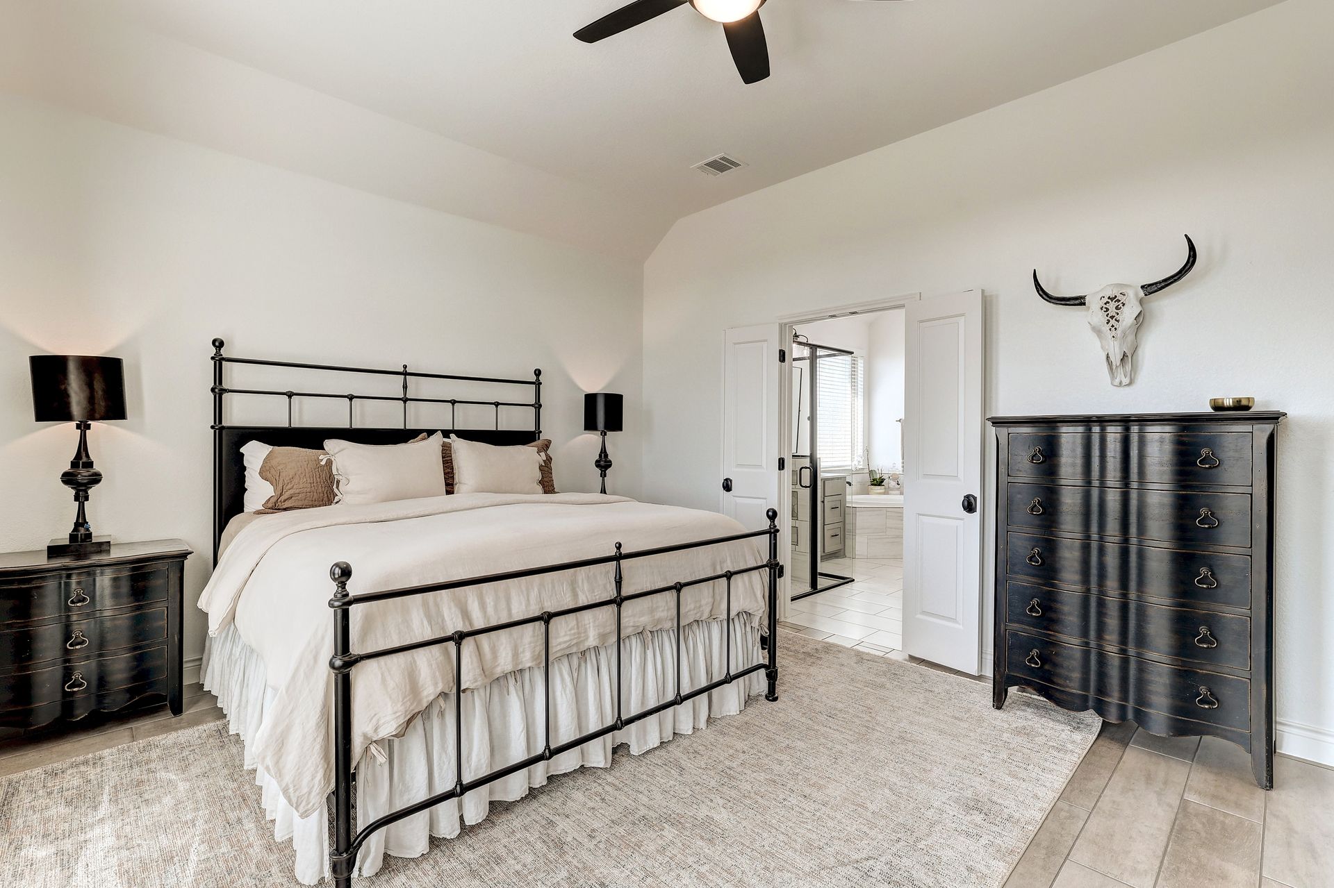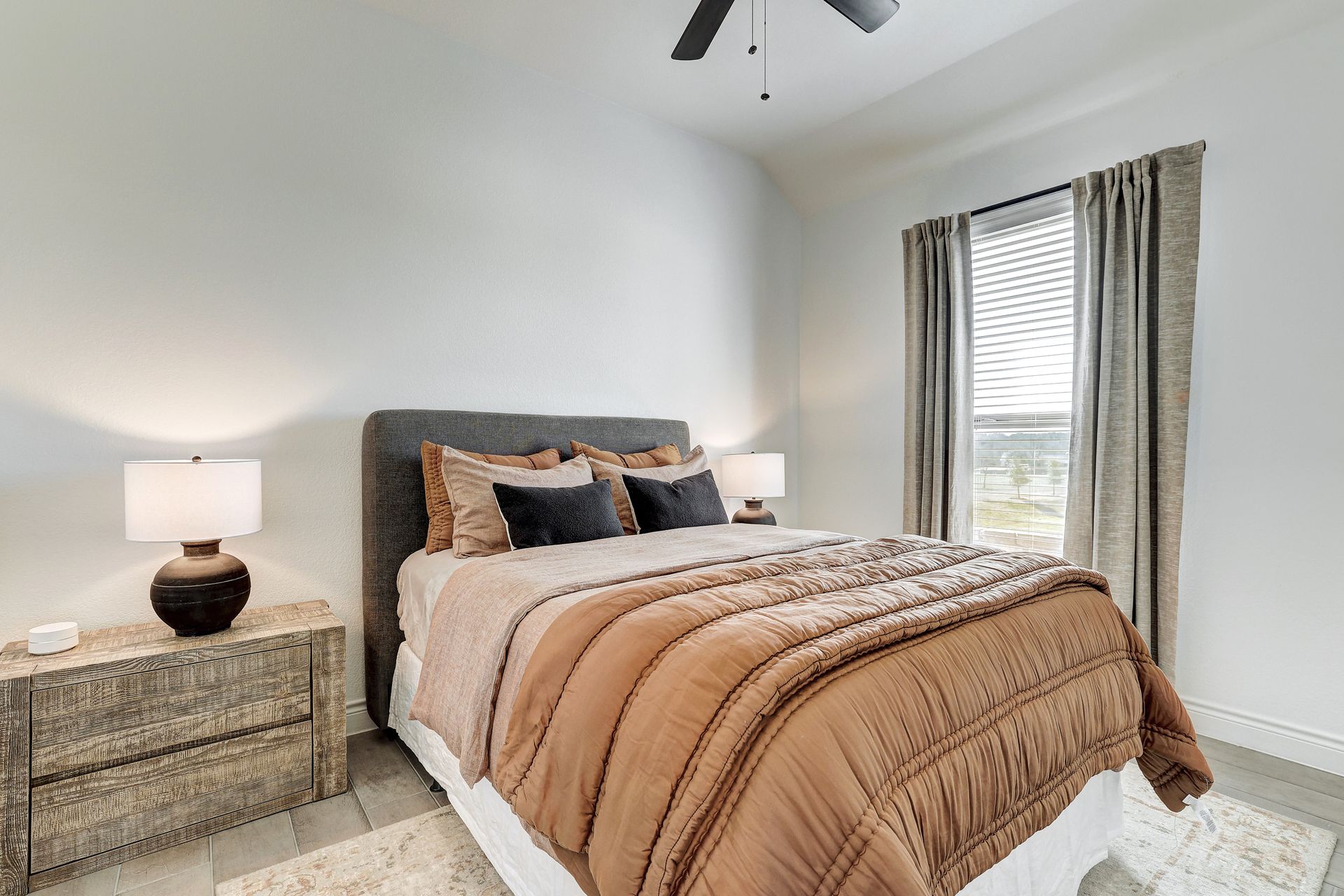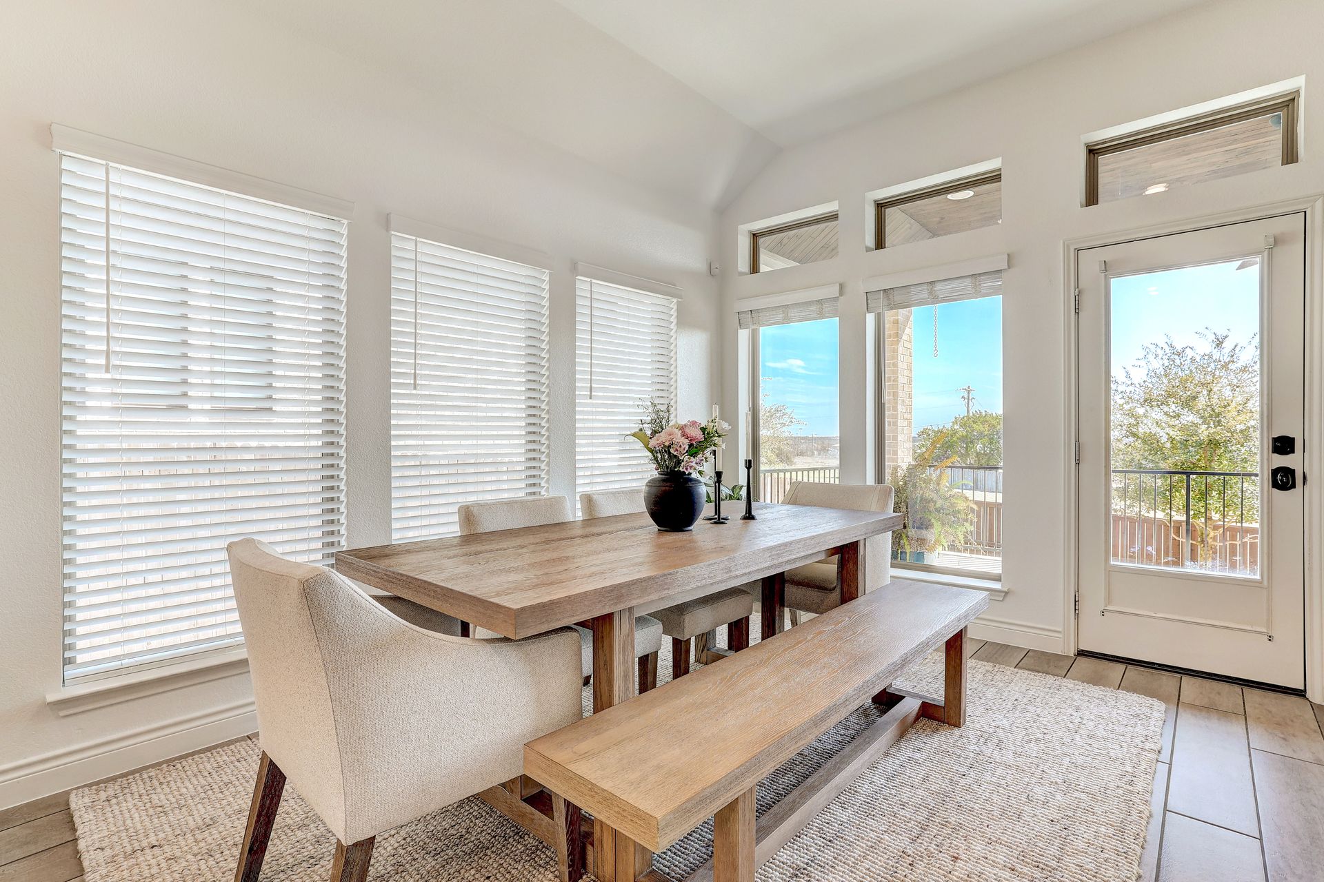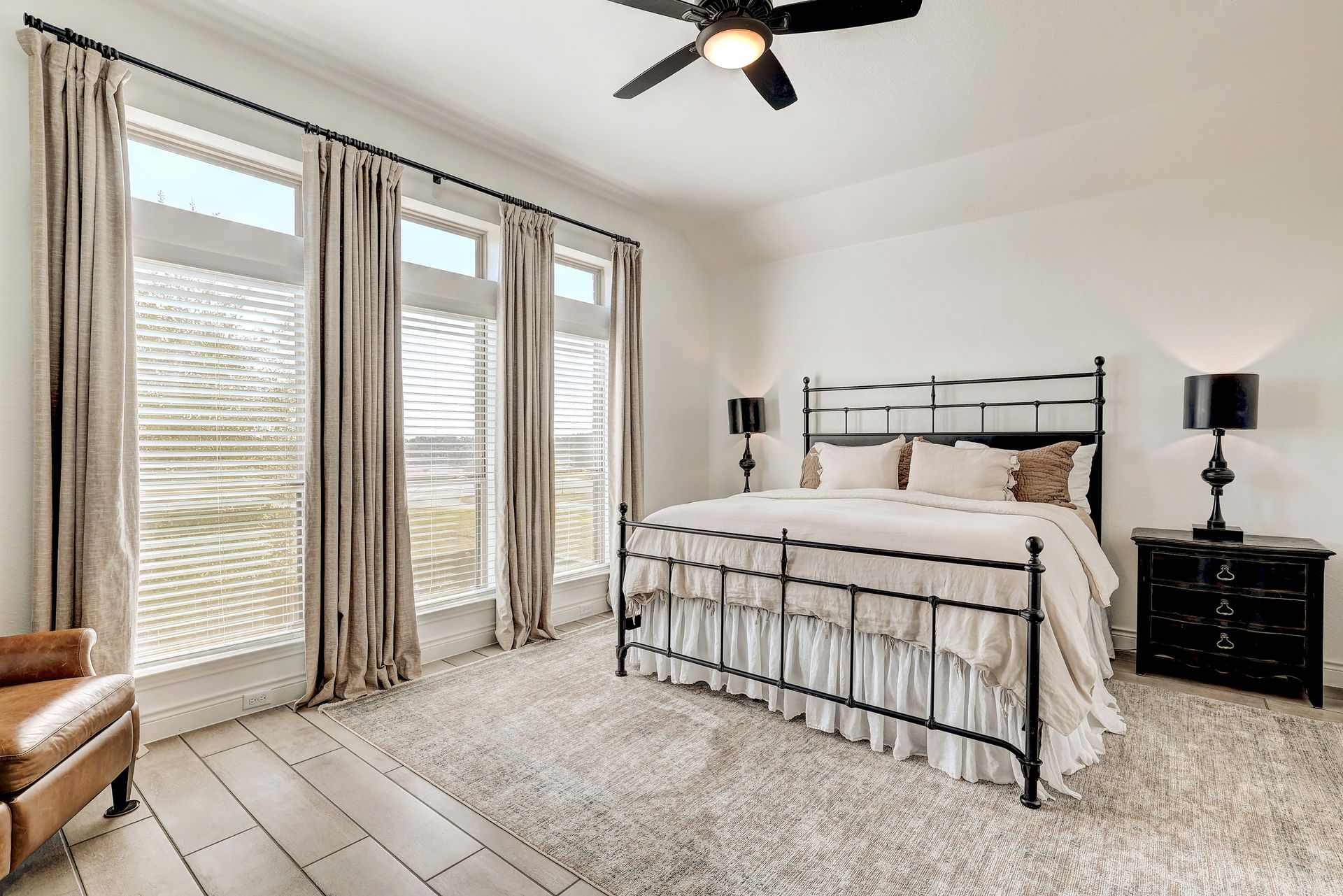 Durable wood-look tile flooring spans the entire home, providing both beauty and practicality. The kitchen is further enhanced with undermount lighting, great for meal preparation. Additional features include a water softener, custom shower niches in all bathrooms, a fully floored attic space, two-inch faux wood blinds, glass break sensors on the windows and permanent LED exterior lighting.