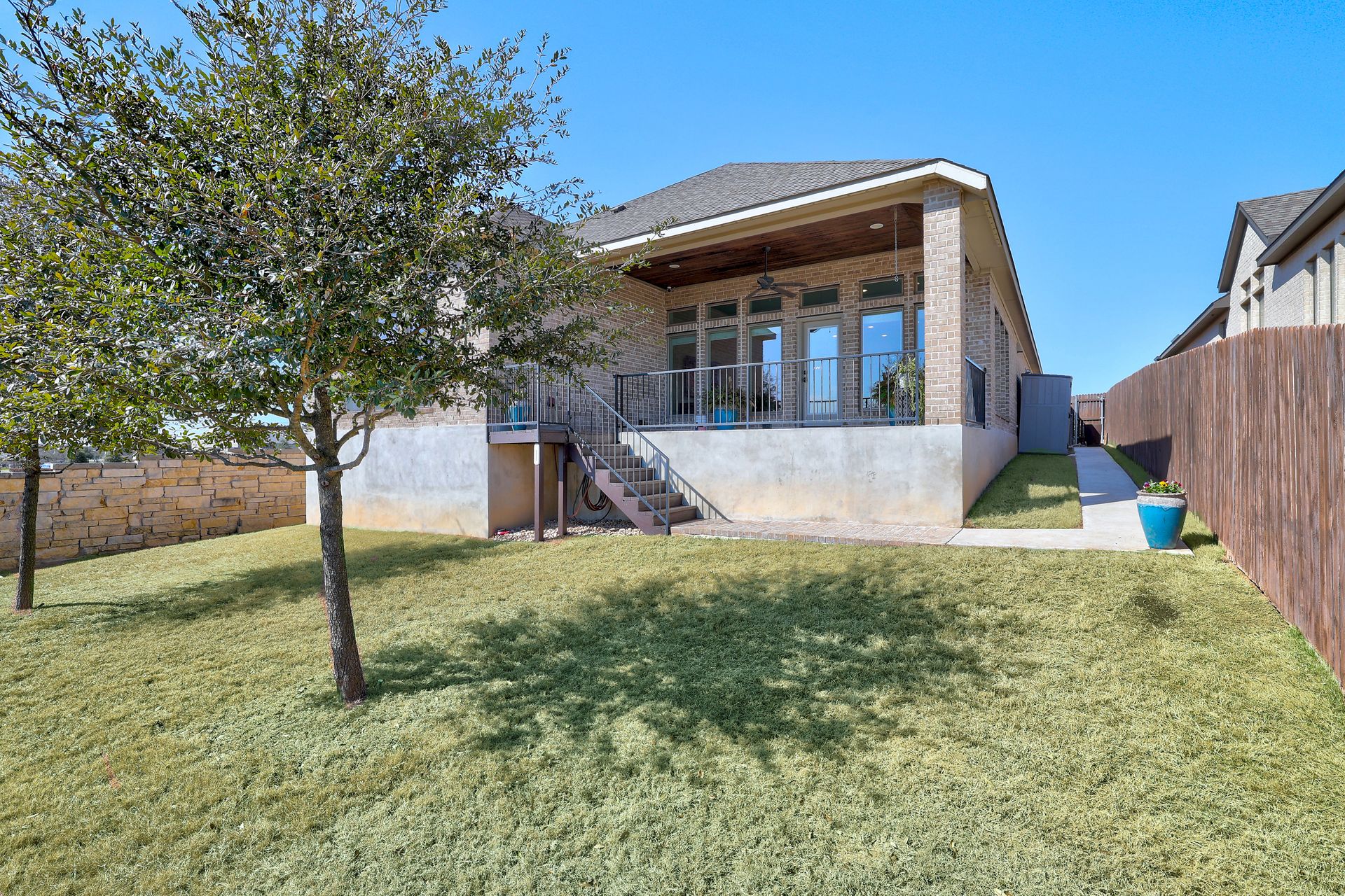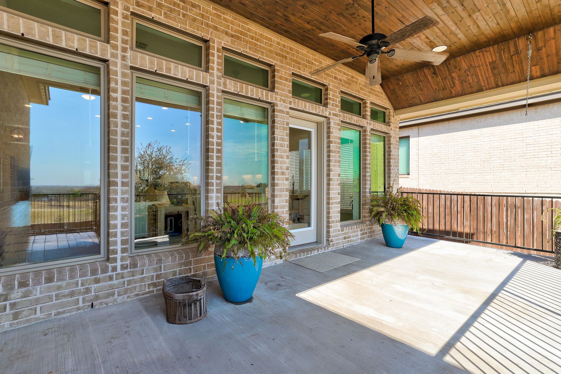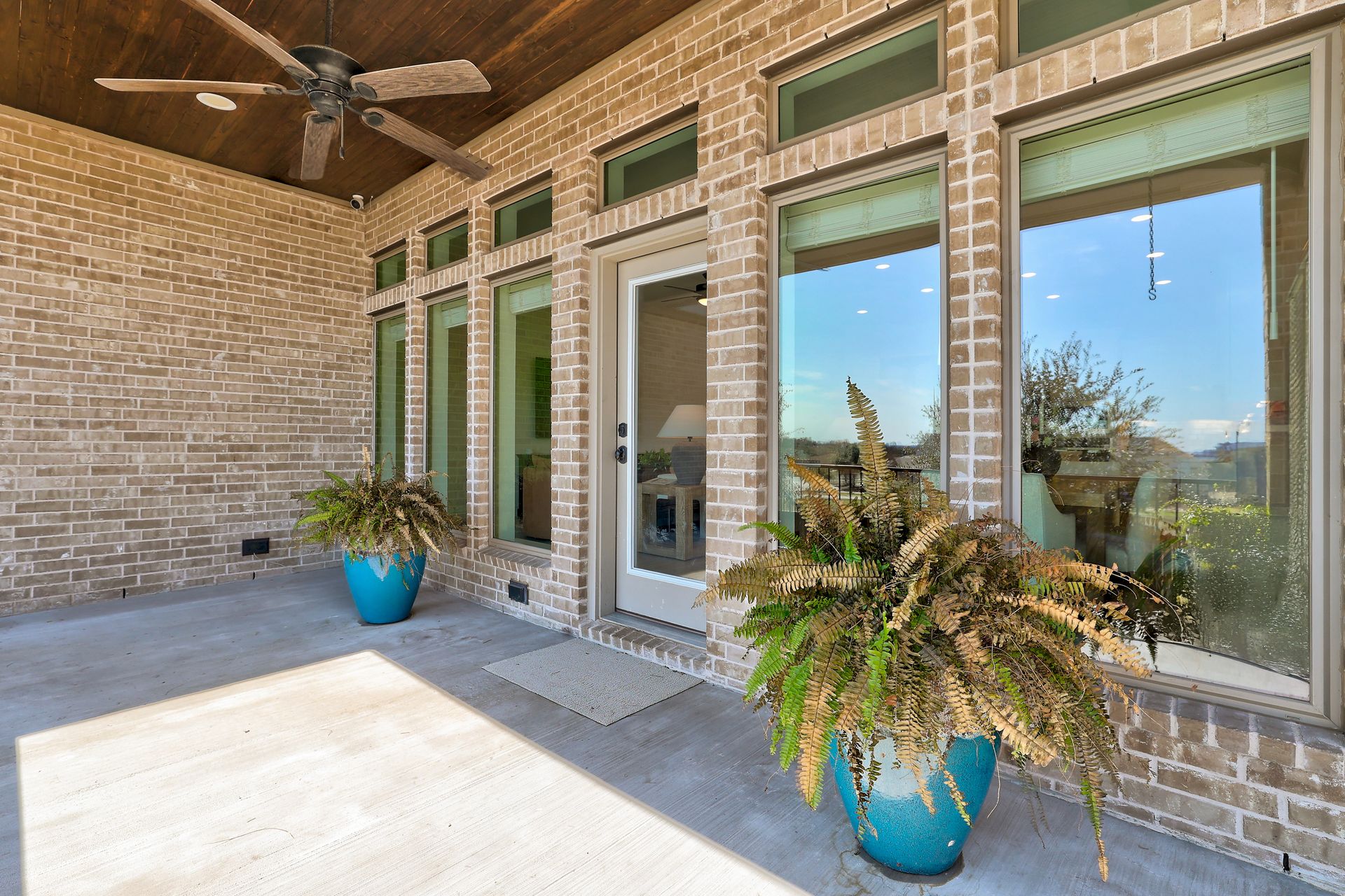 The exterior of the property is equally impressive, with sidewalks on the front and sides, a cedar outdoor porch ceiling and a brick patio platform. The backyard is an entertainer's dream, featuring a grilling pad, an outdoor patio ceiling fan and an irrigation system.