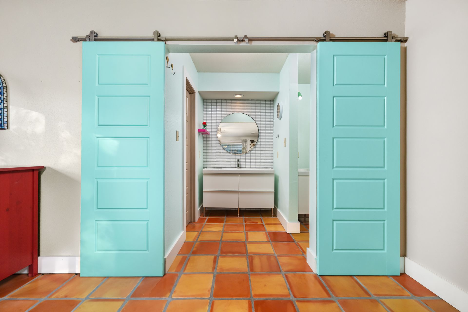 Designed to live primarily as a single story, all bedrooms and bathrooms are located on the main level, while a loft accessed by a charming spiral staircase overlooks the living area—an ideal space for a home office, creative studio, or playroom.